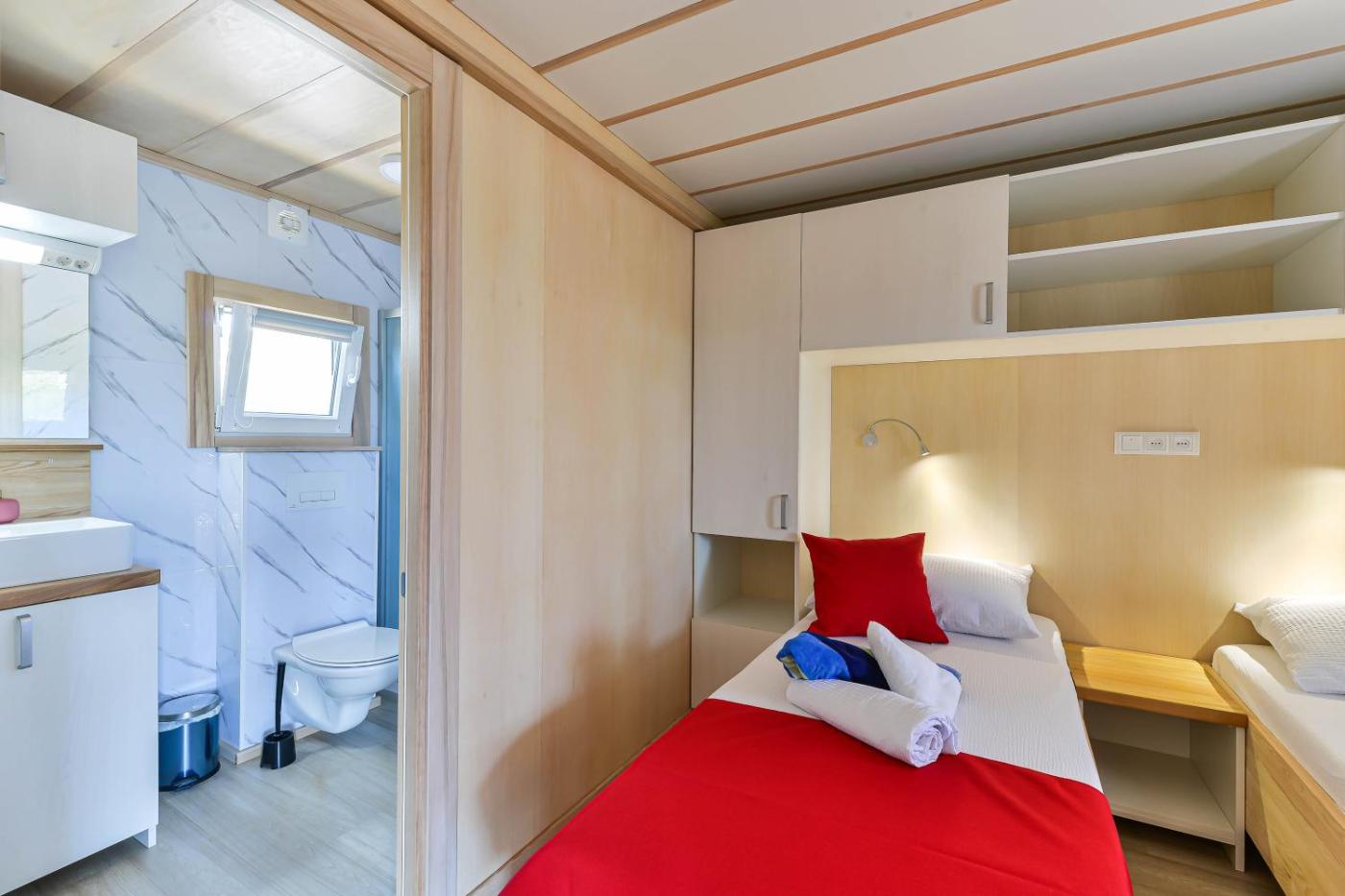 Domek holenderski. This air-conditioned mobile home comes with 1 living room, 2 separate bedrooms and 2 bathrooms with a shower. The mobile homes kitchen is available for cooking and storing food. This mobile home has tumble dryer, heating, a flat-screen TV and a terrace. The unit has 4 beds. Domek holenderski - 5 osobowy. Powierzchnia pokoju ok.: 65 mkw.