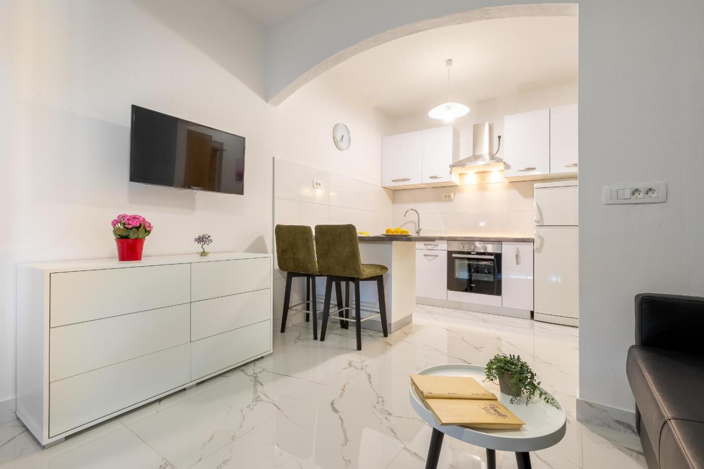 Każdą opcję zakwaterowania wyposażono w telewizor z płaskim ekranem z dostępem do kanałów satelitarnych. Do dyspozycji Gości jest jadalnia, kuchnia z doskonałym wyposażeniem, prywatna łazienka z prysznicem, bezpłatnym zestawem kosmetyków i suszarką do włosów, a także taras z widokiem na morze. Niektóre opcje zakwaterowania mają część wypoczynkową lub balkon.
