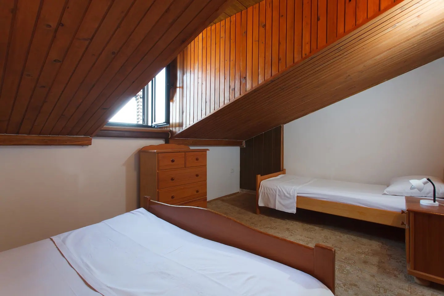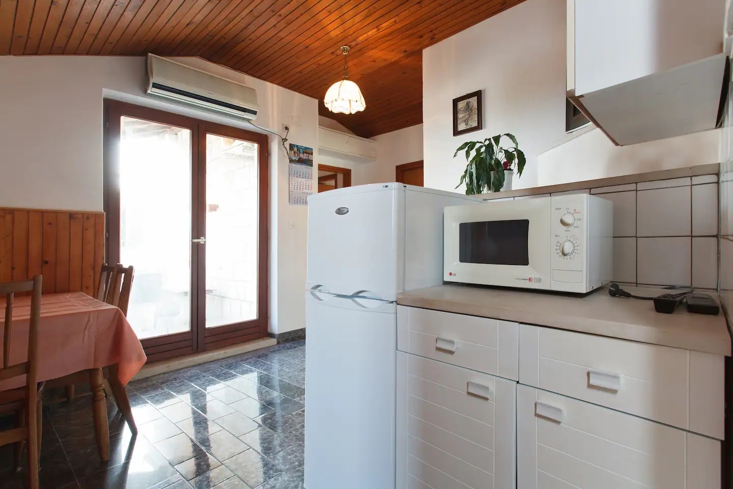 Apartament może przyjąć 6 gości. Łóżka znajdują się w sypialniach, których jest 3, na powierzchni 61m2. Goście mają dostęp do tarasu, by korzystać z ciepłych, letnich wieczorów. Z apartamentu roztacza się widok na morze. Możliwość przygotowywania posiłków poprzez korzystanie ze wspólnego grilla. WLICZONE W CENĘ: taksa pobytowa, sprzątanie końcowe, klimatyzacja, parking, internet, pranie bielizny, miejsce do cumowania łodzi, łóżeczko dziecięce, suszarka do włosów. OBOWIĄZKOWE KOSZTY DODATKOWE: dopłata za krótki termin (procent dopłaty w zalezności od liczby noclegów: 30% - 1, 20% - 2, 10% - 3). Dostępność dodatkowych usług w rezerwowanym terminie oraz ich cenę (jeśli nie jest podana) należy sprawdzić wcześniej. Za dodatowe usługi, które nie zostały uwzględnione w kalkulacji ceny, płaci się bezpośrednio właścicielowi obiektu, pod warunkiem śe gość korzysta z tych usług. Zniżki od ceny podstawowej: bezpłatny dzień 14=13 (przy pobycie, trwającym co najmniej 14 dni, otrzymujecie jeden bezpłatny dzień na pobyt do 31.12.2026).