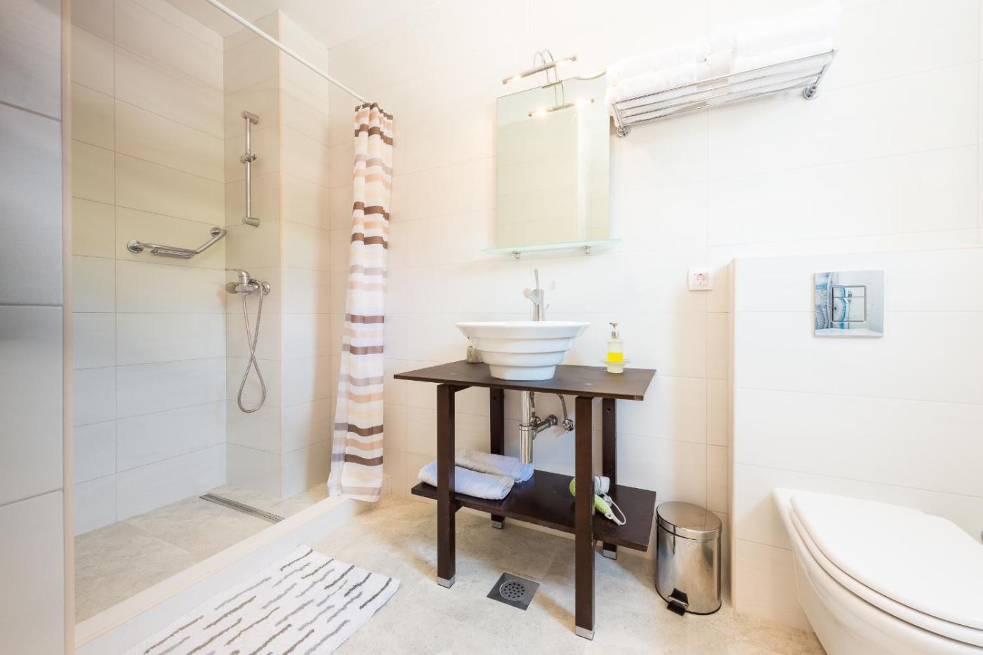 Three-Bedroom Apartment with Sea View and Terrace. Boasting a private entrance, this air-conditioned apartment includes 1 living room, 3 separate bedrooms and 2 bathrooms with a shower and a hairdryer. In the kitchen, guests will find a stovetop, a refrigerator, a dishwasher and kitchenware. The spacious apartment offers a washing machine, soundproof walls, a seating area as well as a terrace with sea views. The unit has 5 beds.