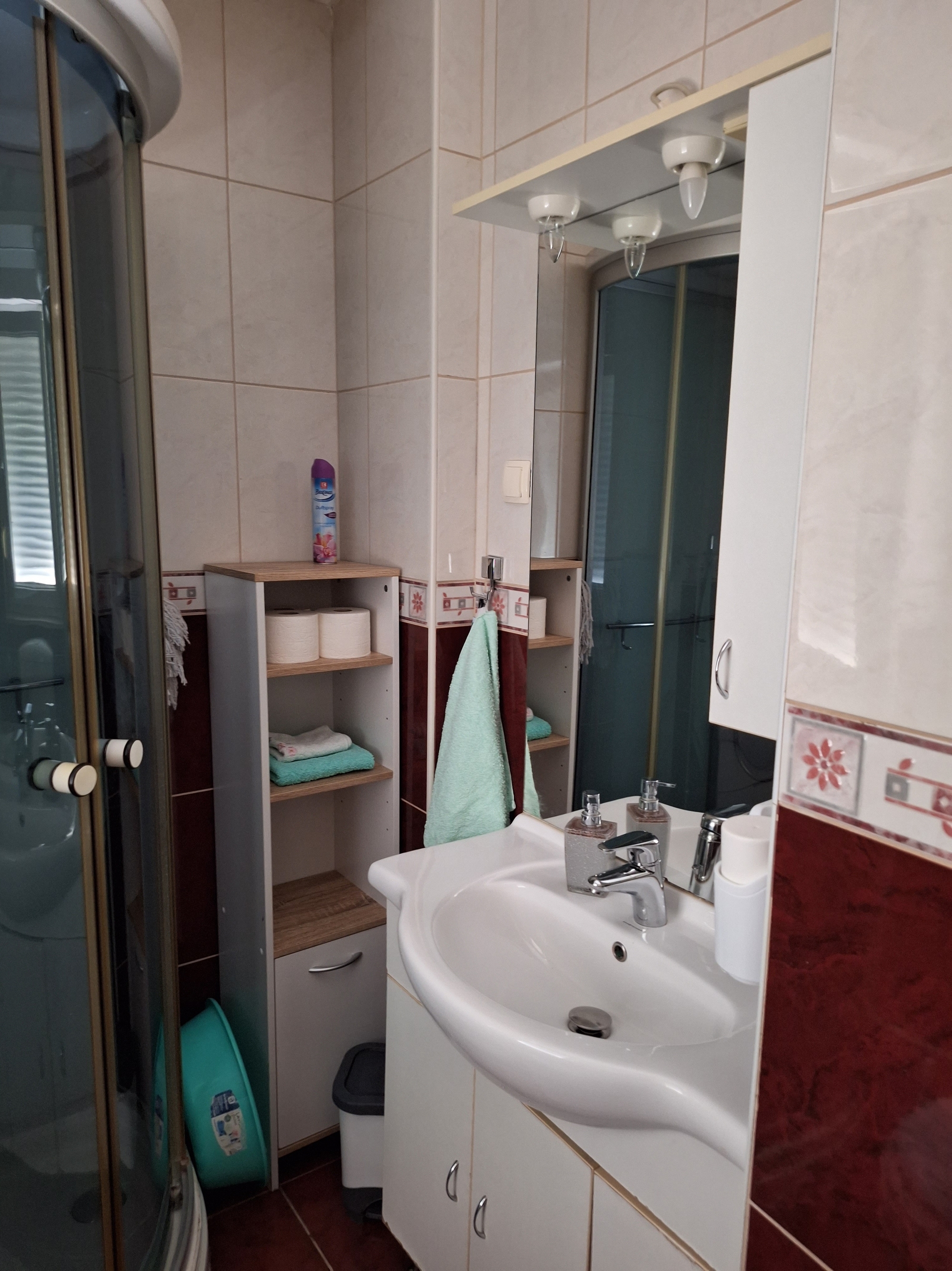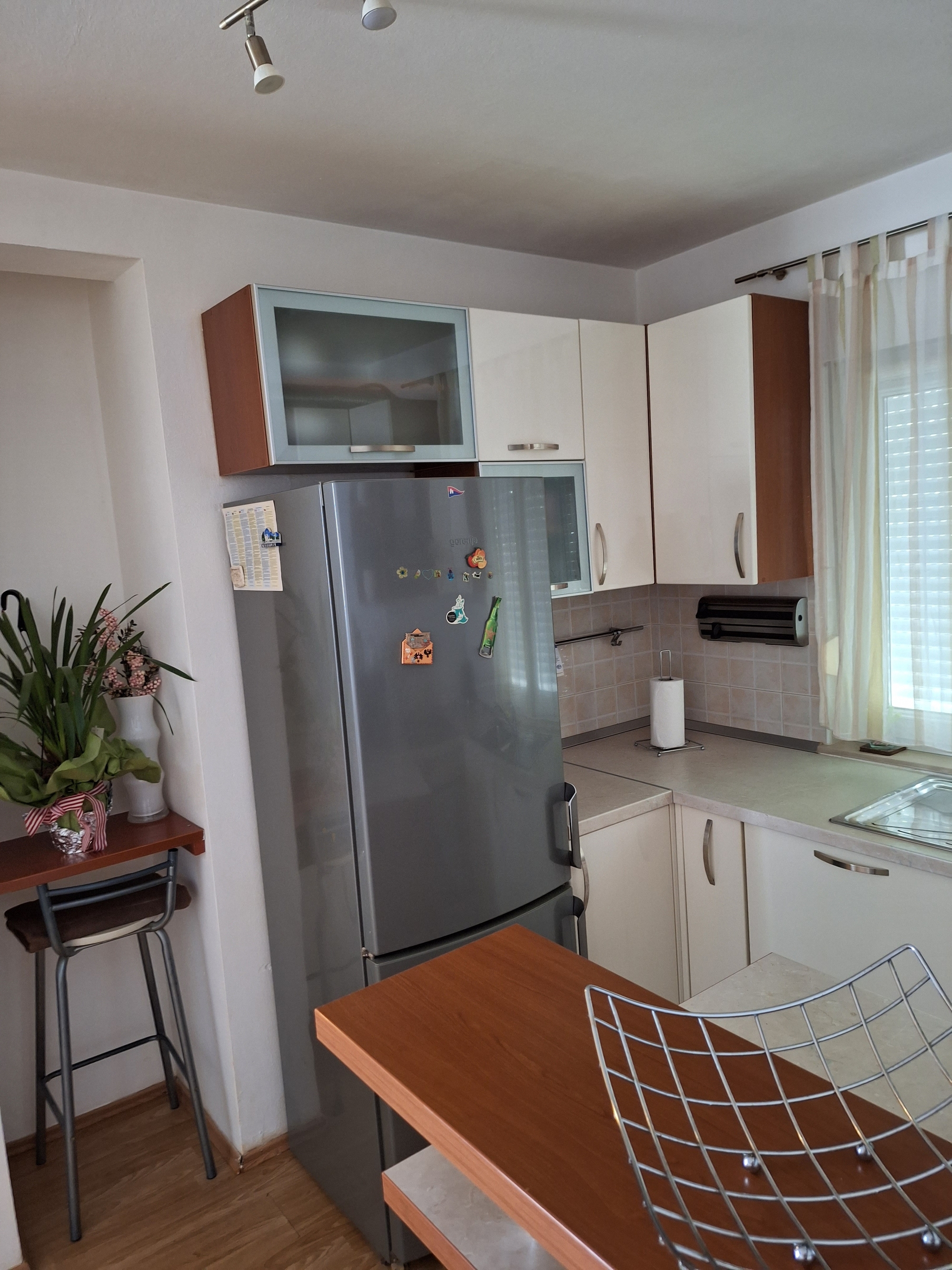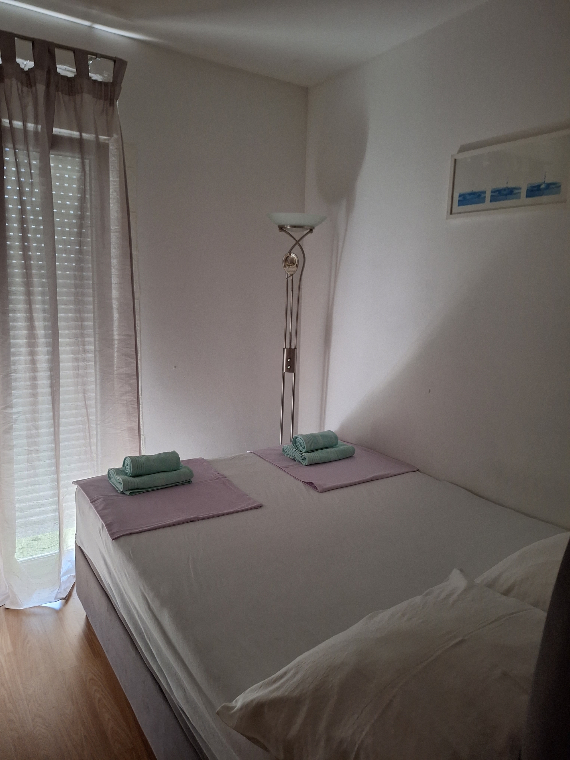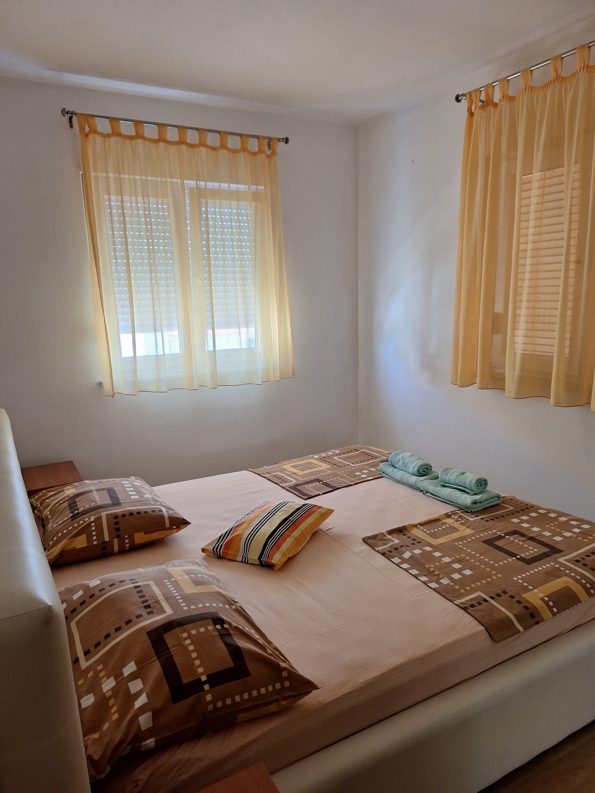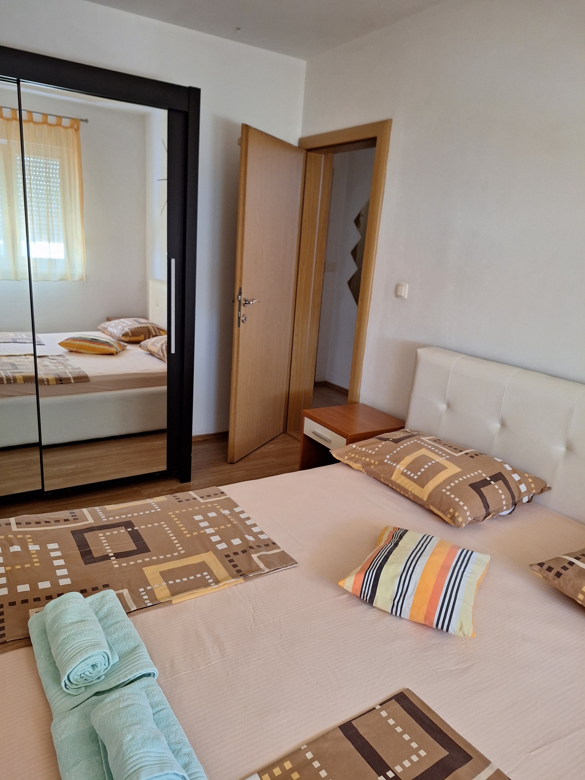 Apartament może przyjąć 4 gości. Łóżka znajdują się w sypialniach, których jest 2, na powierzchni 56m2. Goście mają dostęp do tarasu, by korzystać z ciepłych, letnich wieczorów. Z apartamentu roztacza się widok na morze. Możliwość przygotowywania posiłków poprzez korzystanie ze wspólnego grilla. WLICZONE W CENĘ: taksa pobytowa, sprzątanie końcowe, klimatyzacja, parking, internet, dostawka, żelazko, deska do prasowania, suszarka do włosów, przenośny grill, parasol. Dostępność dodatkowych usług w rezerwowanym terminie oraz ich cenę (jeśli nie jest podana) należy sprawdzić wcześniej. Za dodatowe usługi, które nie zostały uwzględnione w kalkulacji ceny, płaci się bezpośrednio właścicielowi obiektu, pod warunkiem śe gość korzysta z tych usług.