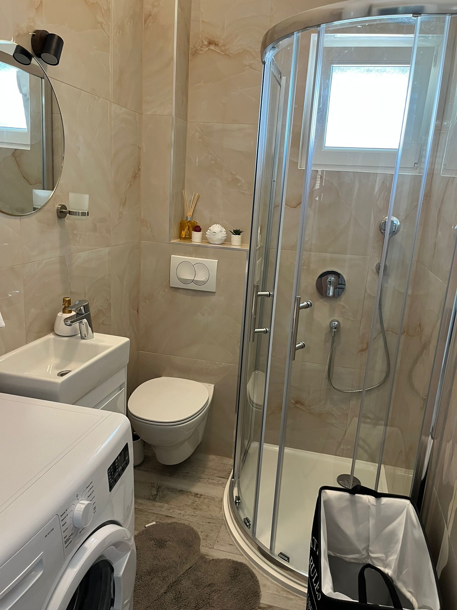 Apartament może przyjąć 4 gości. Łóżka znajdują się w sypialniach, których jest 1, oraz w pokoju dziennym, na powierzchni 34m2. Goście mają dostęp do tarasu, by korzystać z ciepłych, letnich wieczorów. Z apartamentu roztacza się widok na morze. Możliwość przygotowywania posiłków poprzez korzystanie ze wspólnego grilla. W kwaterze dozwolony jest pobyt zwierzęcia domowego, za dopłatą. WLICZONE W CENĘ: taksa pobytowa, sprzątanie końcowe, klimatyzacja, parking, internet, łóżeczko dziecięce, żelazko, deska do prasowania, suszarka do włosów. OBOWIĄZKOWE KOSZTY DODATKOWE: dopłata za krótki termin (procent dopłaty w zalezności od liczby noclegów: 30% - 1, 20% - 2, 10% - 3). NIEOBOWIĄZKOWE KOSZTY DODATKOWE: zwierzęta domowe (5,00 € za nocleg). Dostępność dodatkowych usług w rezerwowanym terminie oraz ich cenę (jeśli nie jest podana) należy sprawdzić wcześniej. Za dodatowe usługi, które nie zostały uwzględnione w kalkulacji ceny, płaci się bezpośrednio właścicielowi obiektu, pod warunkiem śe gość korzysta z tych usług. Zniżki od ceny podstawowej: bezpłatny dzień 21=19 (przy pobycie, trwającym co najmniej 21 dni, trzymujecie dwa bezpłatne dni na pobyt do 31.12.2026).
