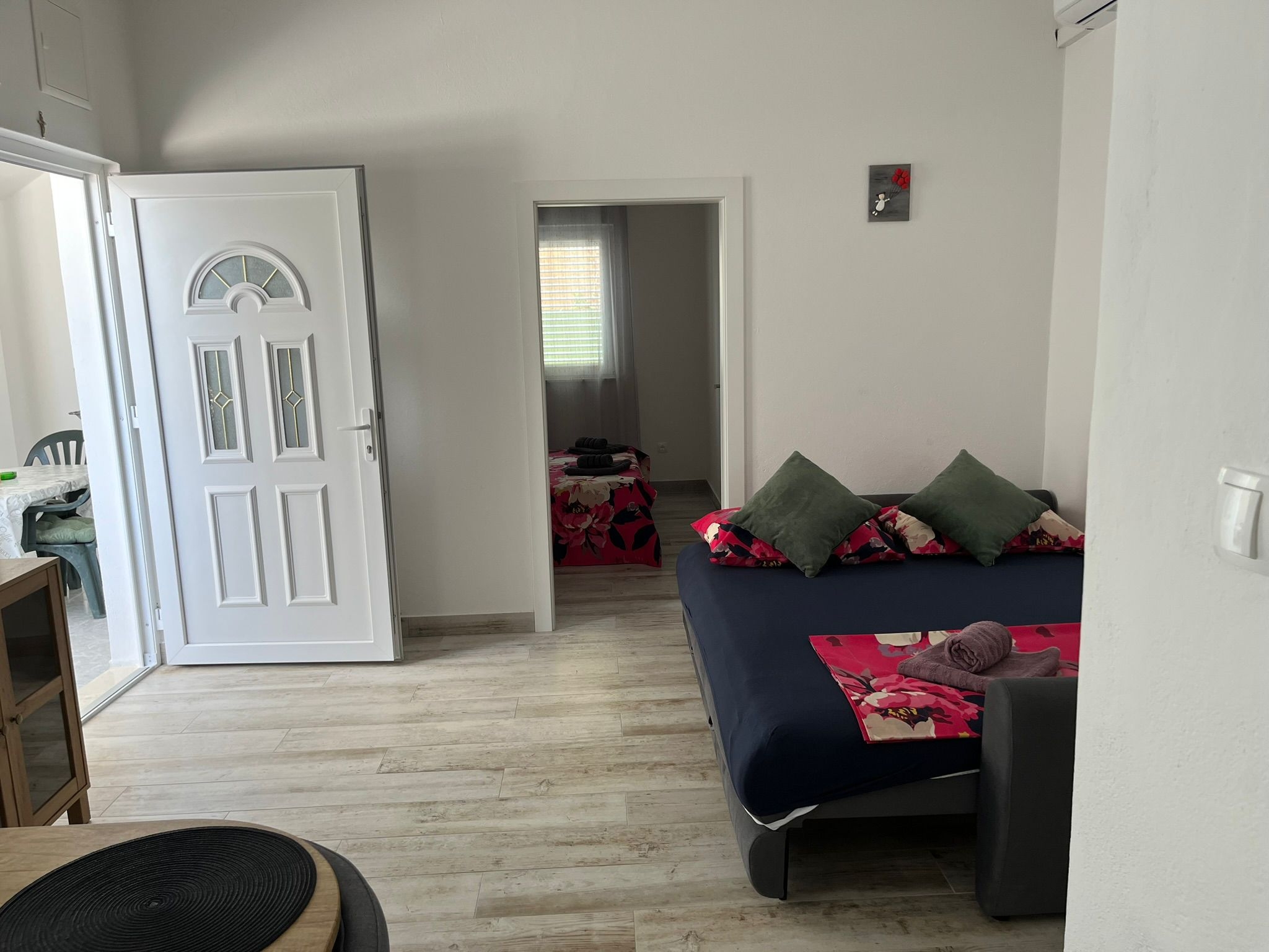 Apartament może przyjąć 4 gości. Łóżka znajdują się w sypialniach, których jest 1, oraz w pokoju dziennym, na powierzchni 34m2. Goście mają dostęp do tarasu, by korzystać z ciepłych, letnich wieczorów. Z apartamentu roztacza się widok na morze. Możliwość przygotowywania posiłków poprzez korzystanie ze wspólnego grilla. W kwaterze dozwolony jest pobyt zwierzęcia domowego, za dopłatą. WLICZONE W CENĘ: taksa pobytowa, sprzątanie końcowe, klimatyzacja, parking, internet, łóżeczko dziecięce, żelazko, deska do prasowania, suszarka do włosów. OBOWIĄZKOWE KOSZTY DODATKOWE: dopłata za krótki termin (procent dopłaty w zalezności od liczby noclegów: 30% - 1, 20% - 2, 10% - 3). NIEOBOWIĄZKOWE KOSZTY DODATKOWE: zwierzęta domowe (5,00 € za nocleg). Dostępność dodatkowych usług w rezerwowanym terminie oraz ich cenę (jeśli nie jest podana) należy sprawdzić wcześniej. Za dodatowe usługi, które nie zostały uwzględnione w kalkulacji ceny, płaci się bezpośrednio właścicielowi obiektu, pod warunkiem śe gość korzysta z tych usług. Zniżki od ceny podstawowej: bezpłatny dzień 21=19 (przy pobycie, trwającym co najmniej 21 dni, trzymujecie dwa bezpłatne dni na pobyt do 31.12.2026).