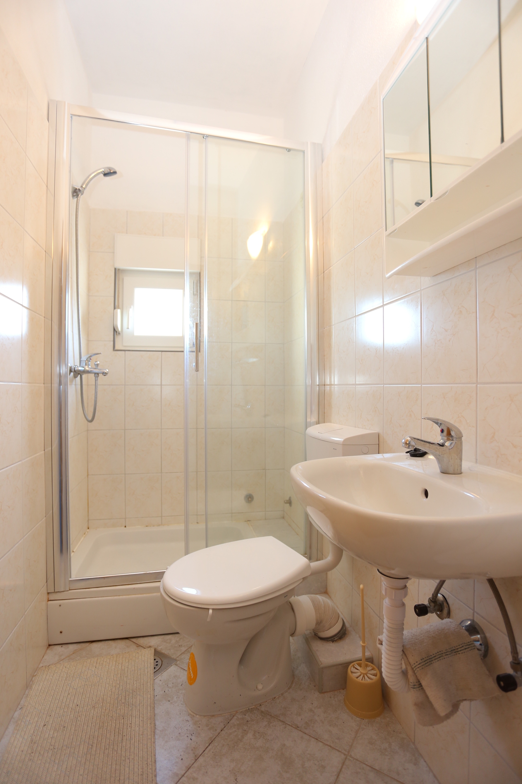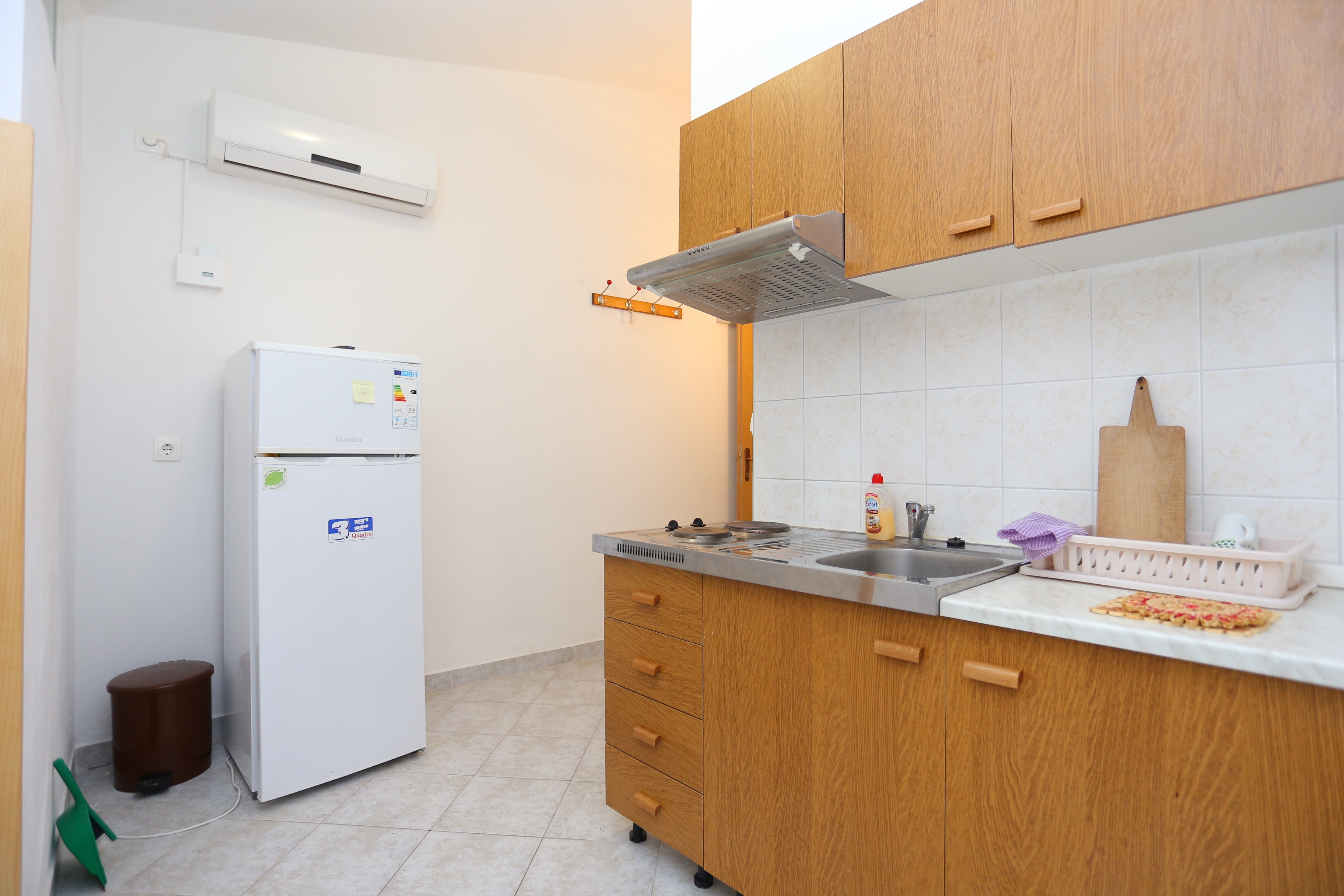 Apartament może przyjąć 5 gości. Łóżka znajdują się w sypialniach, których jest 2, na powierzchni 37m2. Goście mają dostęp do balkonu, by korzystać z ciepłych, letnich wieczorów. Z apartamentu roztacza się widok na morze. Możliwość przygotowywania posiłków poprzez korzystanie ze wspólnego grilla. WLICZONE W CENĘ: taksa pobytowa, sprzątanie końcowe, parking, internet, przenośny grill, parasol, leżaki. OBOWIĄZKOWE KOSZTY DODATKOWE: dopłata za krótki termin (procent dopłaty w zalezności od liczby noclegów: 30% - 1, 20% - 2, 10% - 3). NIEOBOWIĄZKOWE KOSZTY DODATKOWE: klimatyzacja (5,00 € za nocleg), miejsce do cumowania łodzi (5,00 € za nocleg). Dostępność dodatkowych usług w rezerwowanym terminie oraz ich cenę (jeśli nie jest podana) należy sprawdzić wcześniej. Za dodatowe usługi, które nie zostały uwzględnione w kalkulacji ceny, płaci się bezpośrednio właścicielowi obiektu, pod warunkiem śe gość korzysta z tych usług.