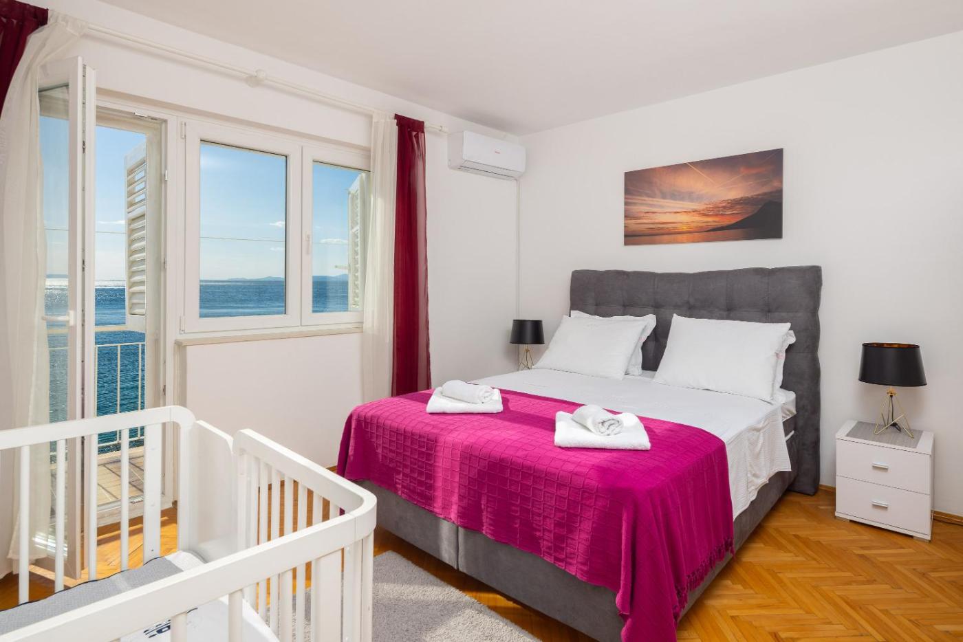 Apartament z 2 sypialniami. Boasting a private entrance, this air-conditioned apartment features 1 living room, 2 separate bedrooms and 3 bathrooms with a shower and a hairdryer. Guests will find a stovetop, a refrigerator, a dishwasher and kitchenware in the well-fitted kitchen. The apartment also comes with a barbecue. The spacious apartment features a washing machine, a tea and coffee maker, a seating area, a flat-screen TV with satellite channels, as well as sea views. The unit has 4 beds. Apartament - 6 osobowy. Powierzchnia pokoju ok.: 80 mkw.