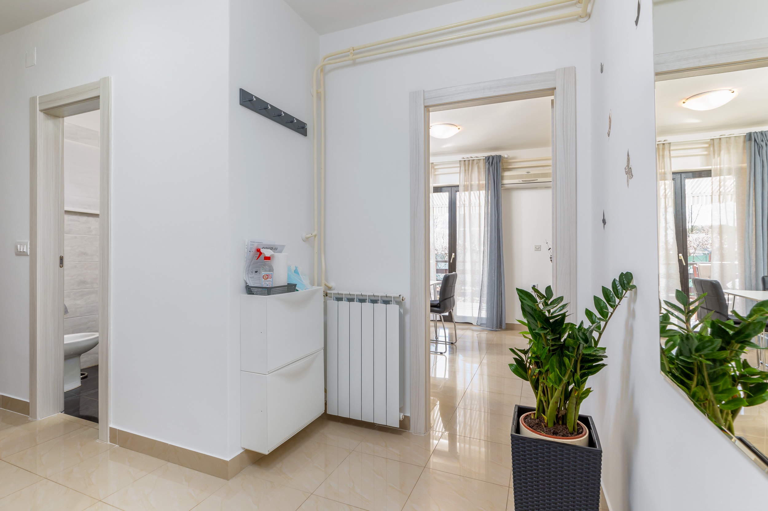 Apartament może przyjąć 4 gości. Łóżka znajdują się w sypialniach, których jest 2, na powierzchni 44m2. Goście mają dostęp do tarasu, by korzystać z ciepłych, letnich wieczorów. Możliwość przygotowywania posiłków poprzez korzystanie ze wspólnego grilla. WLICZONE W CENĘ: taksa pobytowa, sprzątanie końcowe, klimatyzacja, parking, internet, łóżeczko dziecięce, żelazko, deska do prasowania, suszarka do włosów. OBOWIĄZKOWE KOSZTY DODATKOWE: dopłata za krótki termin (procent dopłaty w zalezności od liczby noclegów: 30% - 1, 20% - 2, 10% - 3). NIEOBOWIĄZKOWE KOSZTY DODATKOWE: centralne ogrzewanie (5,00 € za nocleg). Dostępność dodatkowych usług w rezerwowanym terminie oraz ich cenę (jeśli nie jest podana) należy sprawdzić wcześniej. Za dodatowe usługi, które nie zostały uwzględnione w kalkulacji ceny, płaci się bezpośrednio właścicielowi obiektu, pod warunkiem śe gość korzysta z tych usług.