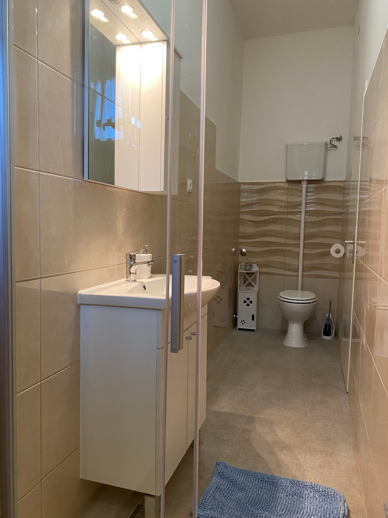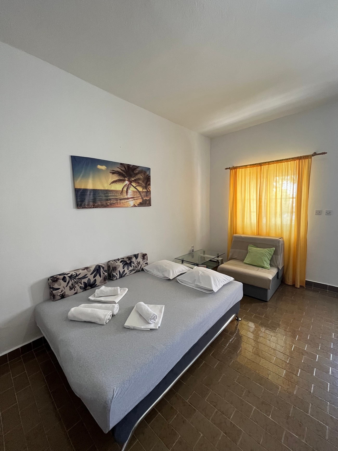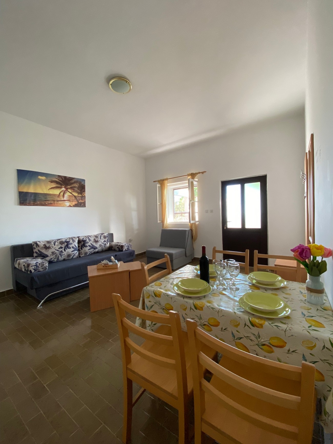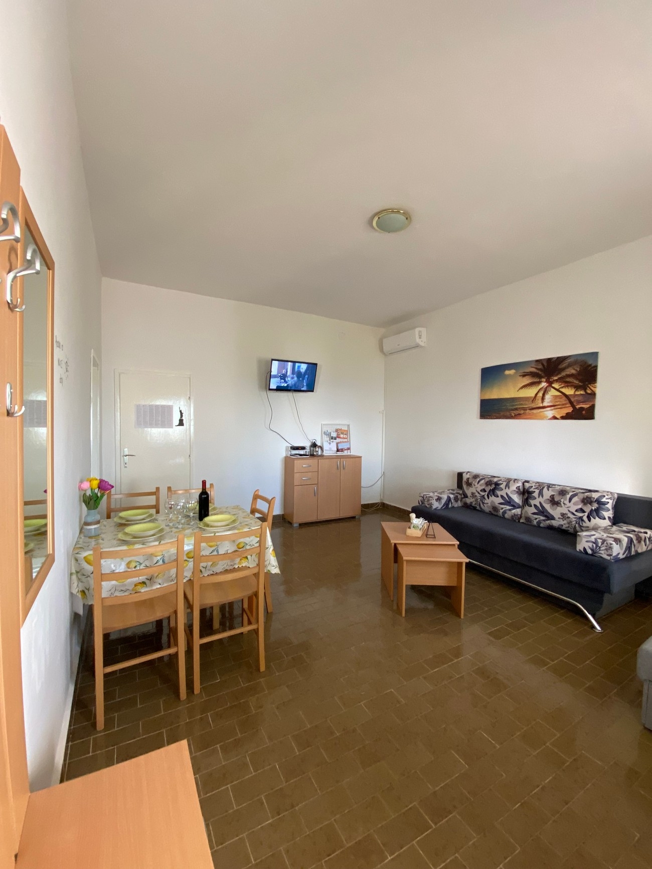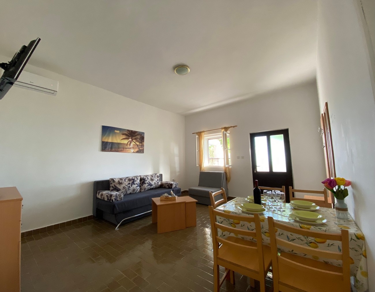 Apartament może przyjąć 5 gości. Łóżka znajdują się w sypialniach, których jest 1, oraz w pokoju dziennym, na powierzchni 55m2. Goście mają dostęp do tarasu, by korzystać z ciepłych, letnich wieczorów. Z apartamentu roztacza się widok na morze. W kwaterze dozwolony jest pobyt zwierzęcia domowego, za dopłatą. WLICZONE W CENĘ: taksa pobytowa, sprzątanie końcowe, klimatyzacja, parking, internet, suszarka do włosów. NIEOBOWIĄZKOWE KOSZTY DODATKOWE: zwierzęta domowe (10,00 € za nocleg). Dostępność dodatkowych usług w rezerwowanym terminie oraz ich cenę (jeśli nie jest podana) należy sprawdzić wcześniej. Za dodatowe usługi, które nie zostały uwzględnione w kalkulacji ceny, płaci się bezpośrednio właścicielowi obiektu, pod warunkiem śe gość korzysta z tych usług.