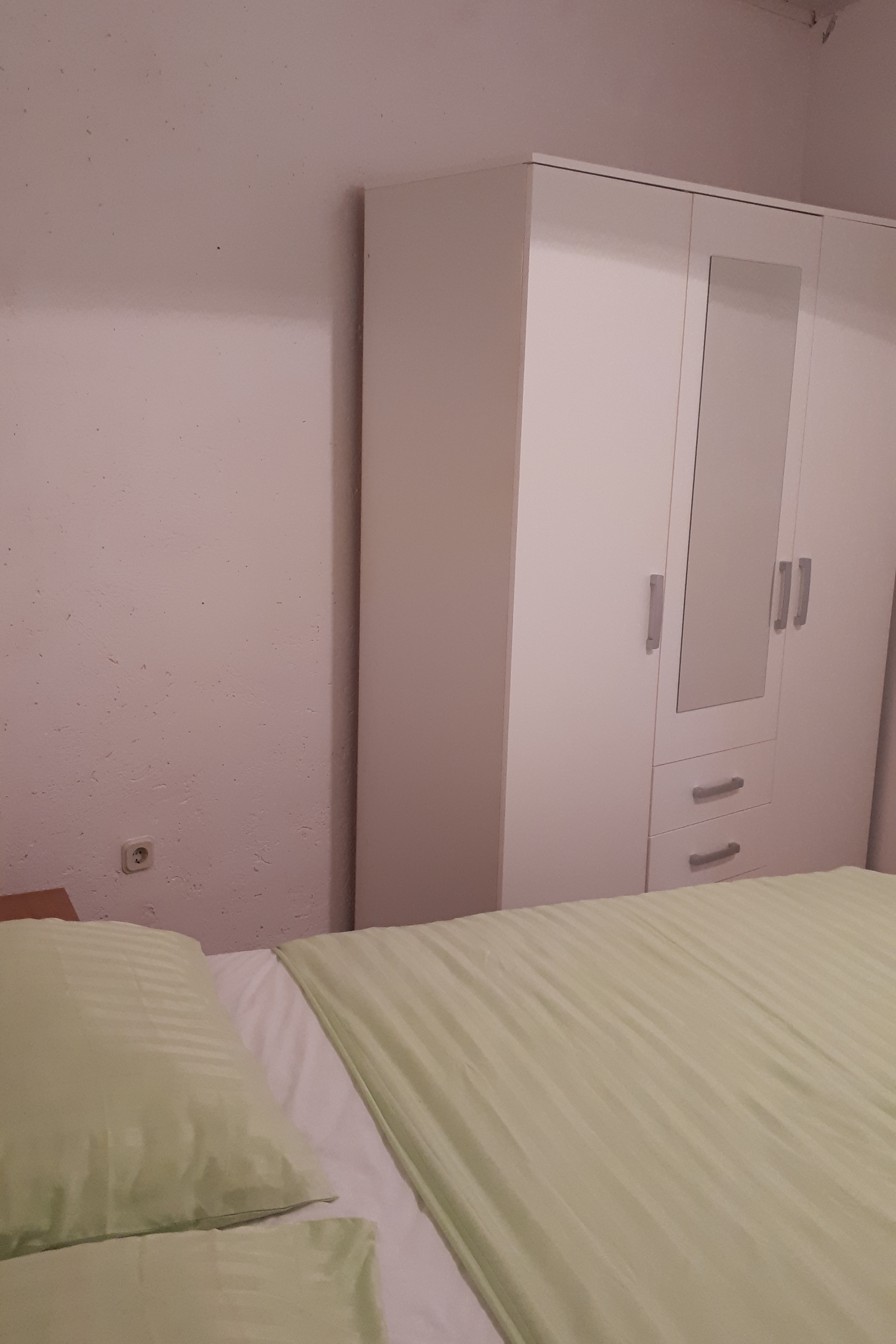 Apartament może przyjąć 2 gości. Łóżka znajdują się w sypialniach, których jest 1, na powierzchni 34m2. Goście mają dostęp do tarasu, by korzystać z ciepłych, letnich wieczorów. Z apartamentu roztacza się widok na morze. W kwaterze dozwolony jest pobyt zwierzęcia domowego, za dopłatą. WLICZONE W CENĘ: taksa pobytowa, sprzątanie końcowe, klimatyzacja, parking, internet, łóżeczko dziecięce, suszarka do włosów. OBOWIĄZKOWE KOSZTY DODATKOWE: dopłata za krótki termin (procent dopłaty w zalezności od liczby noclegów: 30% - 1, 20% - 2, 10% - 3). NIEOBOWIĄZKOWE KOSZTY DODATKOWE: pranie bielizny (5,00 € pranie), zwierzęta domowe (5,00 € za nocleg). Dostępność dodatkowych usług w rezerwowanym terminie oraz ich cenę (jeśli nie jest podana) należy sprawdzić wcześniej. Za dodatowe usługi, które nie zostały uwzględnione w kalkulacji ceny, płaci się bezpośrednio właścicielowi obiektu, pod warunkiem śe gość korzysta z tych usług.