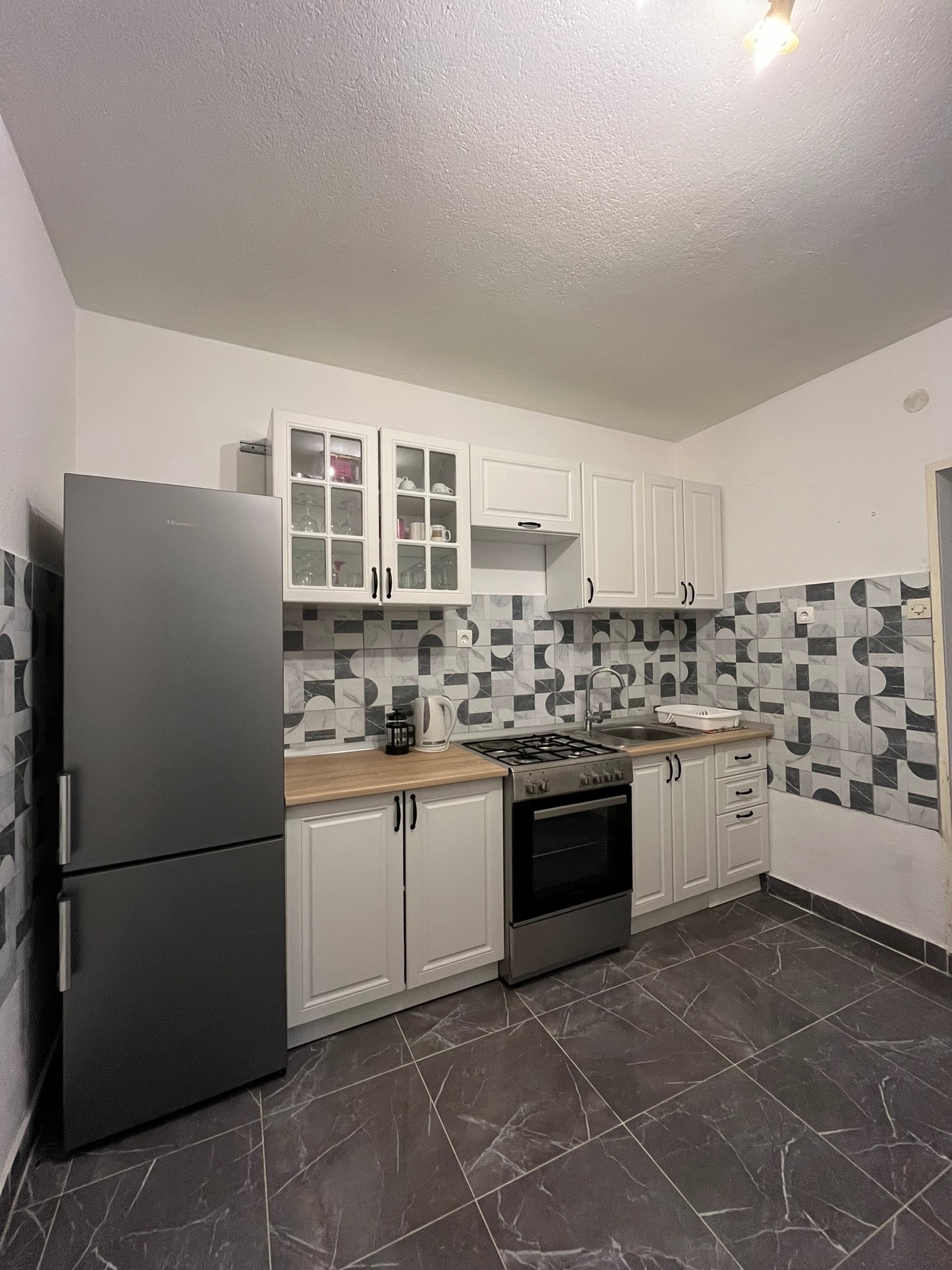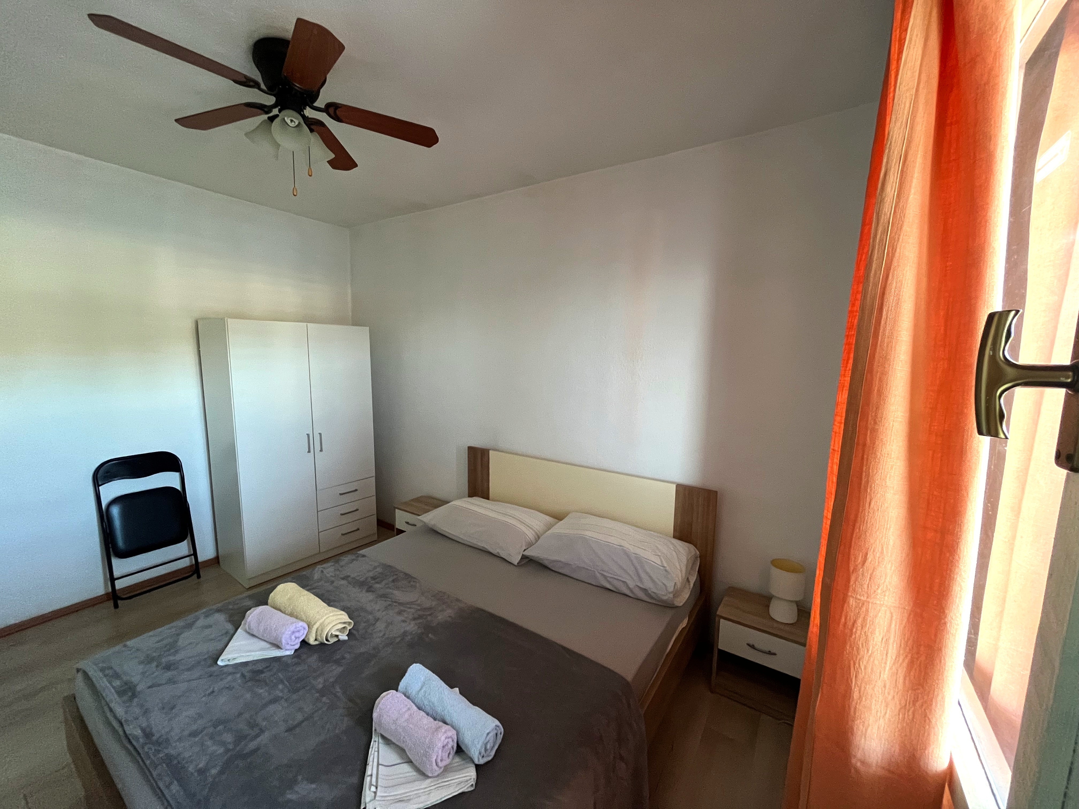 Apartament może przyjąć 6 gości. Łóżka znajdują się w sypialniach, których jest 2, oraz w pokoju dziennym, na powierzchni 75m2. Goście mają dostęp do tarasu, by korzystać z ciepłych, letnich wieczorów. Z apartamentu roztacza się widok na morze. Do kwatery można przyjechać ze zwierzęciem domowym, a usługa jest wliczona w cenę wynajęcia kwatery. WLICZONE W CENĘ: taksa pobytowa, sprzątanie końcowe, klimatyzacja, parking, internet, zwierzęta domowe. OBOWIĄZKOWE KOSZTY DODATKOWE: dopłata za krótki termin (procent dopłaty w zalezności od liczby noclegów: 30% - 1, 20% - 2, 10% - 3). NIEOBOWIĄZKOWE KOSZTY DODATKOWE: dostawka (15,00 € za nocleg). Dostępność dodatkowych usług w rezerwowanym terminie oraz ich cenę (jeśli nie jest podana) należy sprawdzić wcześniej. Za dodatowe usługi, które nie zostały uwzględnione w kalkulacji ceny, płaci się bezpośrednio właścicielowi obiektu, pod warunkiem śe gość korzysta z tych usług.