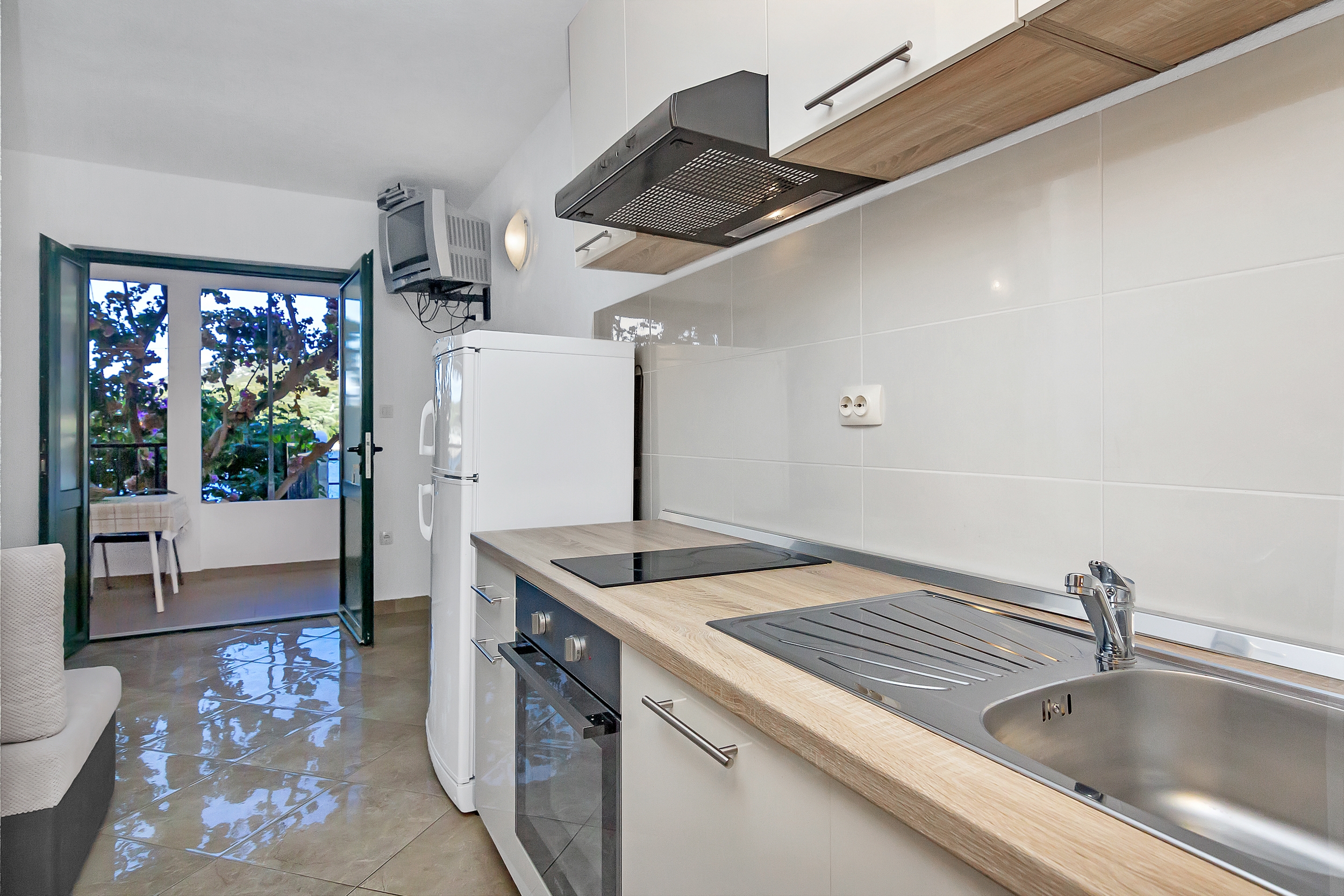 Apartament może przyjąć 5 gości. Łóżka znajdują się w sypialniach, których jest 1, oraz w pokoju dziennym, na powierzchni 36m2. Goście mają dostęp do tarasu, by korzystać z ciepłych, letnich wieczorów. Z apartamentu roztacza się widok na morze. Możliwość przygotowywania posiłków poprzez korzystanie ze wspólnego grilla. W kwaterze dozwolony jest pobyt zwierzęcia domowego, za dopłatą. WLICZONE W CENĘ: taksa pobytowa, sprzątanie końcowe, klimatyzacja, parking, internet, miejsce do cumowania łodzi, łóżeczko dziecięce. NIEOBOWIĄZKOWE KOSZTY DODATKOWE: zwierzęta domowe (13,00 € za nocleg). Dostępność dodatkowych usług w rezerwowanym terminie oraz ich cenę (jeśli nie jest podana) należy sprawdzić wcześniej. Za dodatowe usługi, które nie zostały uwzględnione w kalkulacji ceny, płaci się bezpośrednio właścicielowi obiektu, pod warunkiem śe gość korzysta z tych usług.