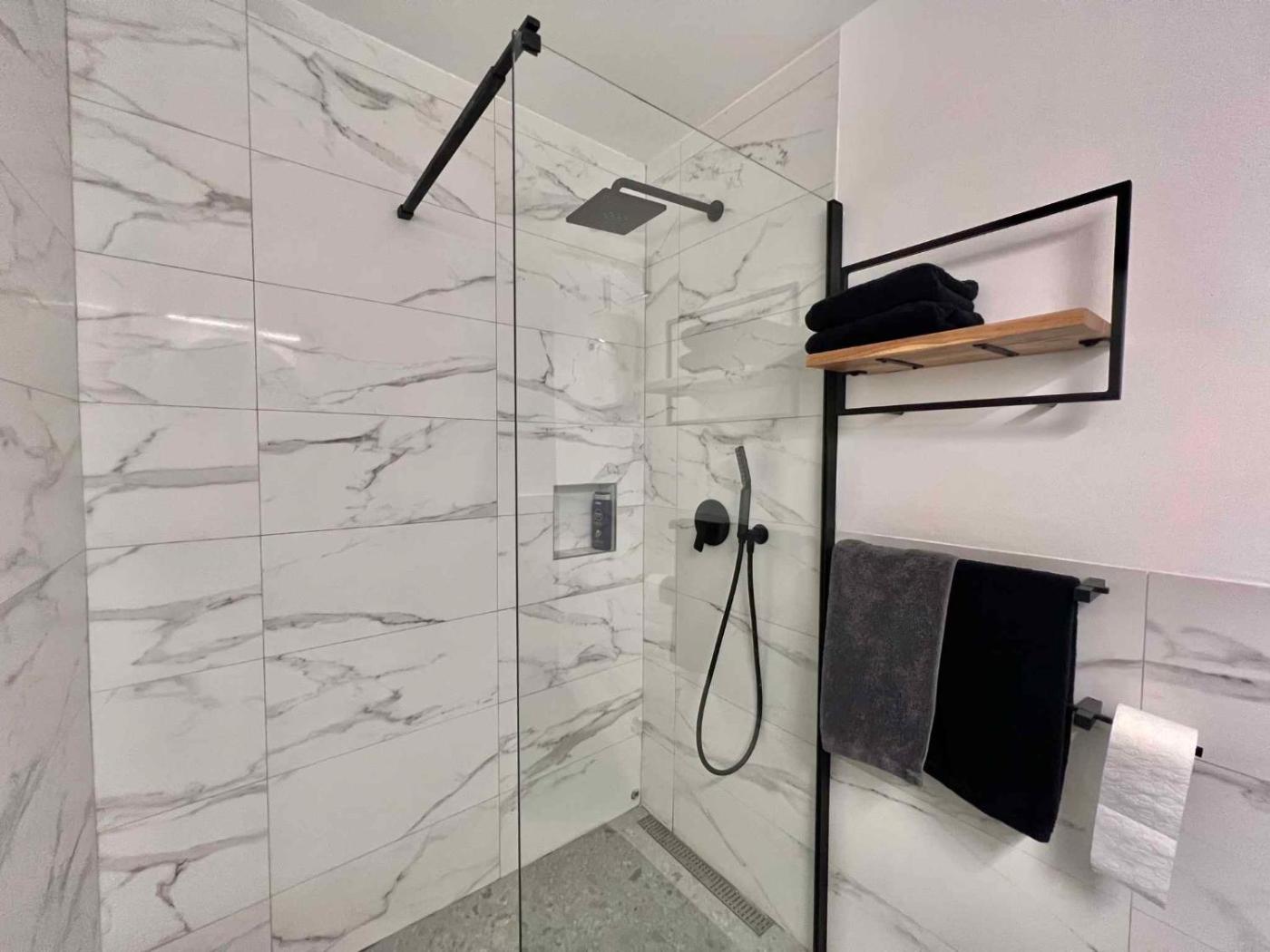 Oferta apartamentu obejmuje kilka sypialni (2), salon, kuchnię z pełnym wyposażeniem, w tym lodówką i czajnikiem, a także łazienkę (1) z prysznicem oraz suszarką do włosów.