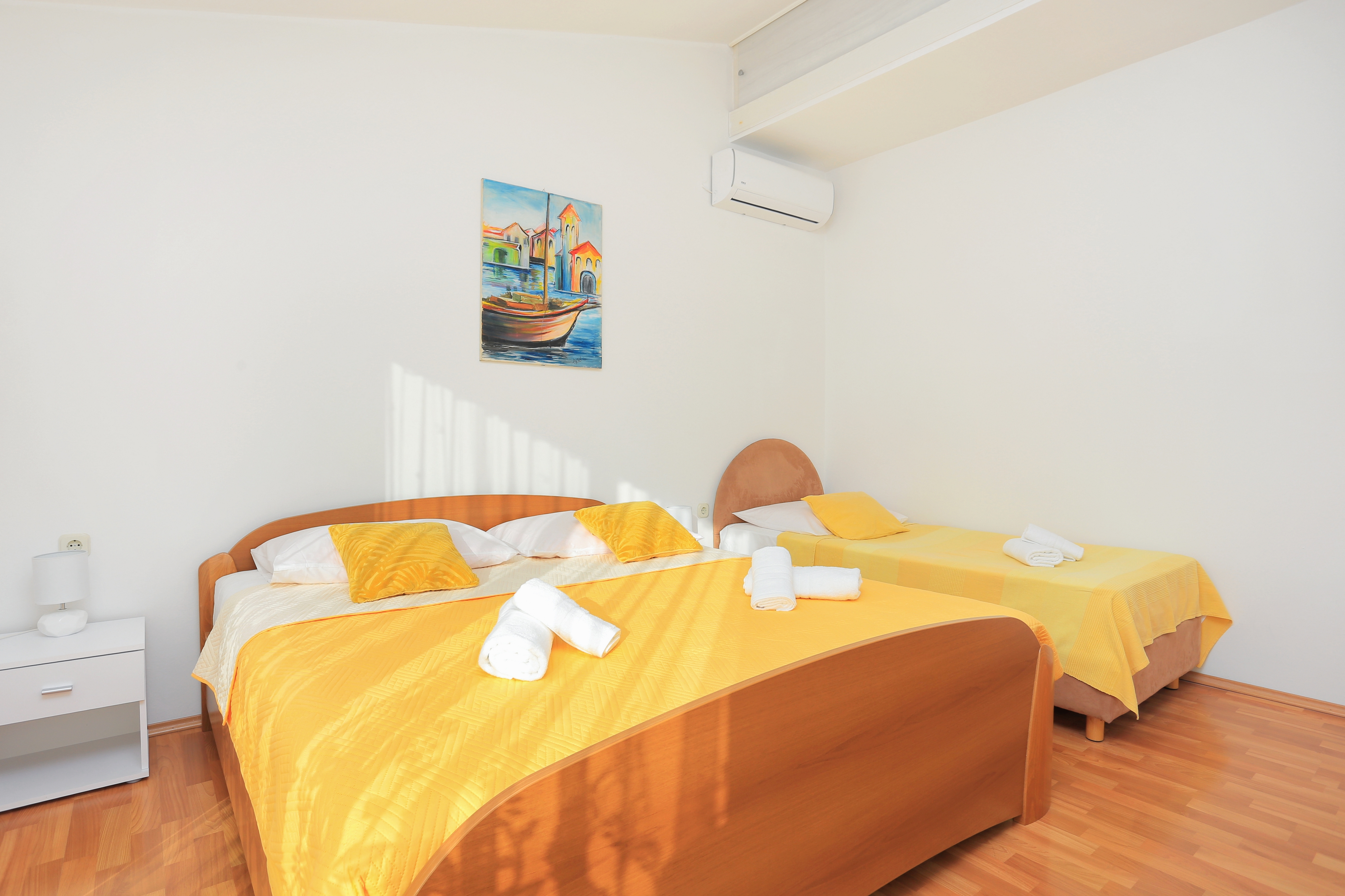 Apartament może przyjąć 3 gości. Łóżka znajdują się w sypialniach, których jest 1, na powierzchni 26m2. Goście mają dostęp do balkonu, by korzystać z ciepłych, letnich wieczorów. Możliwość przygotowywania posiłków poprzez korzystanie ze wspólnego grilla. Rezerwowana kwatera ma taras wspólny z inną kwaterą. WLICZONE W CENĘ: taksa pobytowa, sprzątanie końcowe, klimatyzacja, parking, internet, łóżeczko dziecięce, żelazko, deska do prasowania, suszarka do włosów. Dostępność dodatkowych usług w rezerwowanym terminie oraz ich cenę (jeśli nie jest podana) należy sprawdzić wcześniej. Za dodatowe usługi, które nie zostały uwzględnione w kalkulacji ceny, płaci się bezpośrednio właścicielowi obiektu, pod warunkiem śe gość korzysta z tych usług.