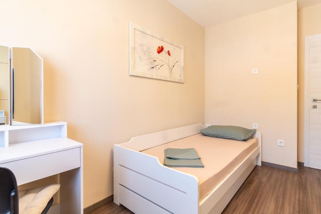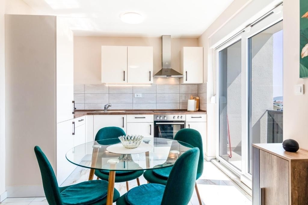 Apartament może przyjąć 5 gości. Łóżka znajdują się w sypialniach, których jest 2, oraz w pokoju dziennym, na powierzchni 72m2. Goście mają dostęp do balkonu, by korzystać z ciepłych, letnich wieczorów. Z apartamentu roztacza się widok na morze. Możliwość przygotowywania posiłków poprzez korzystanie ze wspólnego grilla. W trakcie swojego pobytu goście mogą korzystać ze wspólnego basenu. WLICZONE W CENĘ: taksa pobytowa, sprzątanie końcowe, klimatyzacja, basen, parking, internet, łóżeczko dziecięce, żelazko, deska do prasowania, suszarka do włosów. Dostępność dodatkowych usług w rezerwowanym terminie oraz ich cenę (jeśli nie jest podana) należy sprawdzić wcześniej. Za dodatowe usługi, które nie zostały uwzględnione w kalkulacji ceny, płaci się bezpośrednio właścicielowi obiektu, pod warunkiem śe gość korzysta z tych usług.