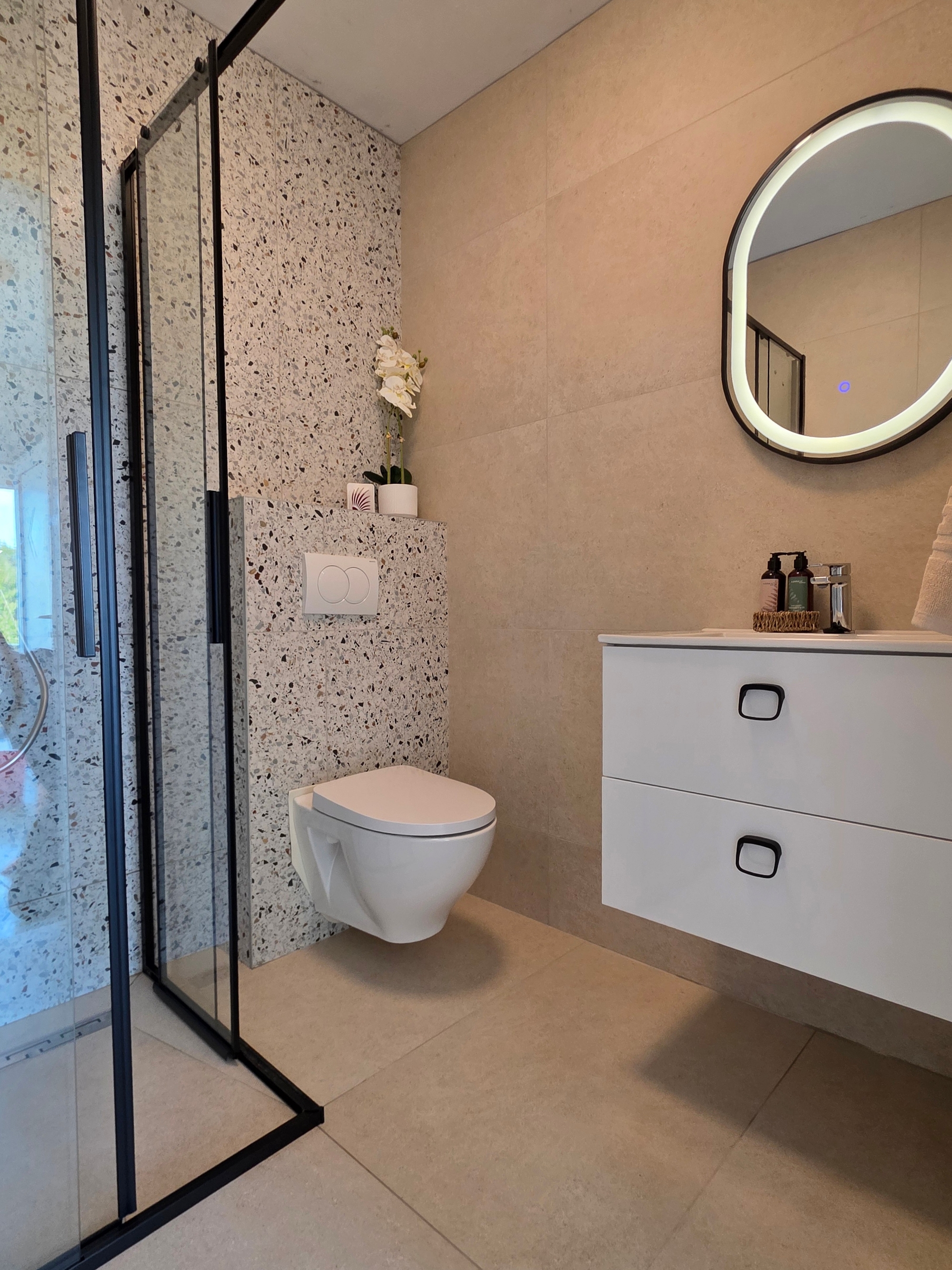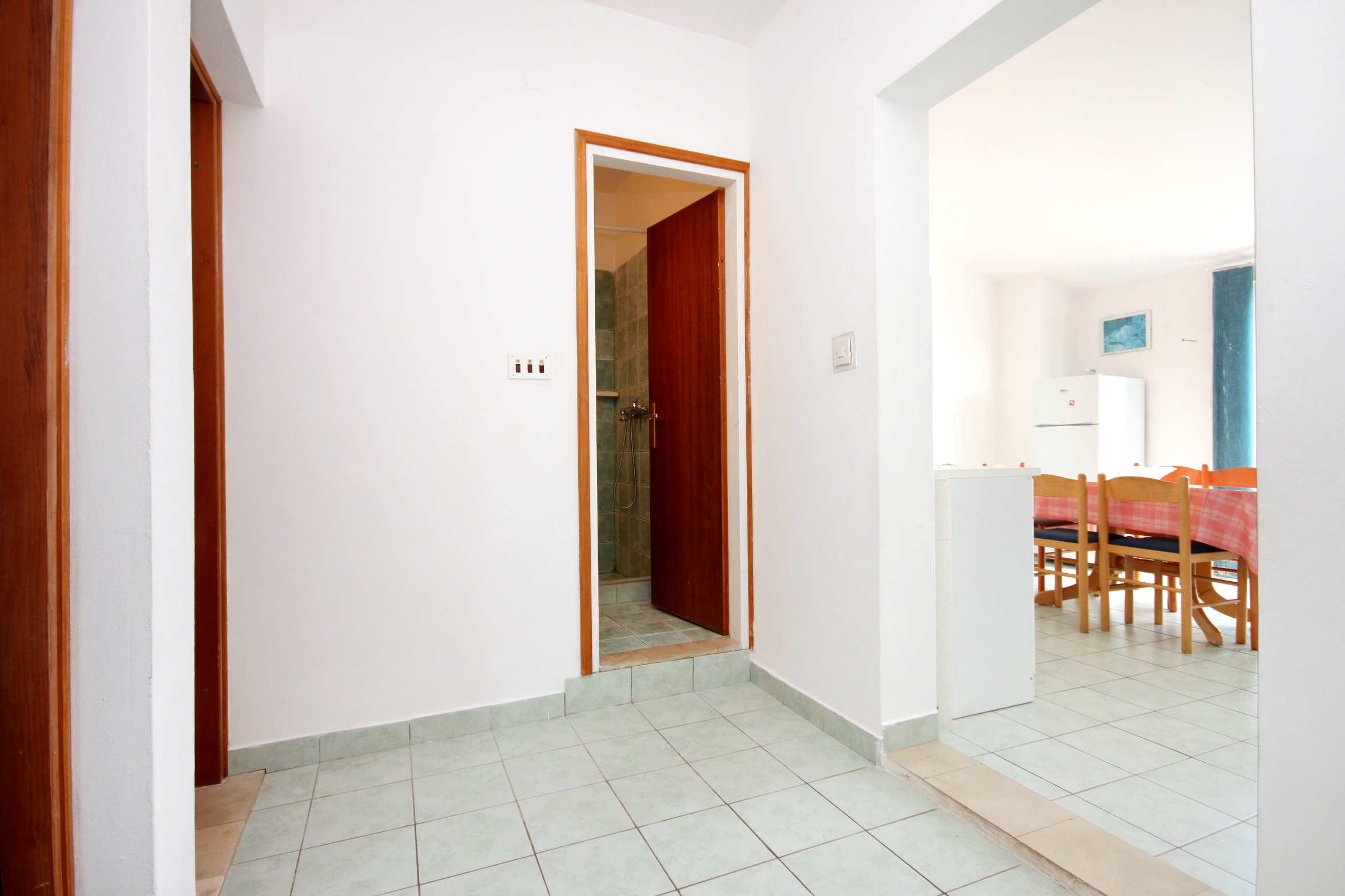 Apartament może przyjąć 5 gości. Łóżka znajdują się w sypialniach, których jest 2, oraz w pokoju dziennym, na powierzchni 52m2. Goście mają dostęp do tarasu, by korzystać z ciepłych, letnich wieczorów. Z apartamentu roztacza się widok na morze. Możliwość przygotowywania posiłków poprzez korzystanie ze wspólnego grilla. W kwaterze dozwolony jest pobyt zwierzęcia domowego, za dopłatą. WLICZONE W CENĘ: taksa pobytowa, sprzątanie końcowe, klimatyzacja, parking, internet, miejsce do cumowania łodzi, żelazko. OBOWIĄZKOWE KOSZTY DODATKOWE: dopłata za krótki termin (procent dopłaty w zalezności od liczby noclegów: 30% - 1, 20% - 2, 10% - 3). NIEOBOWIĄZKOWE KOSZTY DODATKOWE: pranie bielizny (5,00 € pranie), łódź (60,00 € za nocleg), zwierzęta domowe (3,00 € za nocleg). Dostępność dodatkowych usług w rezerwowanym terminie oraz ich cenę (jeśli nie jest podana) należy sprawdzić wcześniej. Za dodatowe usługi, które nie zostały uwzględnione w kalkulacji ceny, płaci się bezpośrednio właścicielowi obiektu, pod warunkiem śe gość korzysta z tych usług.