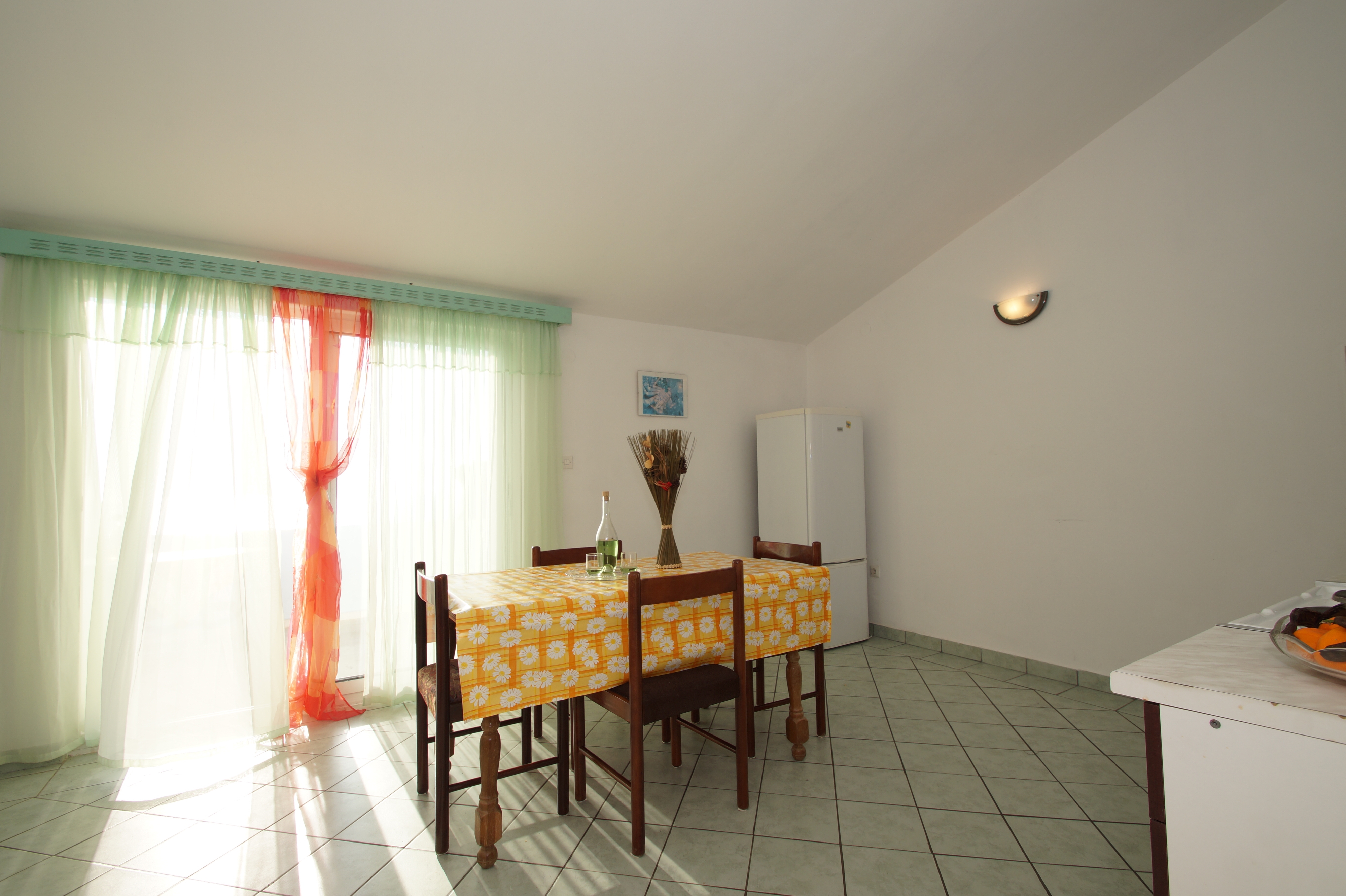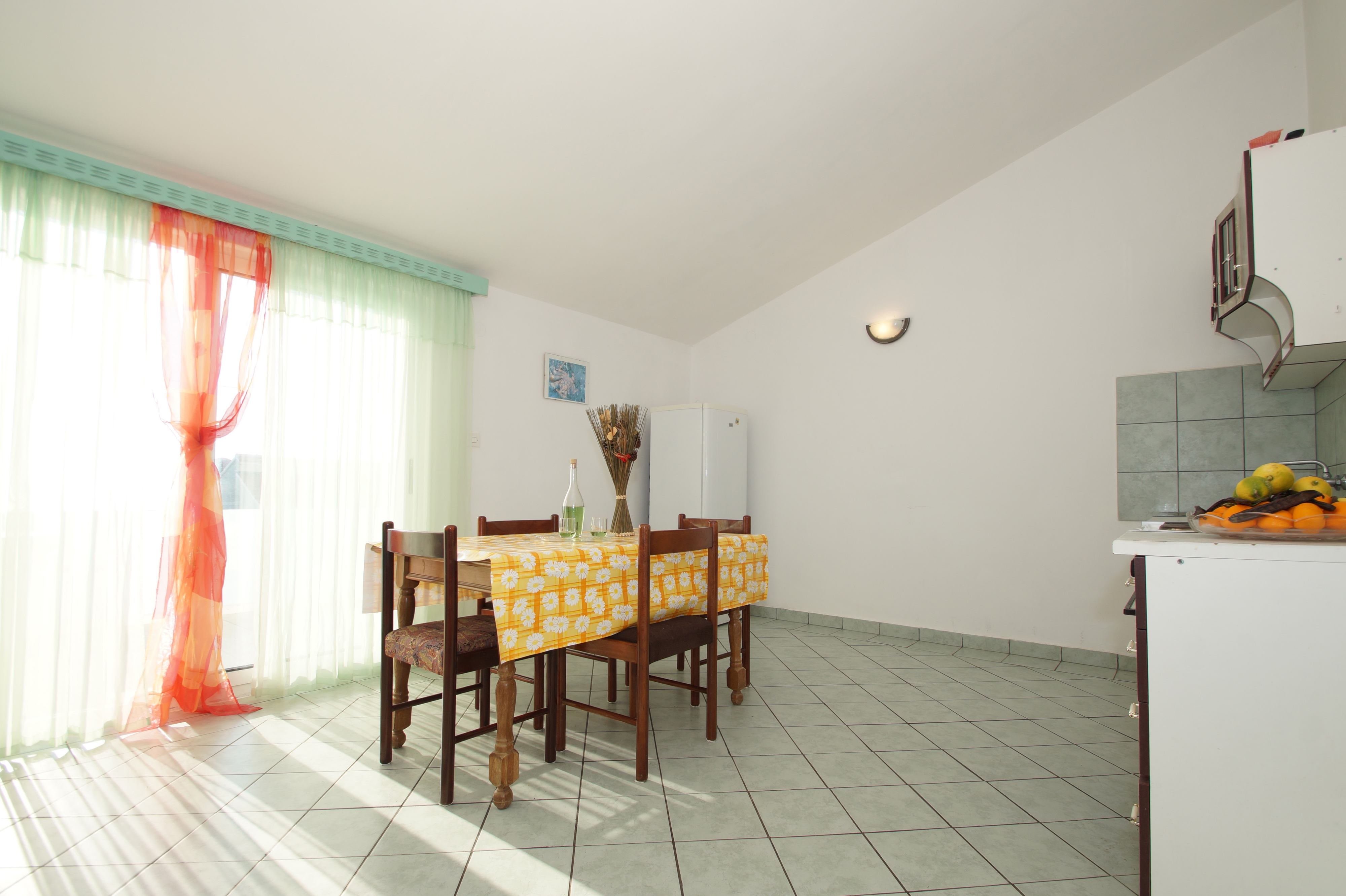 Apartament może przyjąć 5 gości. Łóżka znajdują się w sypialniach, których jest 2, oraz w pokoju dziennym, na powierzchni 52m2. Goście mają dostęp do tarasu, by korzystać z ciepłych, letnich wieczorów. Z apartamentu roztacza się widok na morze. Możliwość przygotowywania posiłków poprzez korzystanie ze wspólnego grilla. W kwaterze dozwolony jest pobyt zwierzęcia domowego, za dopłatą. WLICZONE W CENĘ: taksa pobytowa, sprzątanie końcowe, klimatyzacja, parking, internet, miejsce do cumowania łodzi, żelazko. OBOWIĄZKOWE KOSZTY DODATKOWE: dopłata za krótki termin (procent dopłaty w zalezności od liczby noclegów: 30% - 1, 20% - 2, 10% - 3). NIEOBOWIĄZKOWE KOSZTY DODATKOWE: pranie bielizny (5,00 € pranie), łódź (60,00 € za nocleg), zwierzęta domowe (3,00 € za nocleg). Dostępność dodatkowych usług w rezerwowanym terminie oraz ich cenę (jeśli nie jest podana) należy sprawdzić wcześniej. Za dodatowe usługi, które nie zostały uwzględnione w kalkulacji ceny, płaci się bezpośrednio właścicielowi obiektu, pod warunkiem śe gość korzysta z tych usług.