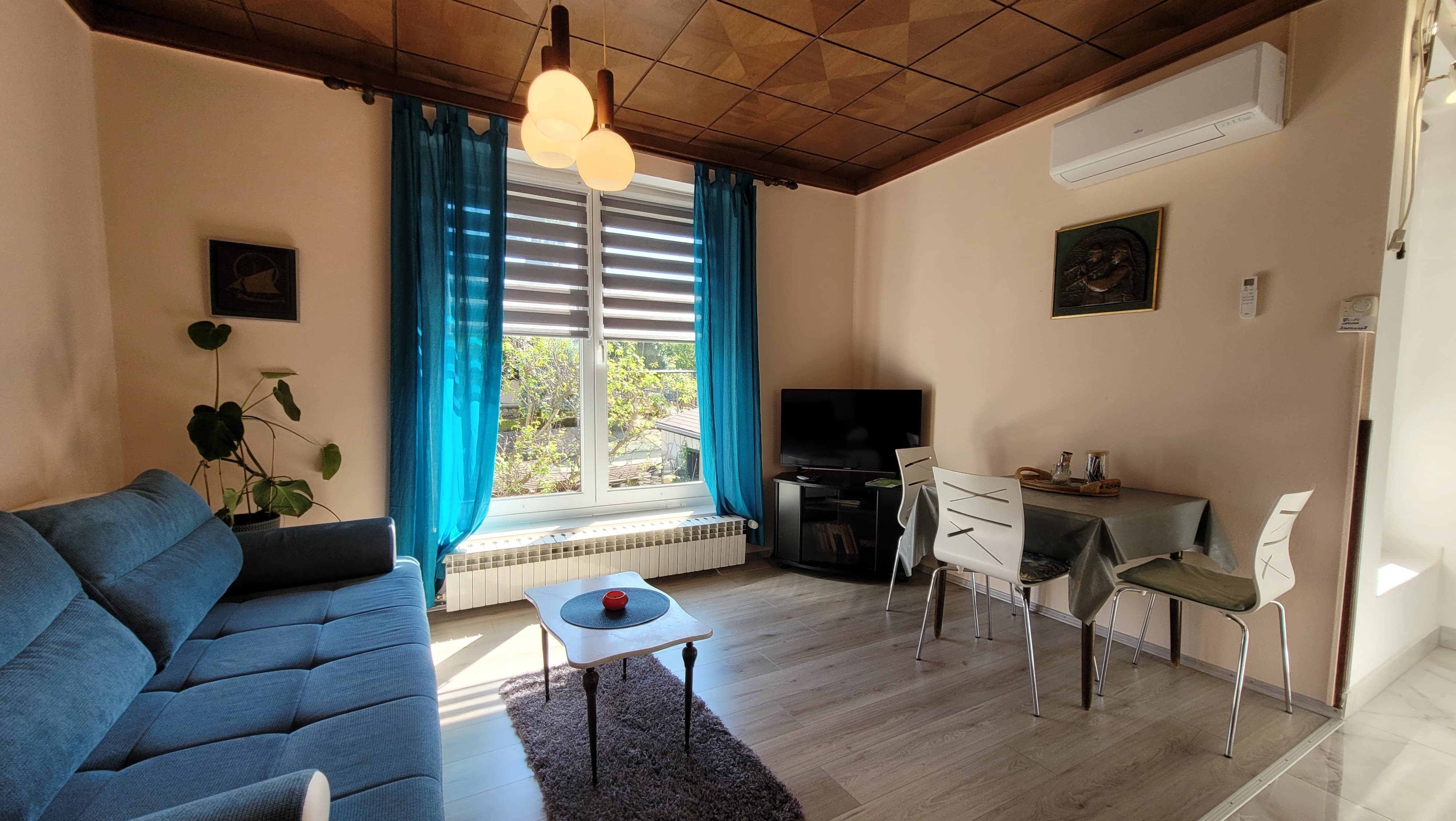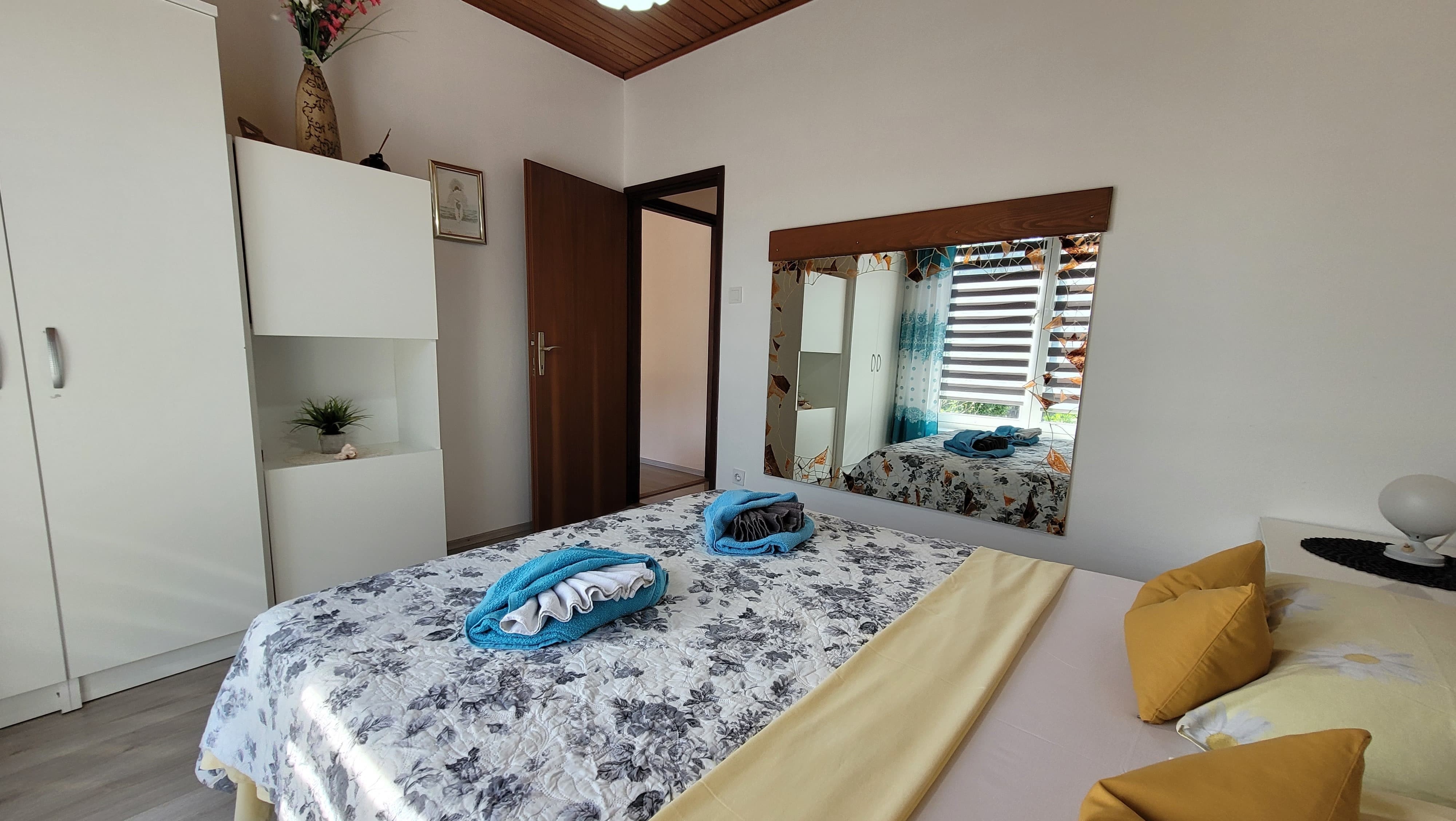 Apartament może przyjąć 3 gości. Łóżka znajdują się w sypialniach, których jest 1, oraz w pokoju dziennym, na powierzchni 35m2. Goście mają dostęp do balkonu, by korzystać z ciepłych, letnich wieczorów. Możliwość przygotowywania posiłków poprzez korzystanie ze wspólnego grilla. W kwaterze dozwolony jest pobyt zwierzęcia domowego, za dopłatą. WLICZONE W CENĘ: taksa pobytowa, sprzątanie końcowe, klimatyzacja, parking, internet. OBOWIĄZKOWE KOSZTY DODATKOWE: dopłata za krótki termin (procent dopłaty w zalezności od liczby noclegów: 30% - 1, 20% - 2, 10% - 3). NIEOBOWIĄZKOWE KOSZTY DODATKOWE: zwierzęta domowe (10,00 € za nocleg). Dostępność dodatkowych usług w rezerwowanym terminie oraz ich cenę (jeśli nie jest podana) należy sprawdzić wcześniej. Za dodatowe usługi, które nie zostały uwzględnione w kalkulacji ceny, płaci się bezpośrednio właścicielowi obiektu, pod warunkiem śe gość korzysta z tych usług.