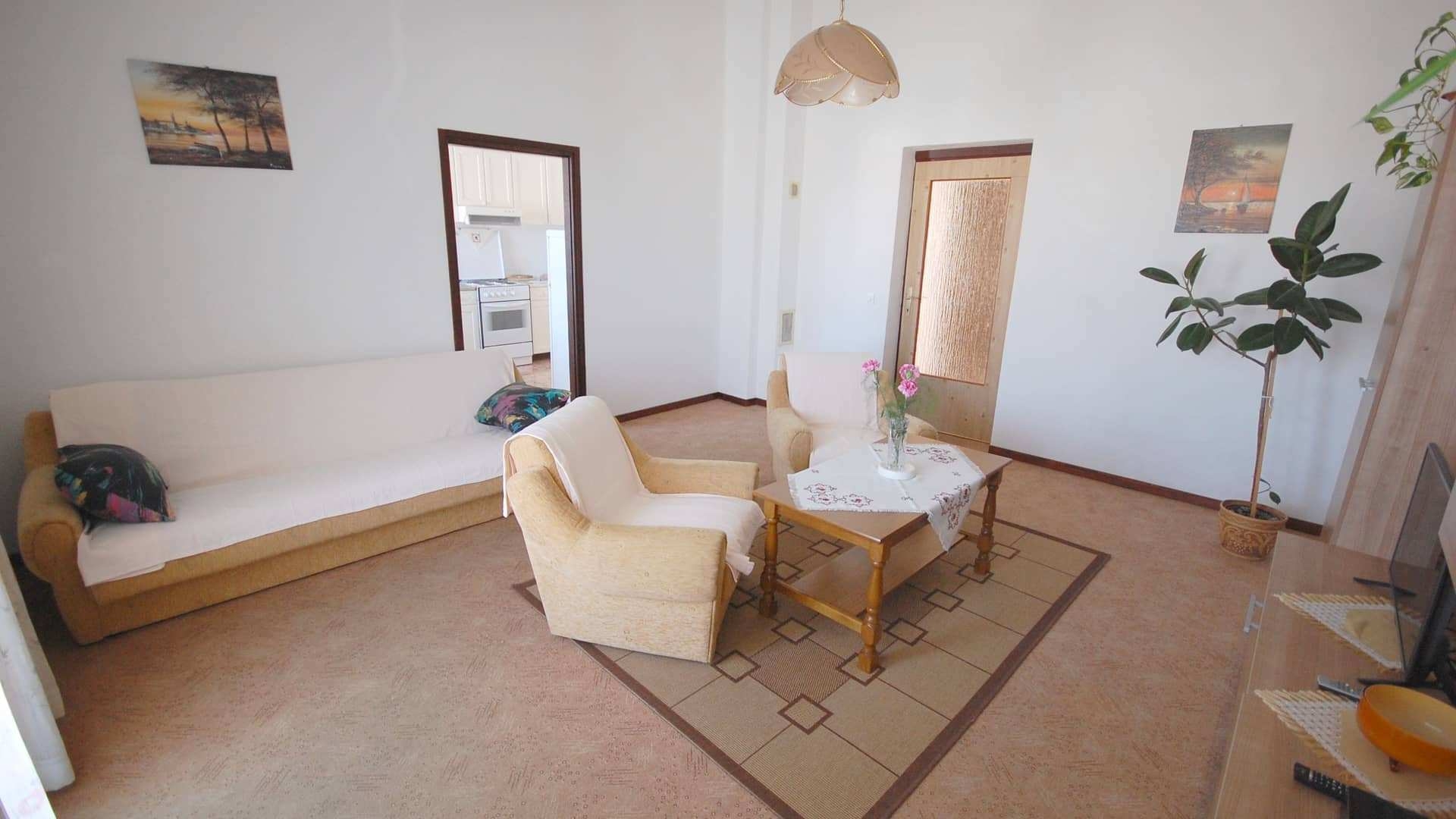 Apartament może przyjąć 6 gości. Łóżka znajdują się w sypialniach, których jest 3, na powierzchni 90m2. Goście mają dostęp do tarasu, by korzystać z ciepłych, letnich wieczorów. Z apartamentu roztacza się widok na morze. Możliwość przygotowywania posiłków poprzez korzystanie ze wspólnego grilla. WLICZONE W CENĘ: taksa pobytowa, sprzątanie końcowe, klimatyzacja, parking, internet. Dostępność dodatkowych usług w rezerwowanym terminie oraz ich cenę (jeśli nie jest podana) należy sprawdzić wcześniej. Za dodatowe usługi, które nie zostały uwzględnione w kalkulacji ceny, płaci się bezpośrednio właścicielowi obiektu, pod warunkiem śe gość korzysta z tych usług.