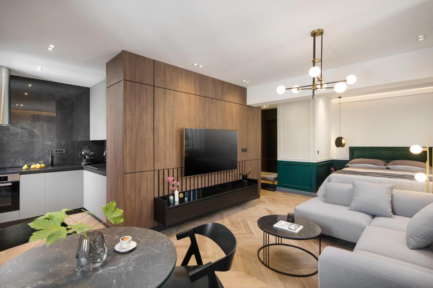 Apartament z 1 sypialnią. Meals can be prepared in the kitchen, which comes with a refrigerator, a dishwasher and a toaster. The air-conditioned apartment provides a flat-screen TV, a coffee machine, a safe deposit box, tumble dryer as well as city views. The unit offers 1 bed. Apartament - 2 osobowy. Powierzchnia pokoju ok.: 37 mkw.