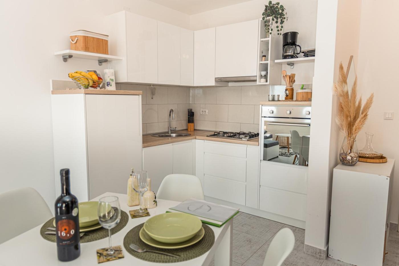 Obiekt Carpe Diem**** oferuje balkon oraz widok na ogród. Do dyspozycji Gości jest również ekspres do kawy. Odległość ważnych miejsc od obiektu: Plaża publiczna Jakišnica Beach – około 200 m. Oferta apartamentu obejmuje ogród, sprzęt do grillowania, bezpłatne Wi-Fi oraz bezpłatny prywatny parking.
