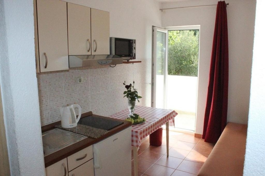 Apartament może przyjąć 4 gości. Łóżka znajdują się w sypialniach, których jest 1, oraz w pokoju dziennym, na powierzchni 32m2. Goście mają dostęp do balkonu, by korzystać z ciepłych, letnich wieczorów. Z apartamentu roztacza się widok na morze. Możliwość przygotowywania posiłków poprzez korzystanie ze wspólnego grilla. WLICZONE W CENĘ: taksa pobytowa, sprzątanie końcowe, klimatyzacja, parking, internet. NIEOBOWIĄZKOWE KOSZTY DODATKOWE: miejsce do cumowania łodzi (20,00 € za nocleg). Dostępność dodatkowych usług w rezerwowanym terminie oraz ich cenę (jeśli nie jest podana) należy sprawdzić wcześniej. Za dodatowe usługi, które nie zostały uwzględnione w kalkulacji ceny, płaci się bezpośrednio właścicielowi obiektu, pod warunkiem śe gość korzysta z tych usług. Zniżki od ceny podstawowej: bezpłatny dzień 14=13 (przy pobycie, trwającym co najmniej 14 dni, otrzymujecie jeden bezpłatny dzień na pobyt do 31.12.2026).