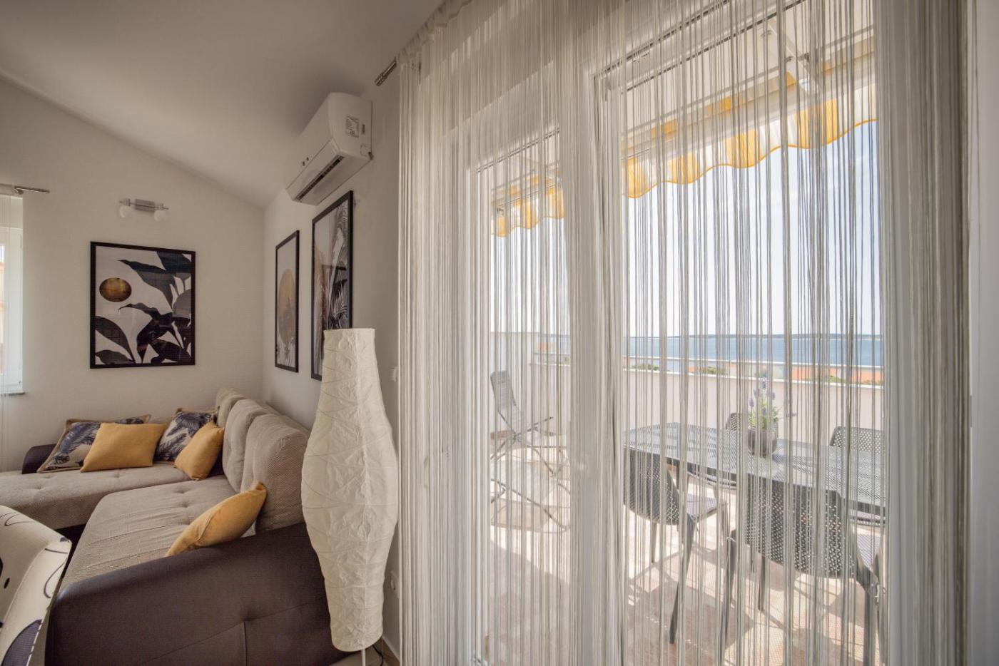 W apartamencie zapewniono taras, sypialnię (1), salon z telewizorem z płaskim ekranem, kuchnię ze standardowym wyposażeniem, takim jak lodówka i piekarnik, a także łazienkę (1) z prysznicem. Goście mogą podziwiać widok na morze. Ten 3-gwiazdkowy apartament zapewnia bezpłatne Wi-Fi we wszystkich pomieszczeniach. Na miejscu dostępny jest też bezpłatny prywatny parking.