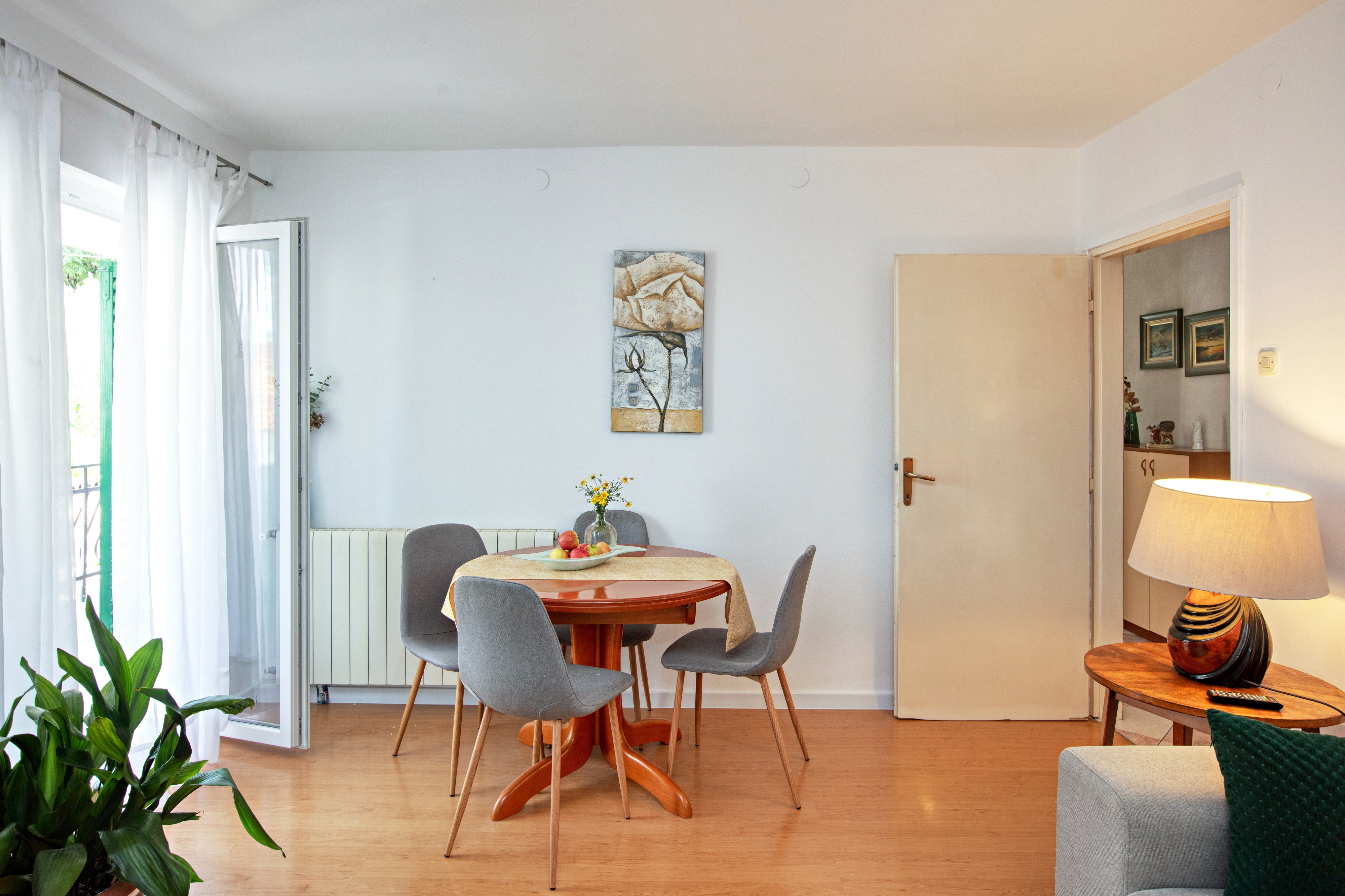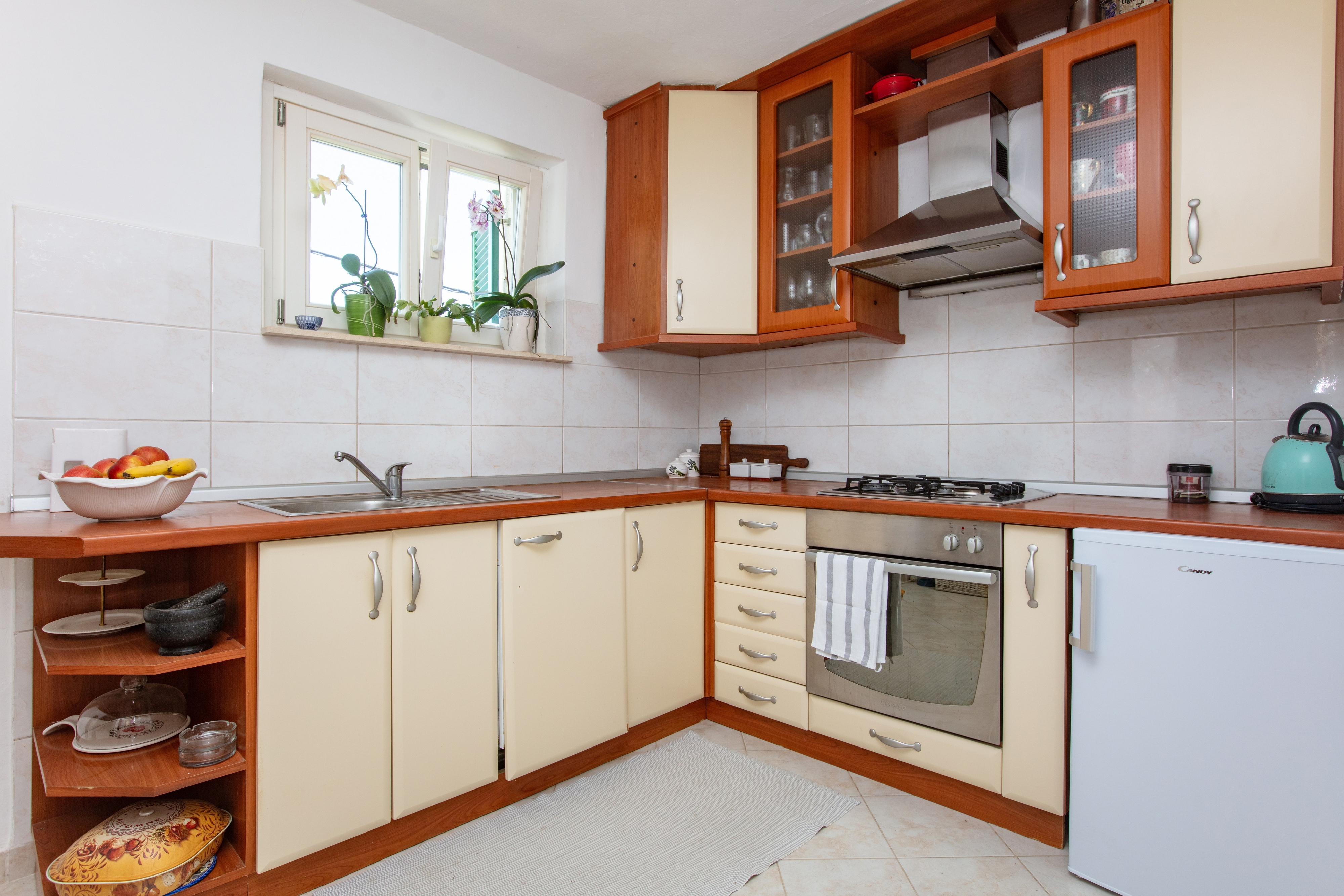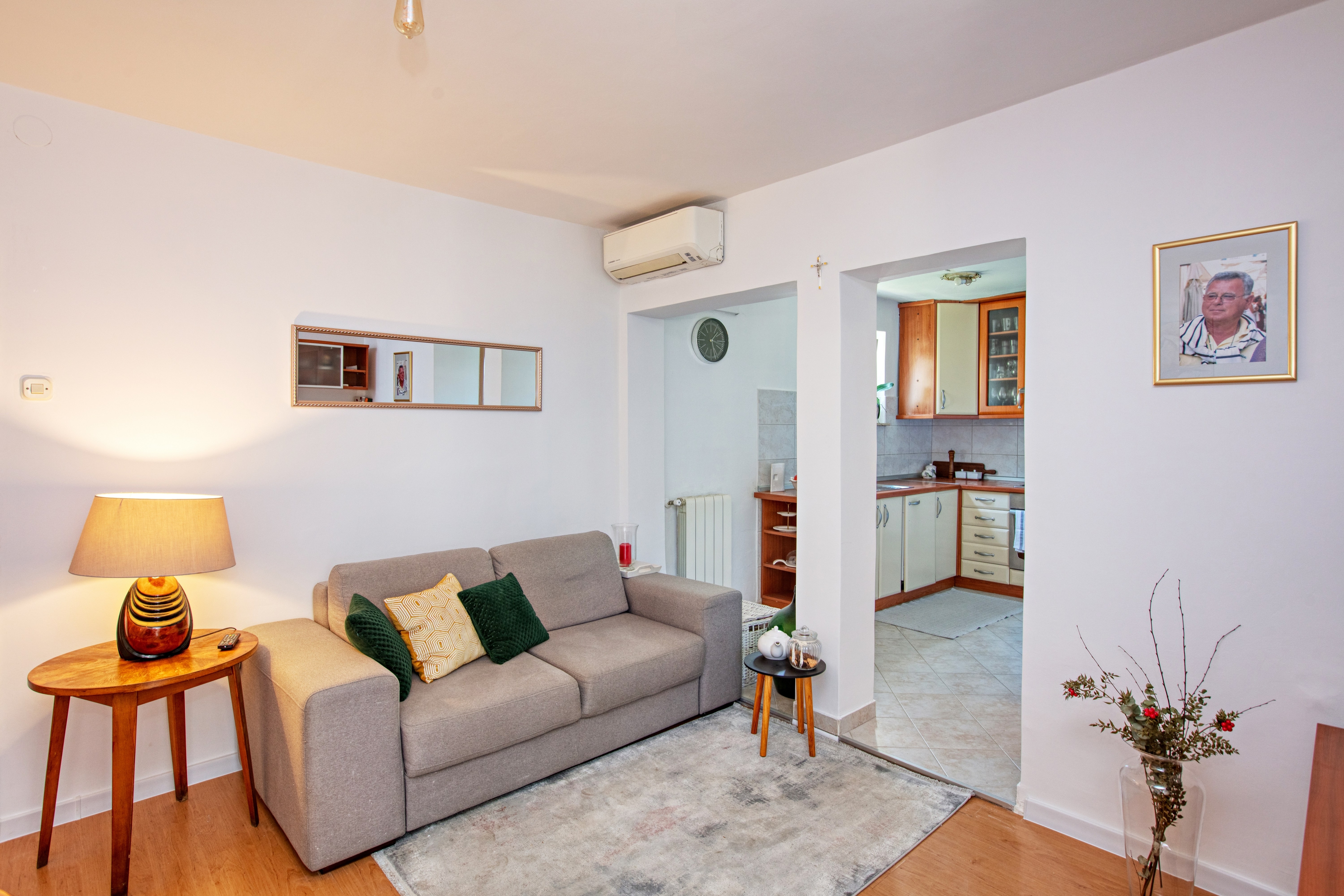 Apartament może przyjąć 4 gości. Łóżka znajdują się w sypialniach, których jest 2, na powierzchni 55m2. Goście mają dostęp do tarasu, by korzystać z ciepłych, letnich wieczorów. Możliwość przygotowywania posiłków poprzez korzystanie ze wspólnego grilla. W kwaterze dozwolony jest pobyt zwierzęcia domowego, za dopłatą. WLICZONE W CENĘ: taksa pobytowa, sprzątanie końcowe, klimatyzacja, internet, łóżeczko dziecięce, suszarka do włosów. OBOWIĄZKOWE KOSZTY DODATKOWE: dopłata za krótki termin (procent dopłaty w zalezności od liczby noclegów: 30% - 1, 20% - 2, 10% - 3). NIEOBOWIĄZKOWE KOSZTY DODATKOWE: zwierzęta domowe (5,00 € za nocleg). Dostępność dodatkowych usług w rezerwowanym terminie oraz ich cenę (jeśli nie jest podana) należy sprawdzić wcześniej. Za dodatowe usługi, które nie zostały uwzględnione w kalkulacji ceny, płaci się bezpośrednio właścicielowi obiektu, pod warunkiem śe gość korzysta z tych usług.