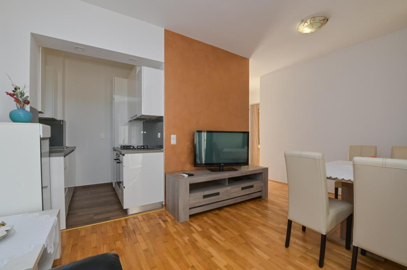 Obiekt APARTMENT CENTER Ana oferuje patio oraz widok na morze. Do dyspozycji Gości jest również czajnik. Odległość ważnych miejsc od obiektu: Plaża Lokunje – około 1,2 km. Oferta apartamentu obejmuje bezpłatny prywatny parking, bankomat oraz bezpłatne Wi-Fi.
