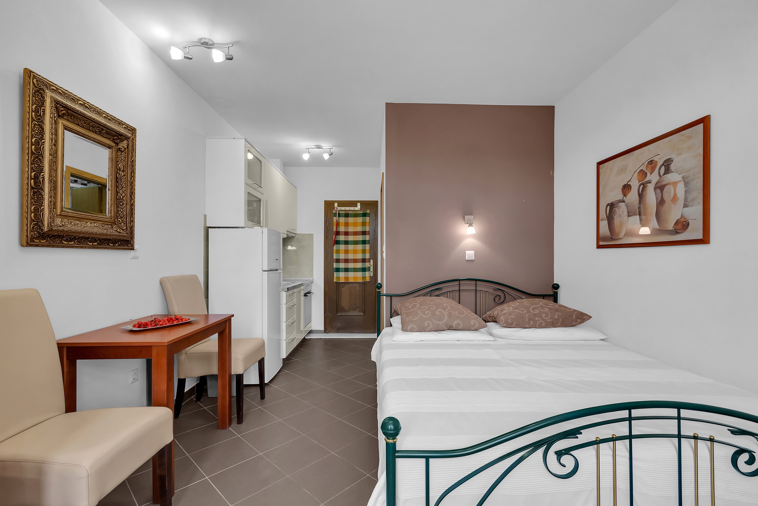 Studio może przyjąć 2 gości. Łóżka znajdują się w sypialniach, których jest 1, na powierzchni 21m2. W kwaterze dozwolony jest pobyt zwierzęcia domowego, za dopłatą. Rezerwowana kwatera nie ma balkonu ani tarasu. WLICZONE W CENĘ: taksa pobytowa, sprzątanie końcowe, klimatyzacja, parking, internet, żelazko, deska do prasowania, suszarka do włosów. OBOWIĄZKOWE KOSZTY DODATKOWE: dopłata za krótki termin (procent dopłaty w zalezności od liczby noclegów: 30% - 1, 20% - 2, 10% - 3). NIEOBOWIĄZKOWE KOSZTY DODATKOWE: zwierzęta domowe (10,00 € za nocleg). Dostępność dodatkowych usług w rezerwowanym terminie oraz ich cenę (jeśli nie jest podana) należy sprawdzić wcześniej. Za dodatowe usługi, które nie zostały uwzględnione w kalkulacji ceny, płaci się bezpośrednio właścicielowi obiektu, pod warunkiem śe gość korzysta z tych usług. Zniżki od ceny podstawowej: bezpłatny dzień 14=13 (przy pobycie, trwającym co najmniej 14 dni, otrzymujecie jeden bezpłatny dzień na pobyt do 31.12.2026).