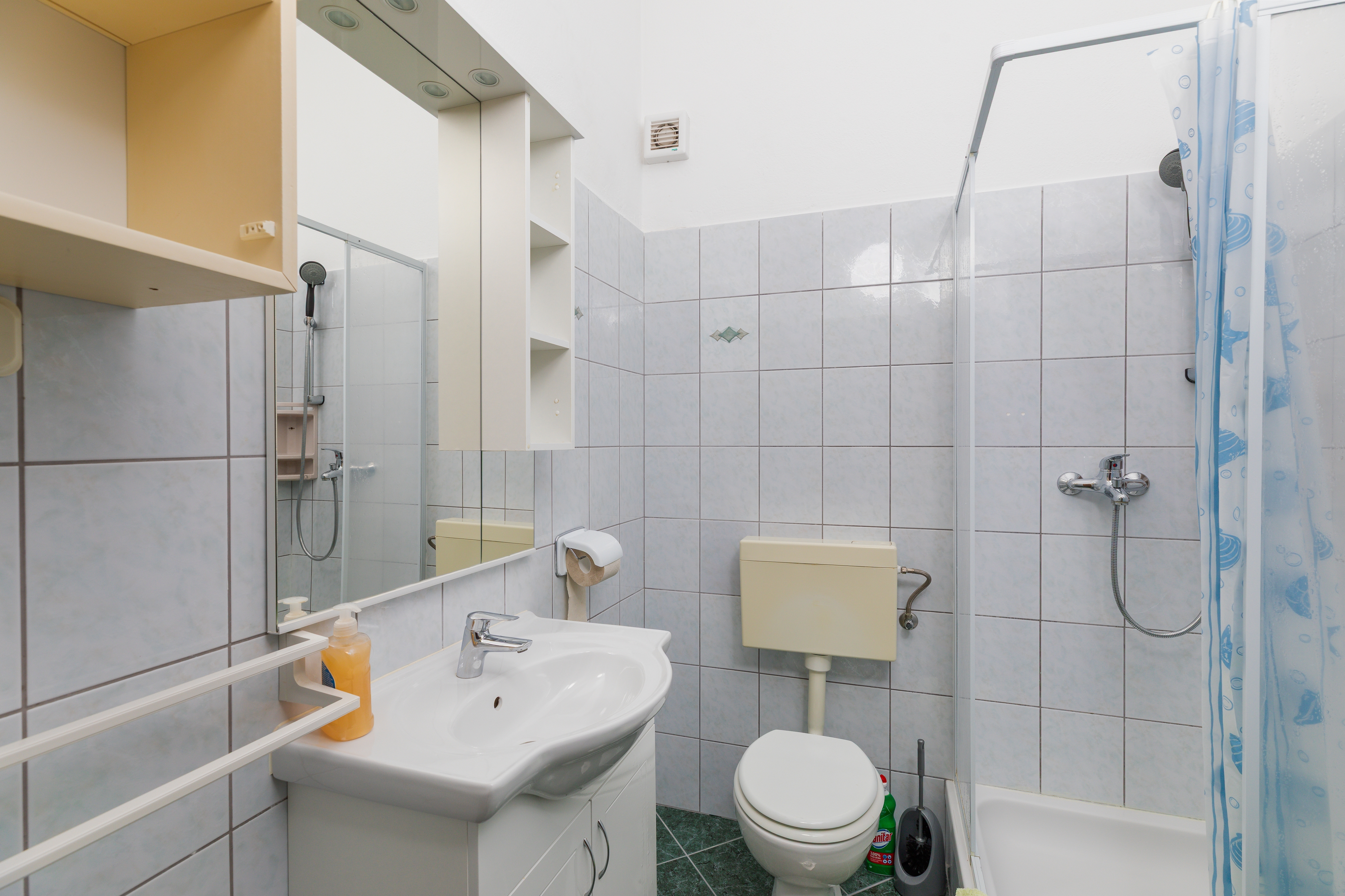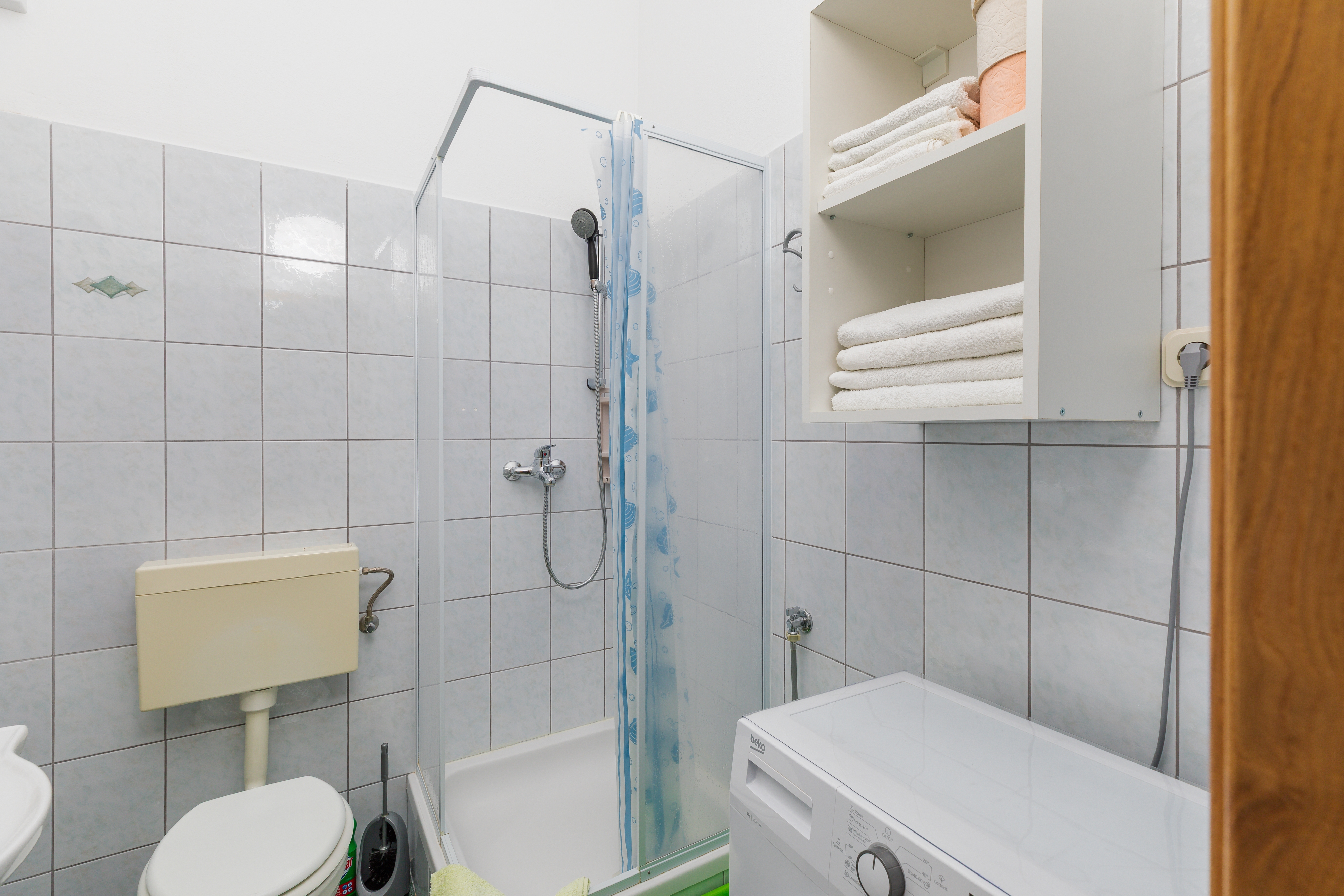 Apartament może przyjąć 5 gości. Łóżka znajdują się w sypialniach, których jest 2, oraz w jadalni, na powierzchni 38m2. Goście mają dostęp do tarasu, by korzystać z ciepłych, letnich wieczorów. Z apartamentu roztacza się widok na morze. Możliwość przygotowywania posiłków poprzez korzystanie ze wspólnego grilla. WLICZONE W CENĘ: taksa pobytowa, sprzątanie końcowe, klimatyzacja, parking, garaż, internet, żelazko, deska do prasowania, suszarka do włosów, przenośny grill. OBOWIĄZKOWE KOSZTY DODATKOWE: dopłata za krótki termin (procent dopłaty w zalezności od liczby noclegów: 30% - 1, 20% - 2, 10% - 3). NIEOBOWIĄZKOWE KOSZTY DODATKOWE: pranie bielizny (3,00 € pranie). Dostępność dodatkowych usług w rezerwowanym terminie oraz ich cenę (jeśli nie jest podana) należy sprawdzić wcześniej. Za dodatowe usługi, które nie zostały uwzględnione w kalkulacji ceny, płaci się bezpośrednio właścicielowi obiektu, pod warunkiem śe gość korzysta z tych usług.