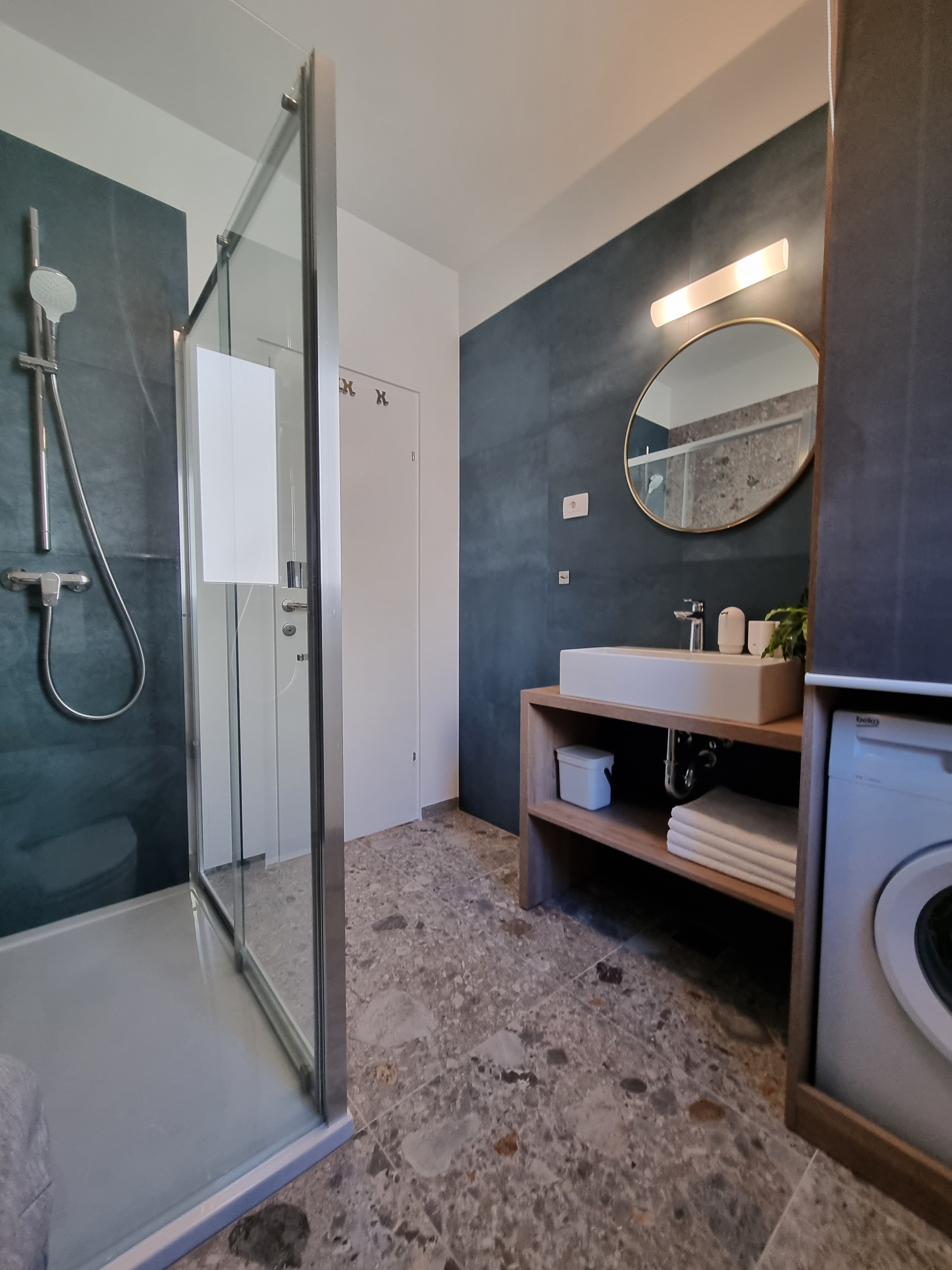 Apartament może przyjąć 7 gości. Łóżka znajdują się w sypialniach, których jest 2, na powierzchni 55m2. Goście mają dostęp do tarasu, by korzystać z ciepłych, letnich wieczorów. Z apartamentu roztacza się widok na morze. Możliwość przygotowywania posiłków poprzez korzystanie ze wspólnego grilla. WLICZONE W CENĘ: taksa pobytowa, sprzątanie końcowe, klimatyzacja, parking, internet. OBOWIĄZKOWE KOSZTY DODATKOWE: dopłata za krótki termin (procent dopłaty w zalezności od liczby noclegów: 30% - 1, 20% - 2, 10% - 3). Dostępność dodatkowych usług w rezerwowanym terminie oraz ich cenę (jeśli nie jest podana) należy sprawdzić wcześniej. Za dodatowe usługi, które nie zostały uwzględnione w kalkulacji ceny, płaci się bezpośrednio właścicielowi obiektu, pod warunkiem śe gość korzysta z tych usług.