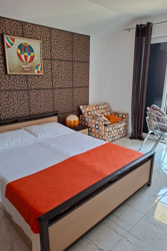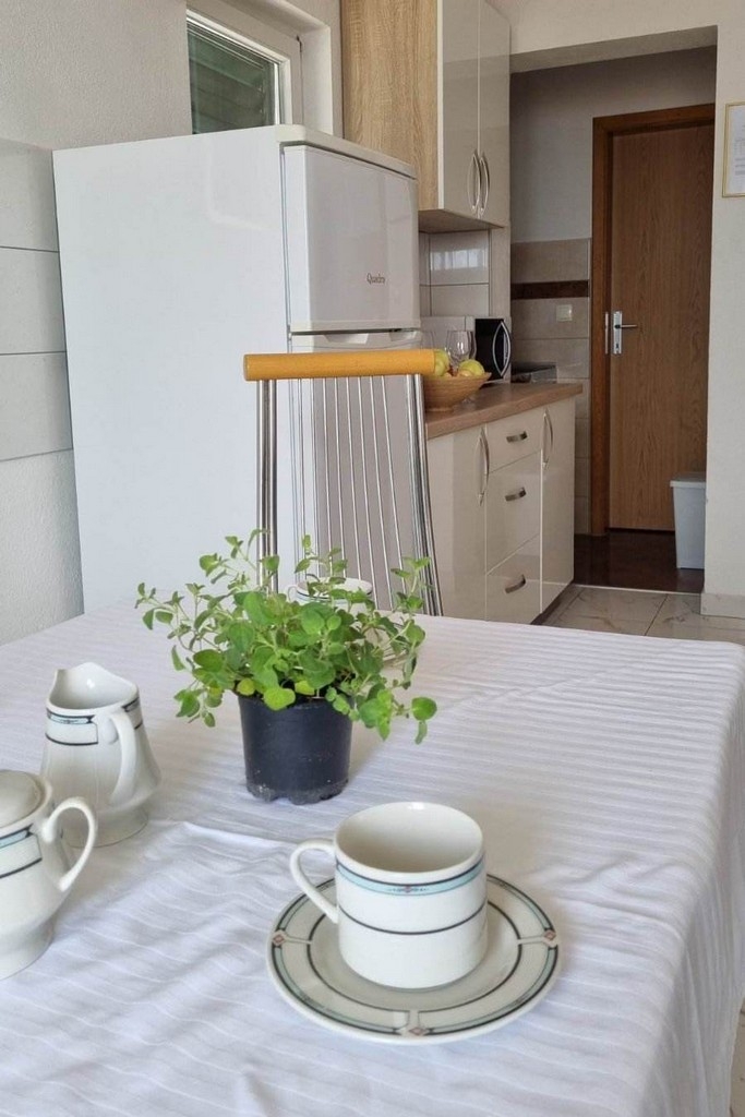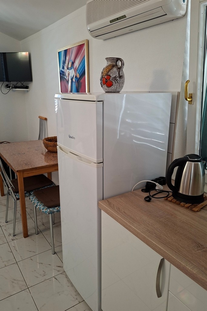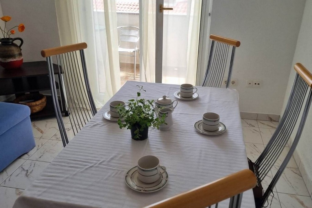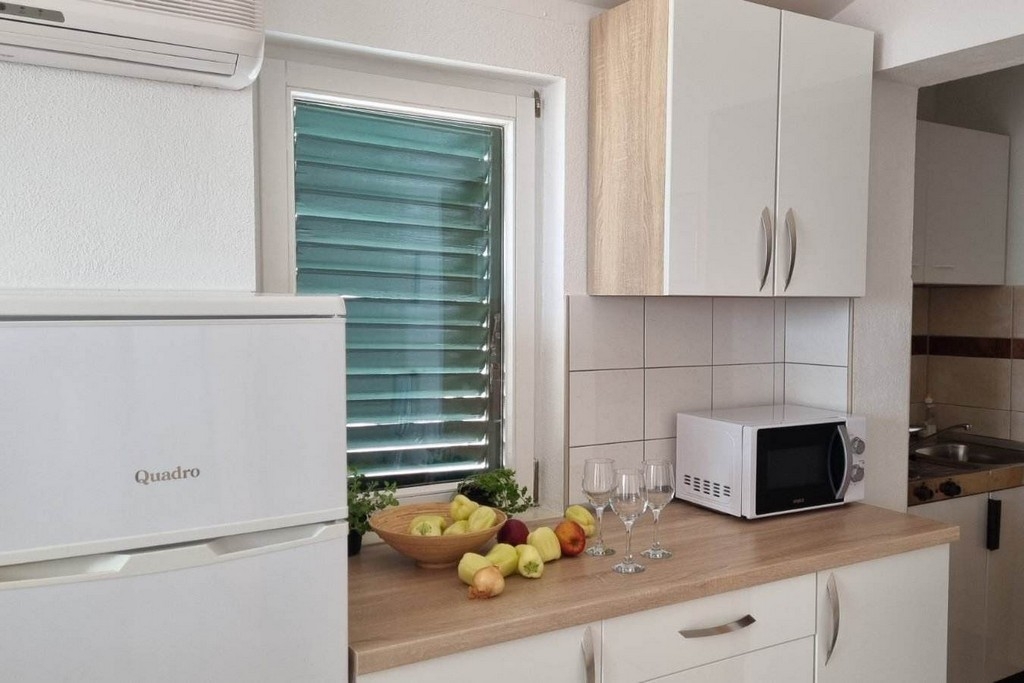 Apartament może przyjąć 4 gości. Łóżka znajdują się w sypialniach, których jest 1, oraz w pokoju dziennym, na powierzchni 34m2. Goście mają dostęp do balkonu, by korzystać z ciepłych, letnich wieczorów. Z apartamentu roztacza się widok na morze. Możliwość przygotowywania posiłków poprzez korzystanie ze wspólnego grilla. W kwaterze dozwolony jest pobyt zwierzęcia domowego, za dopłatą. WLICZONE W CENĘ: taksa pobytowa, sprzątanie końcowe, klimatyzacja, parking, internet, pranie bielizny, łóżeczko dziecięce, żelazko, deska do prasowania, suszarka do włosów. OBOWIĄZKOWE KOSZTY DODATKOWE: dopłata za krótki termin (procent dopłaty w zalezności od liczby noclegów: 30% - 1, 20% - 2, 10% - 3). NIEOBOWIĄZKOWE KOSZTY DODATKOWE: zwierzęta domowe (10,00 € za nocleg), dostawka (15,00 € za nocleg). Dostępność dodatkowych usług w rezerwowanym terminie oraz ich cenę (jeśli nie jest podana) należy sprawdzić wcześniej. Za dodatowe usługi, które nie zostały uwzględnione w kalkulacji ceny, płaci się bezpośrednio właścicielowi obiektu, pod warunkiem śe gość korzysta z tych usług.