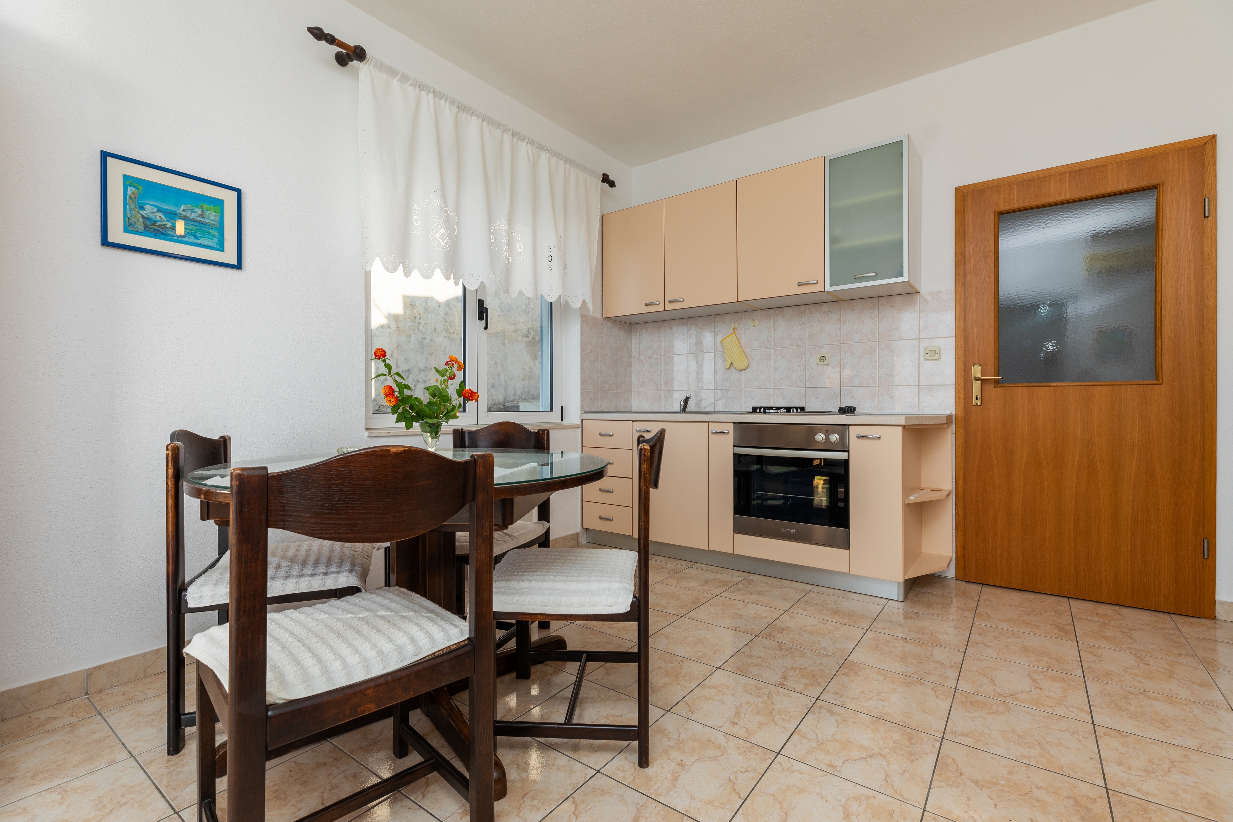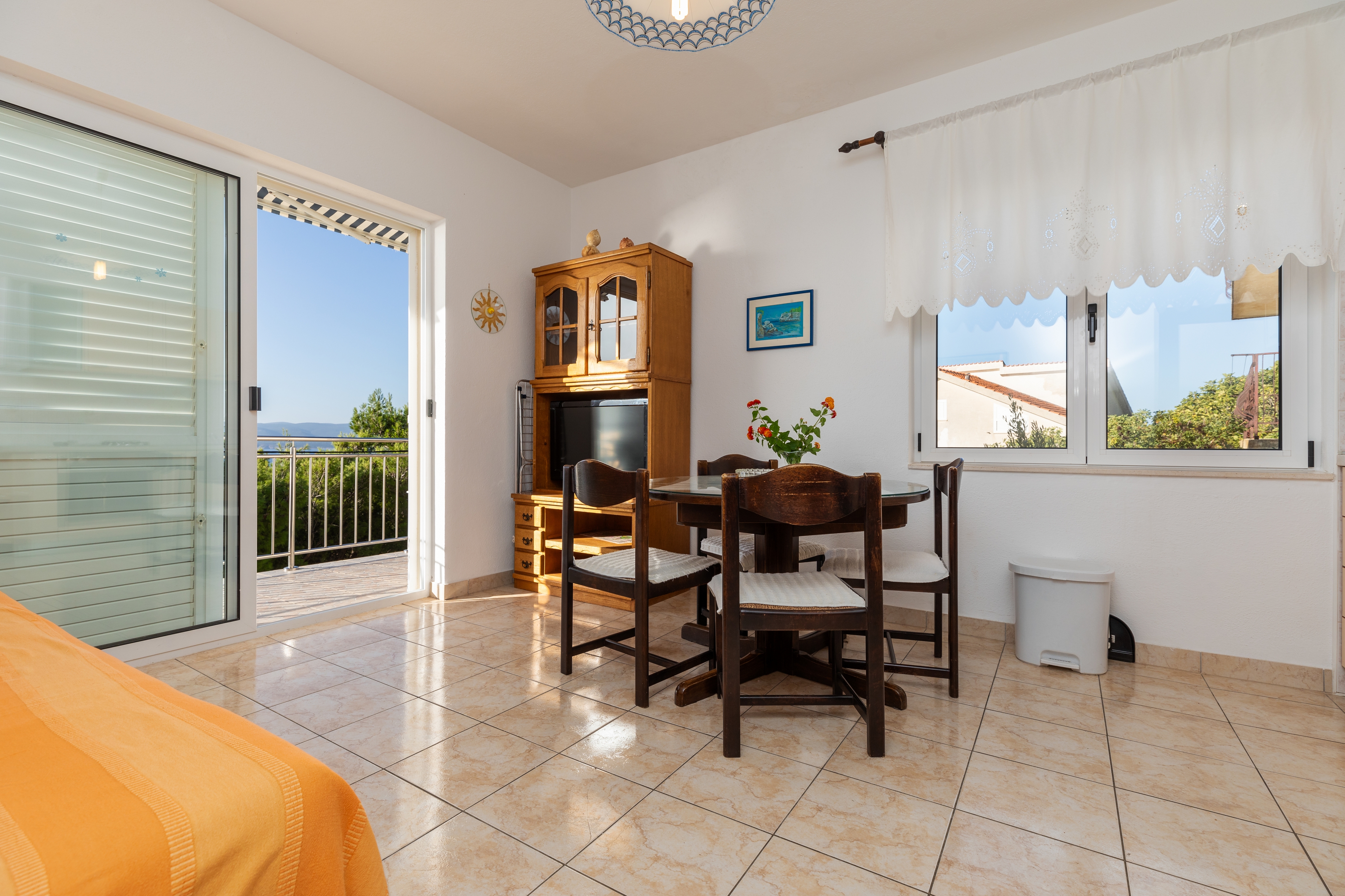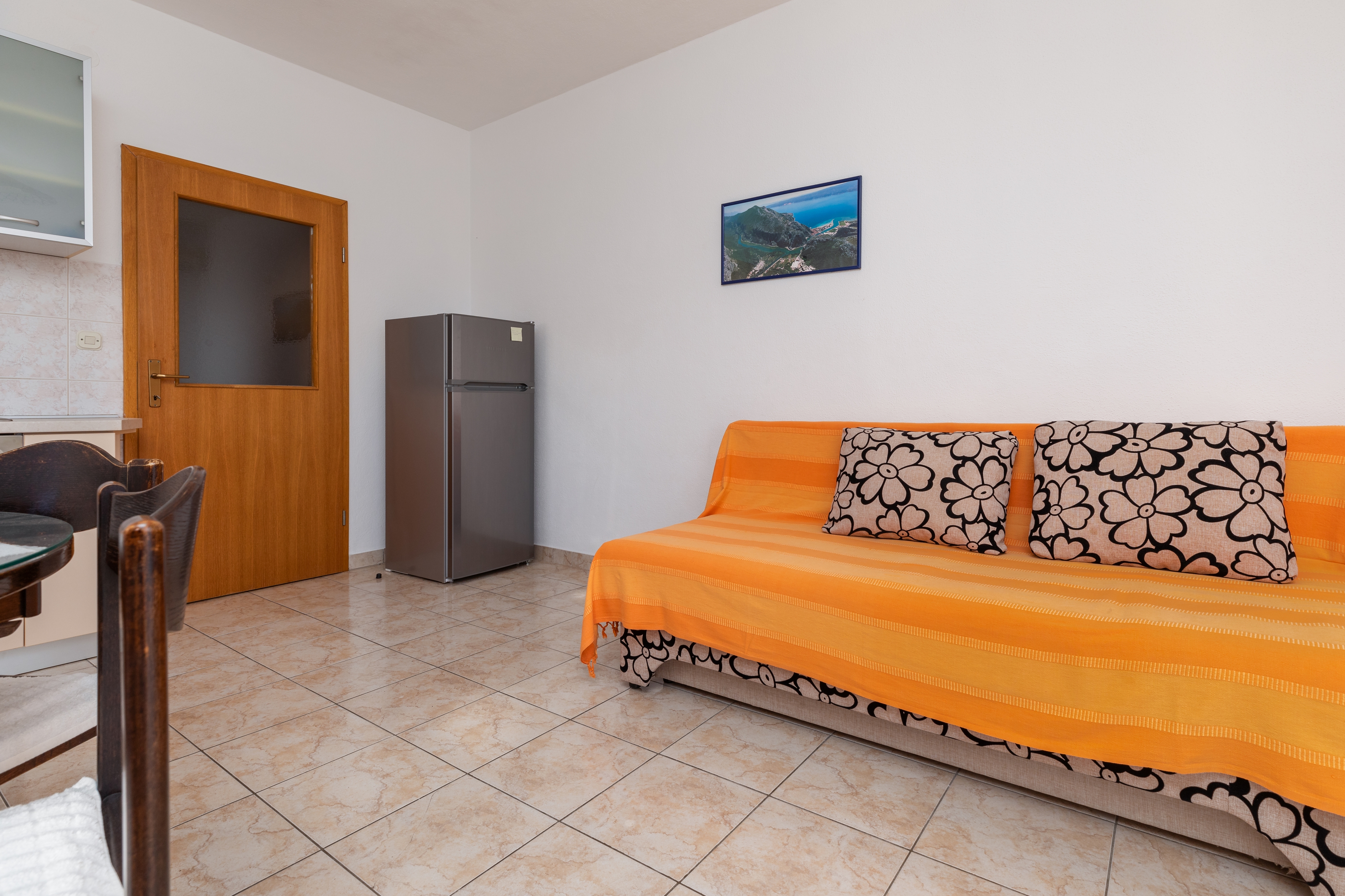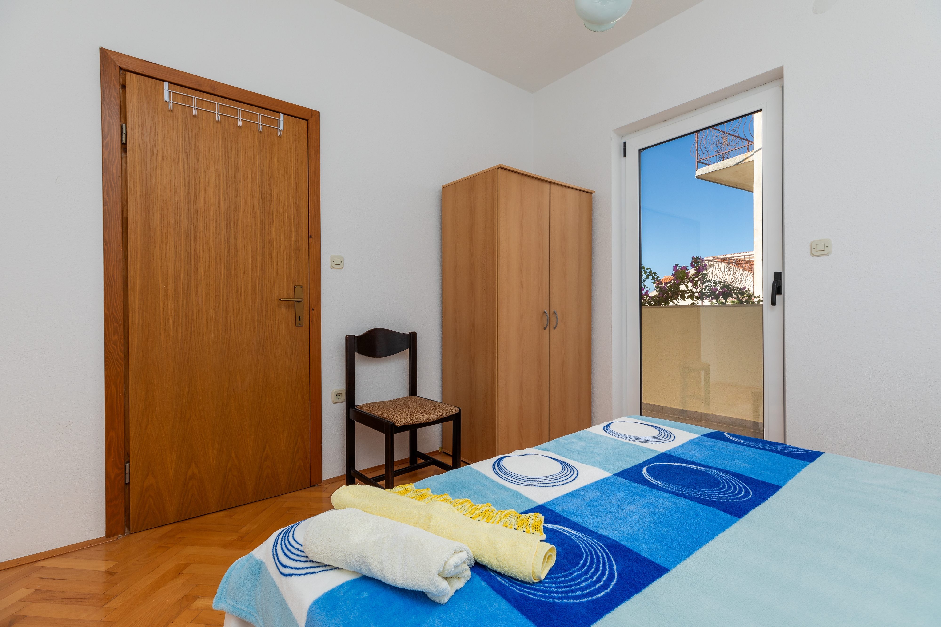 Apartament może przyjąć 4 gości. Łóżka znajdują się w sypialniach, których jest 1, oraz w pokoju dziennym, na powierzchni 32m2. Goście mają dostęp do balkonu, by korzystać z ciepłych, letnich wieczorów. Z apartamentu roztacza się widok na morze. Możliwość przygotowywania posiłków poprzez korzystanie ze wspólnego grilla. WLICZONE W CENĘ: taksa pobytowa, sprzątanie końcowe, klimatyzacja, parking, internet, pranie bielizny, żelazko, deska do prasowania, suszarka do włosów, przenośny grill, parasol. OBOWIĄZKOWE KOSZTY DODATKOWE: dopłata za krótki termin (procent dopłaty w zalezności od liczby noclegów: 30% - 1, 20% - 2, 10% - 3). Dostępność dodatkowych usług w rezerwowanym terminie oraz ich cenę (jeśli nie jest podana) należy sprawdzić wcześniej. Za dodatowe usługi, które nie zostały uwzględnione w kalkulacji ceny, płaci się bezpośrednio właścicielowi obiektu, pod warunkiem śe gość korzysta z tych usług. Zniżki od ceny podstawowej: bezpłatny dzień 14=13 (przy pobycie, trwającym co najmniej 14 dni, otrzymujecie jeden bezpłatny dzień na pobyt do 31.12.2026).