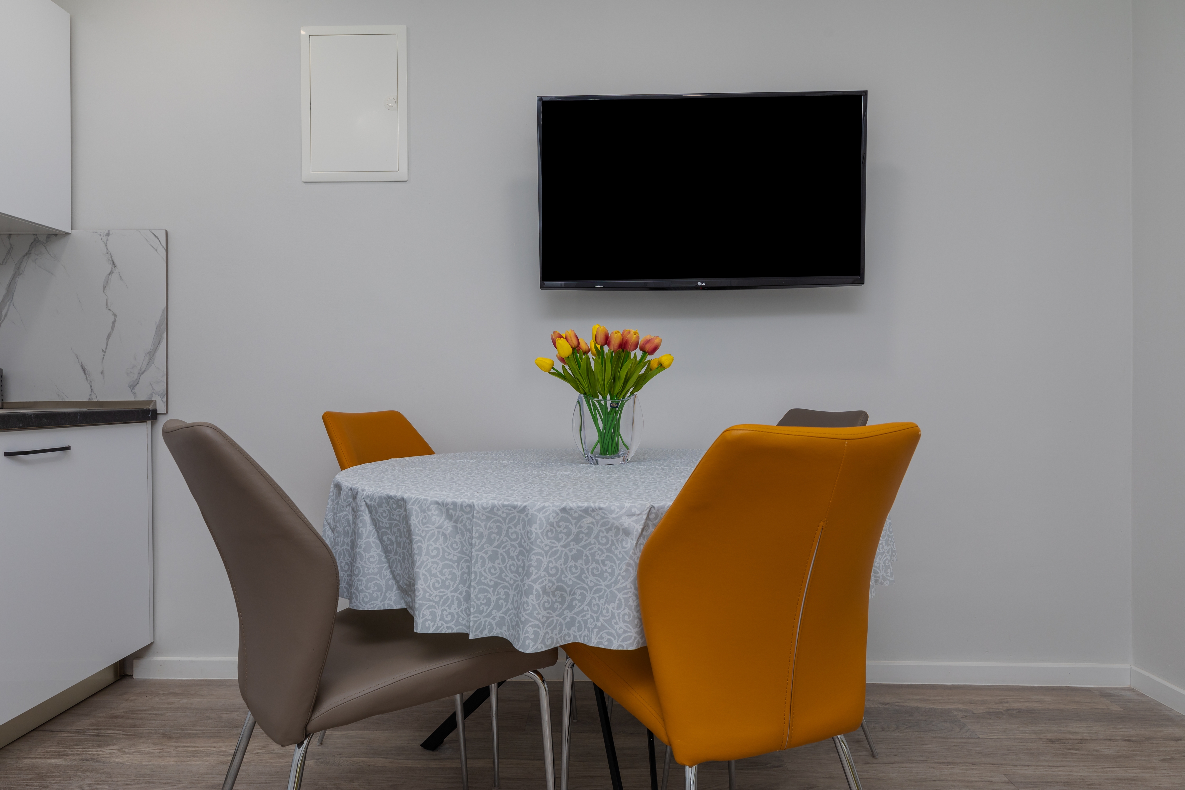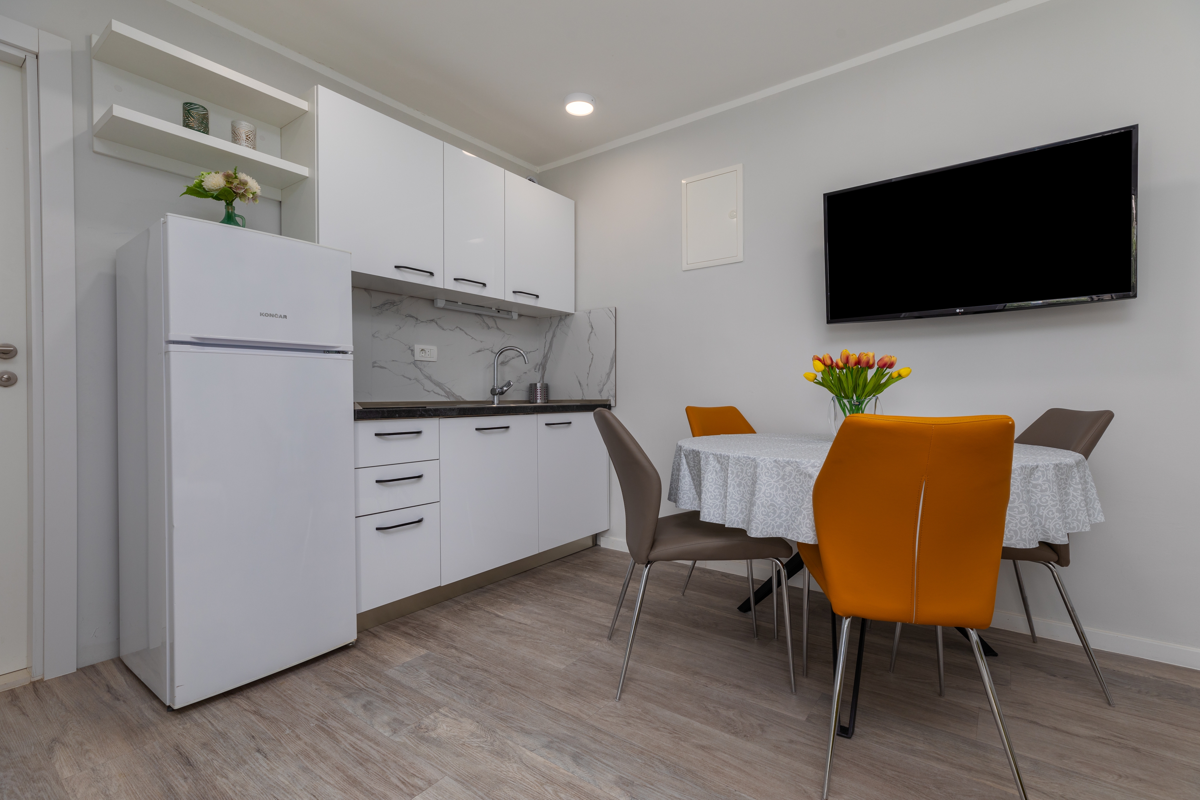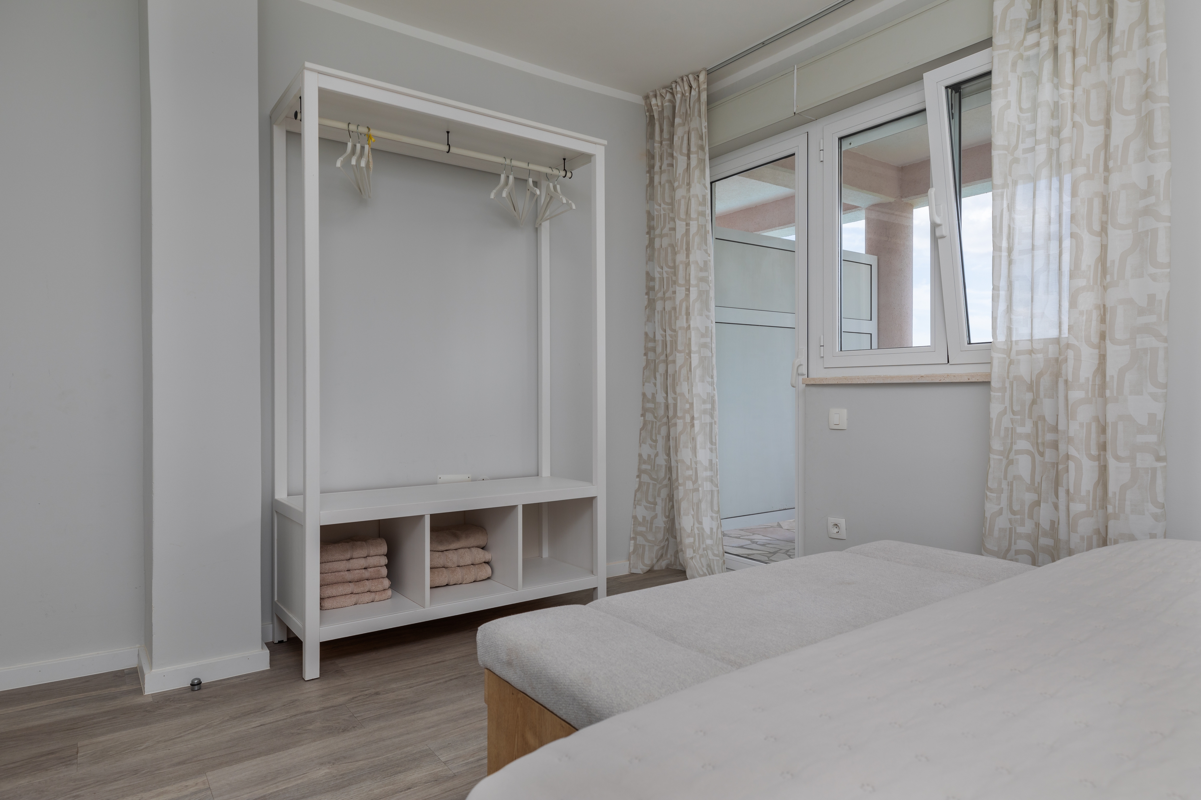 Apartament może przyjąć 5 gości. Łóżka znajdują się w sypialniach, których jest 2, oraz w pokoju dziennym, na powierzchni 38m2. Goście mają dostęp do tarasu, by korzystać z ciepłych, letnich wieczorów. Z apartamentu roztacza się widok na morze. Możliwość przygotowywania posiłków poprzez korzystanie ze wspólnego grilla. W trakcie swojego pobytu goście mogą korzystać ze wspólnego basenu. WLICZONE W CENĘ: taksa pobytowa, sprzątanie końcowe, klimatyzacja, basen, parking, internet, łóżeczko dziecięce, żelazko, deska do prasowania, suszarka do włosów. OBOWIĄZKOWE KOSZTY DODATKOWE: dopłata za krótki termin (procent dopłaty w zalezności od liczby noclegów: 30% - 1, 20% - 2, 10% - 3). Dostępność dodatkowych usług w rezerwowanym terminie oraz ich cenę (jeśli nie jest podana) należy sprawdzić wcześniej. Za dodatowe usługi, które nie zostały uwzględnione w kalkulacji ceny, płaci się bezpośrednio właścicielowi obiektu, pod warunkiem śe gość korzysta z tych usług.