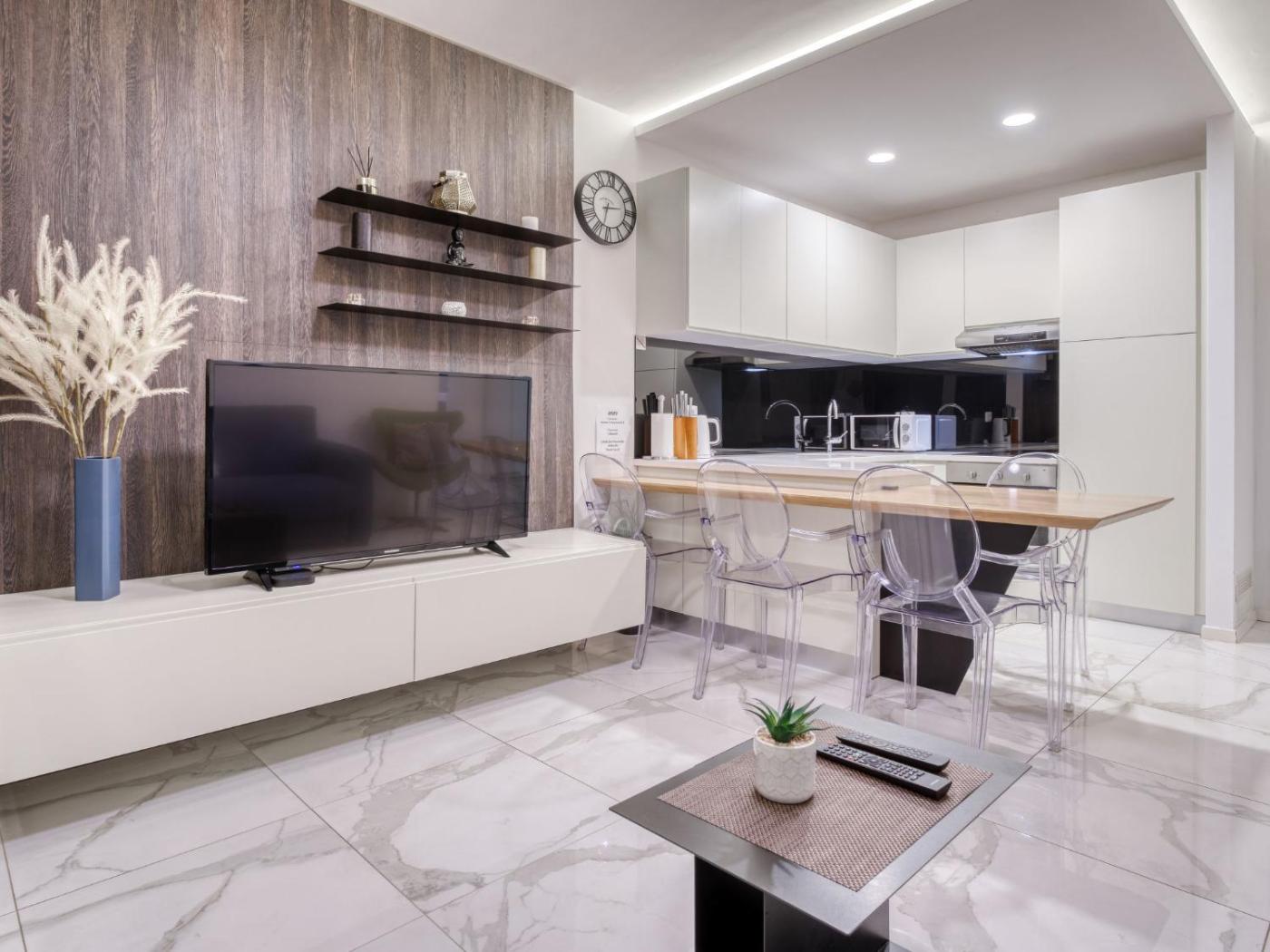 W apartamencie z 1 sypialnią zapewniono salon z telewizorem z dostępem do kanałów satelitarnych, kuchnię z pełnym wyposażeniem, w tym lodówką i zmywarką, a także łazienkę (1) z prysznicem.