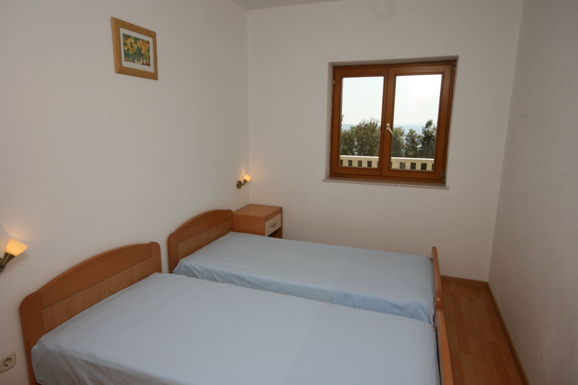 Apartament może przyjąć 4 gości. Łóżka znajdują się w sypialniach, których jest 2, na powierzchni 45m2. Goście mają dostęp do tarasu, by korzystać z ciepłych, letnich wieczorów. Z apartamentu roztacza się widok na morze. Możliwość przygotowywania posiłków poprzez korzystanie ze wspólnego grilla. WLICZONE W CENĘ: taksa pobytowa, sprzątanie końcowe, klimatyzacja, parking, internet, przenośny grill. OBOWIĄZKOWE KOSZTY DODATKOWE: dopłata za krótki termin (procent dopłaty w zalezności od liczby noclegów: 30% - 1, 20% - 2, 10% - 3). Dostępność dodatkowych usług w rezerwowanym terminie oraz ich cenę (jeśli nie jest podana) należy sprawdzić wcześniej. Za dodatowe usługi, które nie zostały uwzględnione w kalkulacji ceny, płaci się bezpośrednio właścicielowi obiektu, pod warunkiem śe gość korzysta z tych usług.