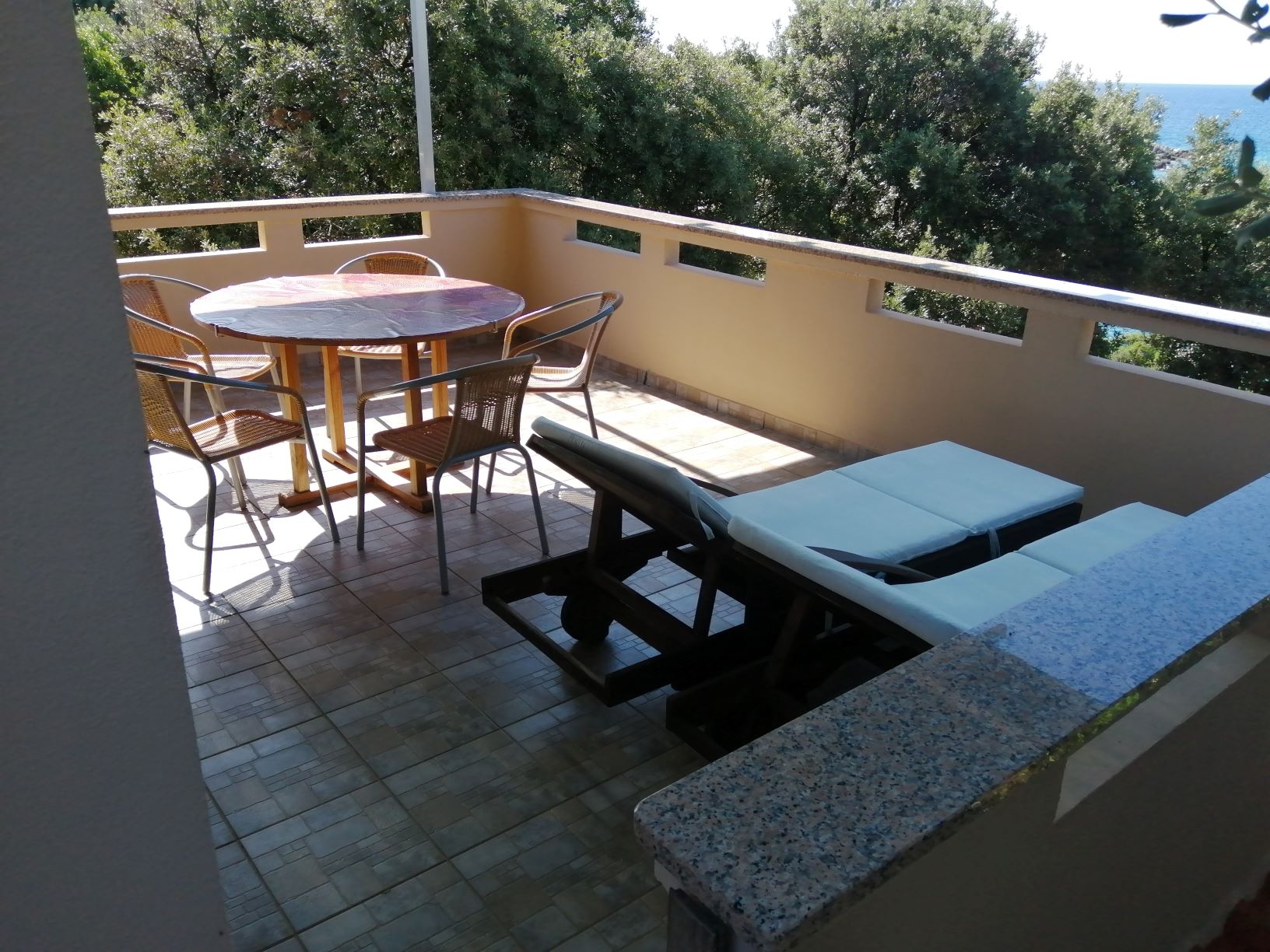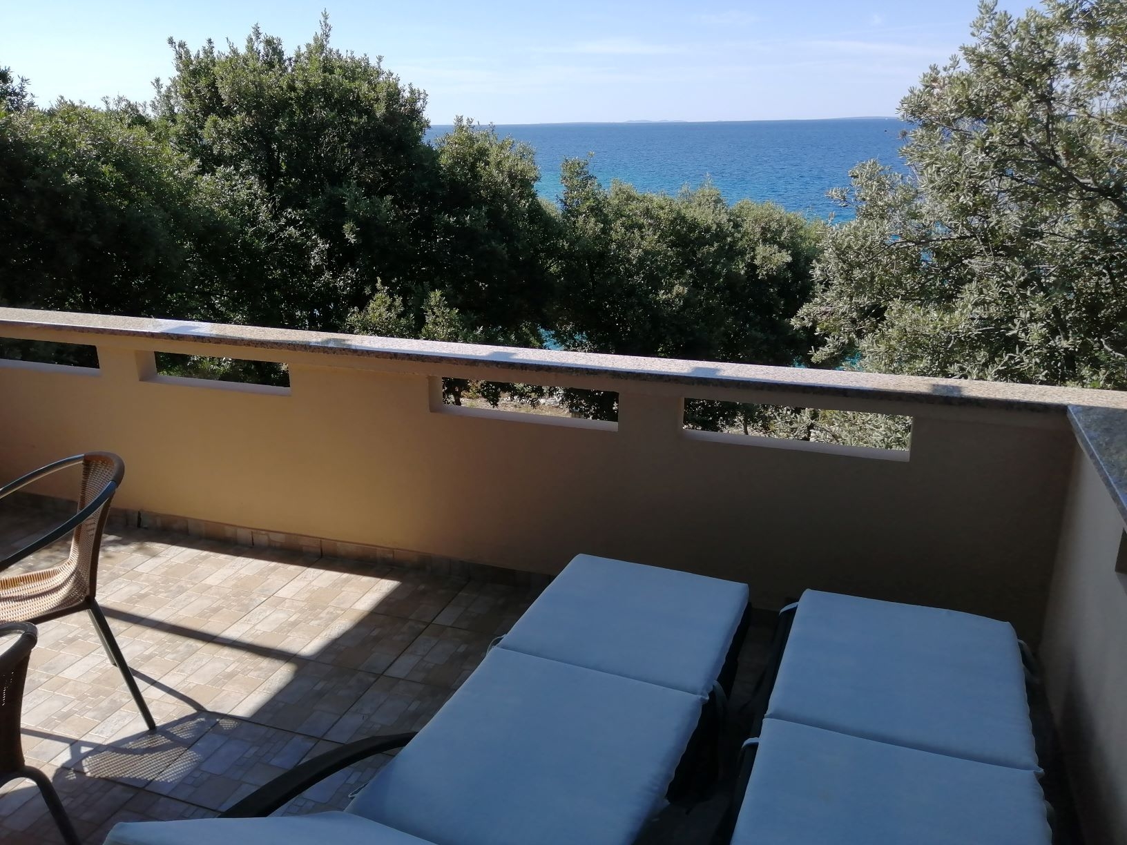 Apartament może przyjąć 4 gości. Łóżka znajdują się w sypialniach, których jest 2, na powierzchni 43m2. Goście mają dostęp do tarasu, by korzystać z ciepłych, letnich wieczorów. Z apartamentu roztacza się widok na morze. Możliwość przygotowywania posiłków poprzez korzystanie ze wspólnego grilla. Do kwatery można przyjechać ze zwierzęciem domowym, a usługa jest wliczona w cenę wynajęcia kwatery. WLICZONE W CENĘ: taksa pobytowa, sprzątanie końcowe, klimatyzacja, parking, internet, zwierzęta domowe, żelazko, suszarka do włosów, przenośny grill. NIEOBOWIĄZKOWE KOSZTY DODATKOWE: łódź (250,00 € za nocleg). Dostępność dodatkowych usług w rezerwowanym terminie oraz ich cenę (jeśli nie jest podana) należy sprawdzić wcześniej. Za dodatowe usługi, które nie zostały uwzględnione w kalkulacji ceny, płaci się bezpośrednio właścicielowi obiektu, pod warunkiem śe gość korzysta z tych usług.