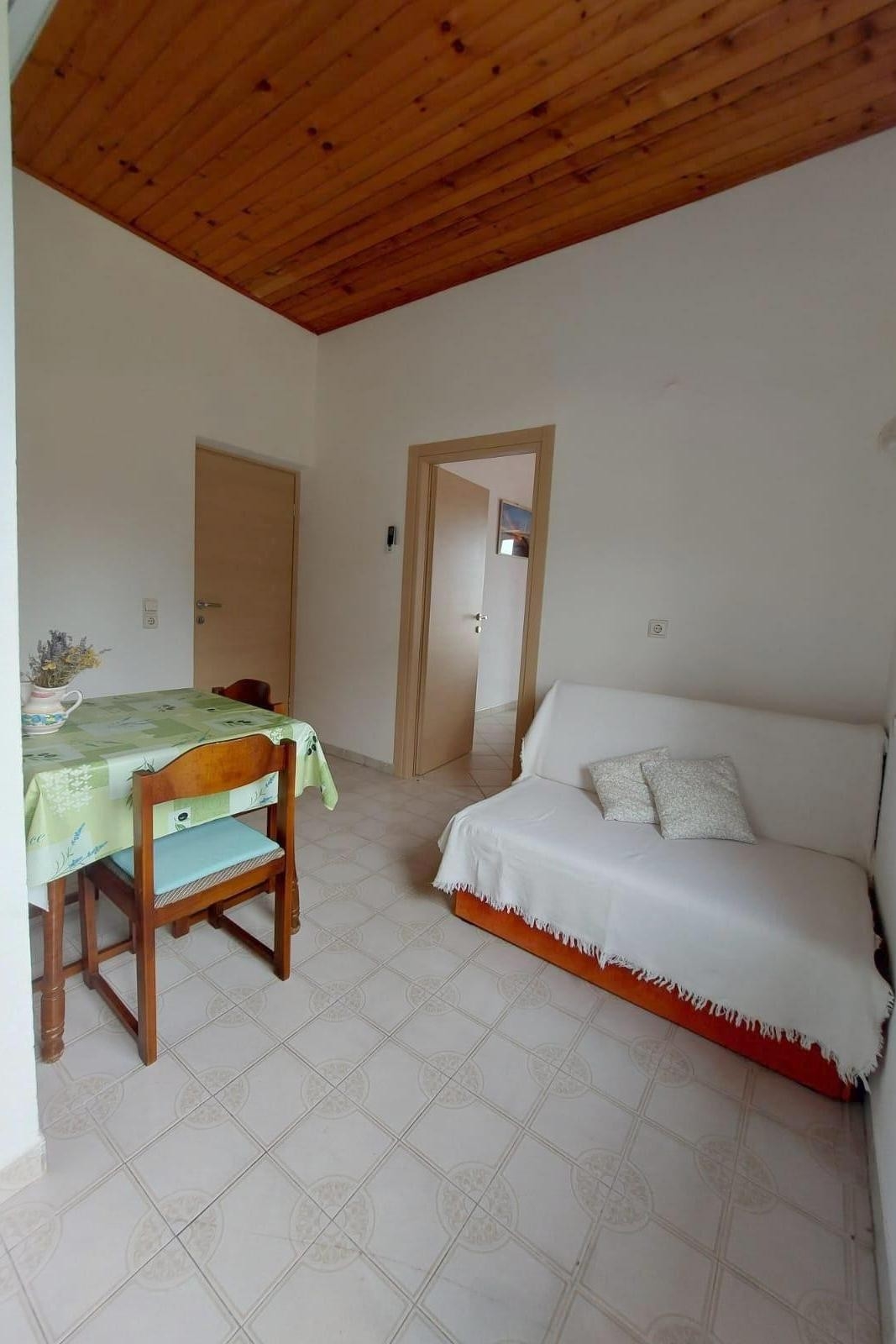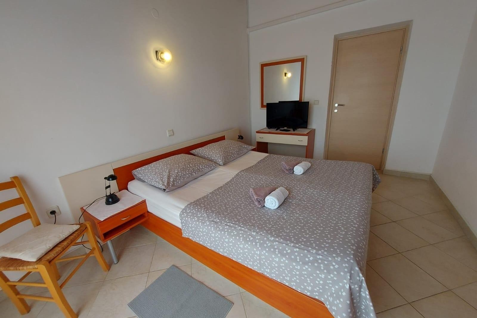Apartament może przyjąć 3 gości. Łóżka znajdują się w sypialniach, których jest 1, oraz w jadalni, na powierzchni 25m2. Goście mają dostęp do balkonu, by korzystać z ciepłych, letnich wieczorów. Z apartamentu roztacza się widok na morze. Możliwość przygotowywania posiłków poprzez korzystanie ze wspólnego grilla. WLICZONE W CENĘ: taksa pobytowa, sprzątanie końcowe, klimatyzacja, parking, internet, leżaki. OBOWIĄZKOWE KOSZTY DODATKOWE: dopłata za krótki termin (procent dopłaty w zalezności od liczby noclegów: 30% - 1, 20% - 2, 10% - 3). Dostępność dodatkowych usług w rezerwowanym terminie oraz ich cenę (jeśli nie jest podana) należy sprawdzić wcześniej. Za dodatowe usługi, które nie zostały uwzględnione w kalkulacji ceny, płaci się bezpośrednio właścicielowi obiektu, pod warunkiem śe gość korzysta z tych usług.