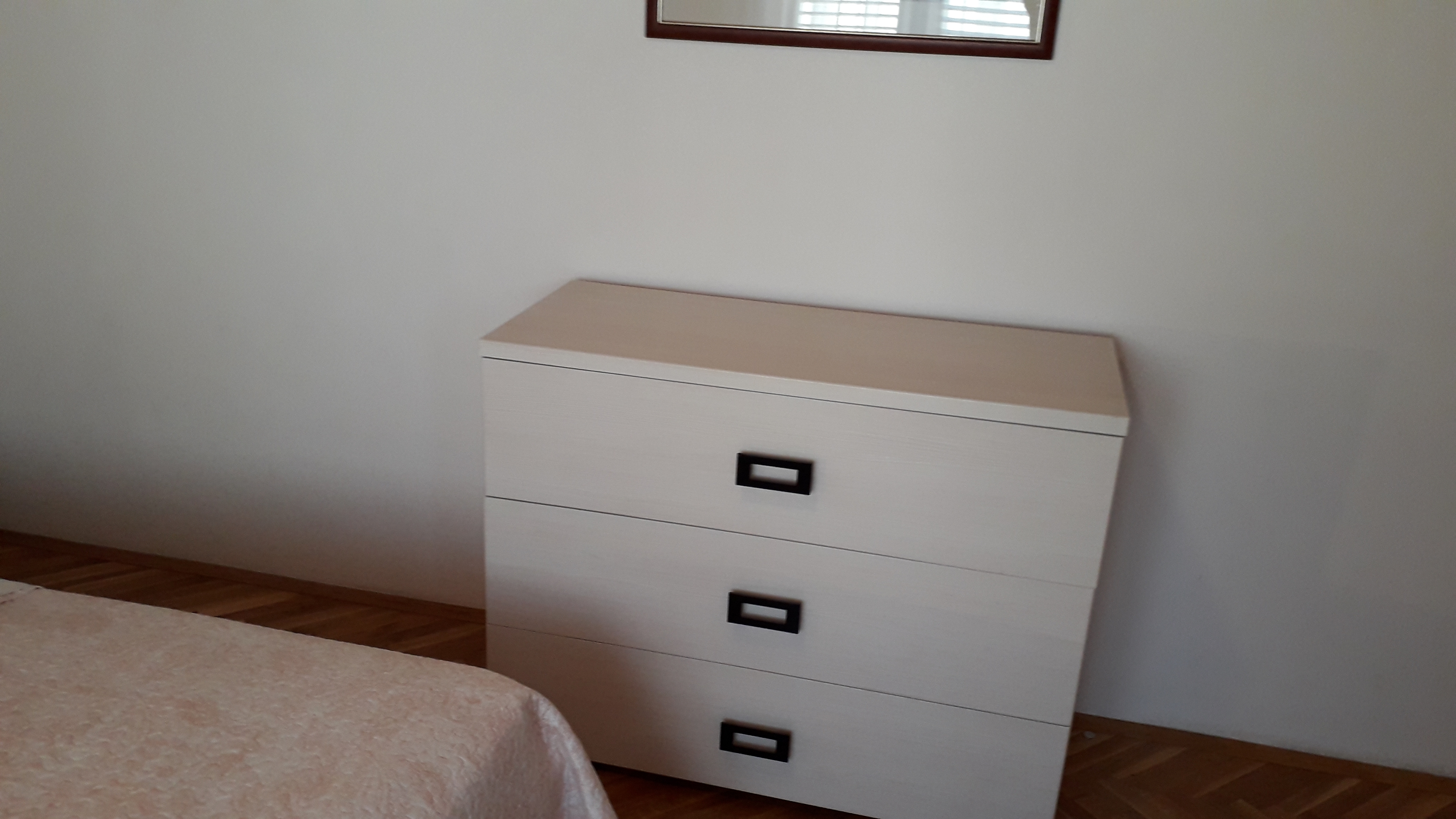 Apartament może przyjąć 4 gości. Łóżka znajdują się w sypialniach, których jest 2, na powierzchni 45m2. Goście mają dostęp do tarasu, by korzystać z ciepłych, letnich wieczorów. Z apartamentu roztacza się widok na morze. Możliwość przygotowywania posiłków poprzez korzystanie ze wspólnego grilla. WLICZONE W CENĘ: taksa pobytowa, sprzątanie końcowe, klimatyzacja, parking, internet, miejsce do cumowania łodzi. OBOWIĄZKOWE KOSZTY DODATKOWE: dopłata za krótki termin (procent dopłaty w zalezności od liczby noclegów: 30% - 1, 20% - 2, 10% - 3). Dostępność dodatkowych usług w rezerwowanym terminie oraz ich cenę (jeśli nie jest podana) należy sprawdzić wcześniej. Za dodatowe usługi, które nie zostały uwzględnione w kalkulacji ceny, płaci się bezpośrednio właścicielowi obiektu, pod warunkiem śe gość korzysta z tych usług. Zniżki od ceny podstawowej: bezpłatny dzień 14=13 (przy pobycie, trwającym co najmniej 14 dni, otrzymujecie jeden bezpłatny dzień na pobyt do 31.12.2026).
