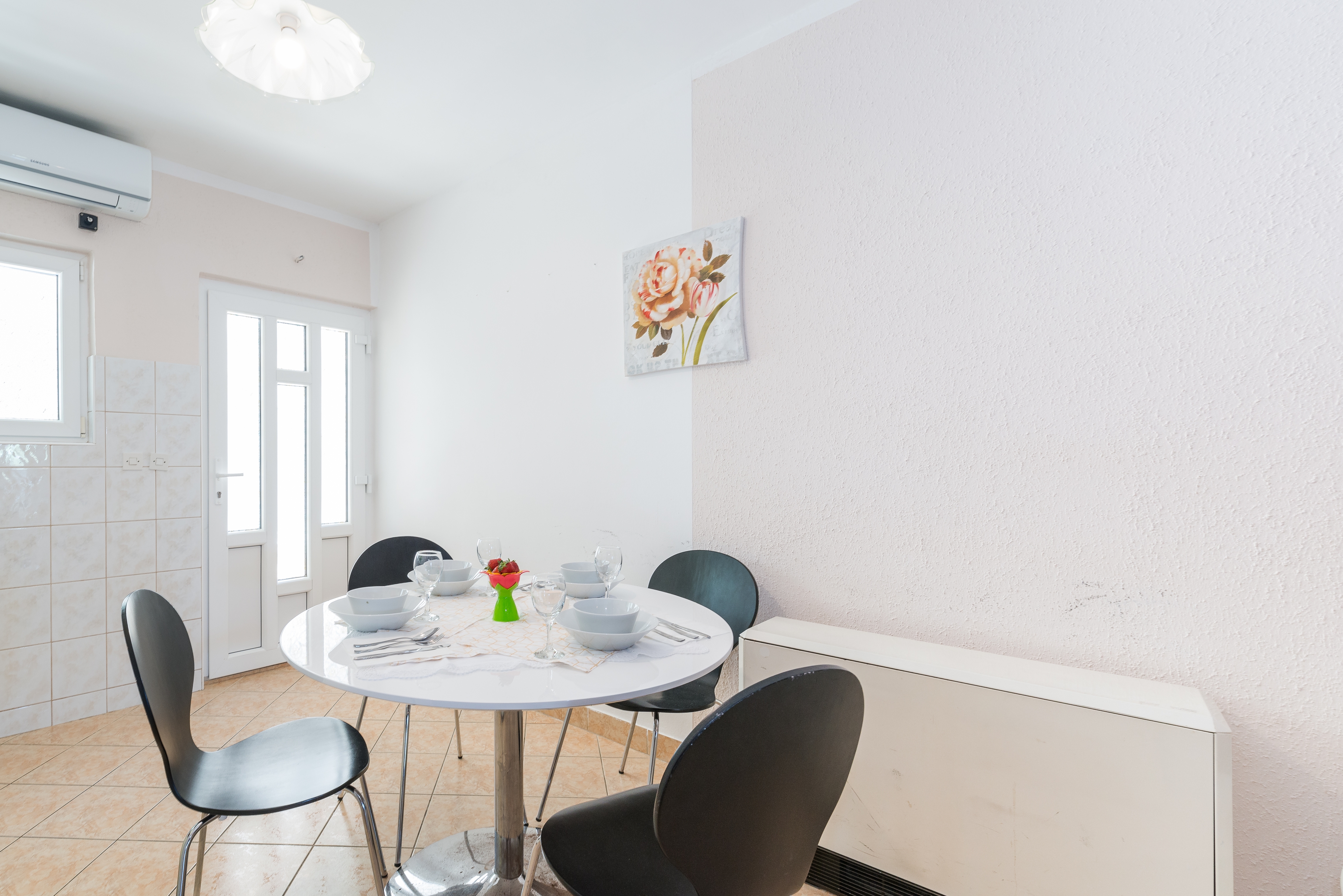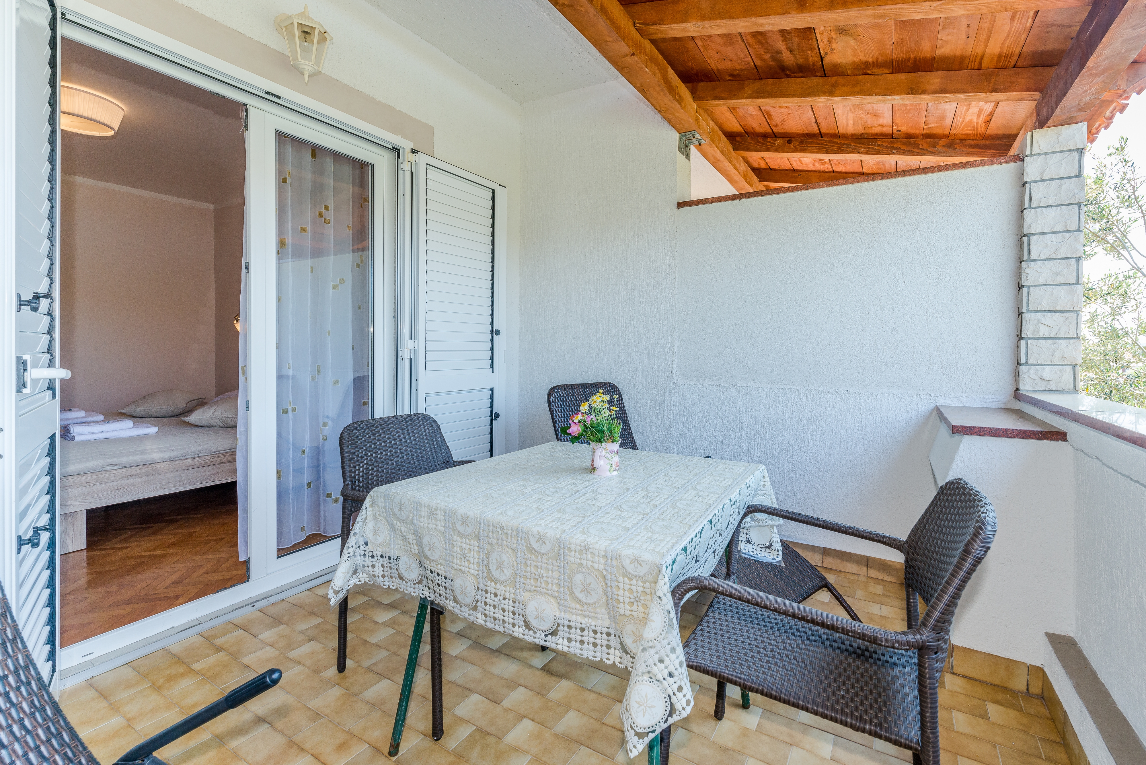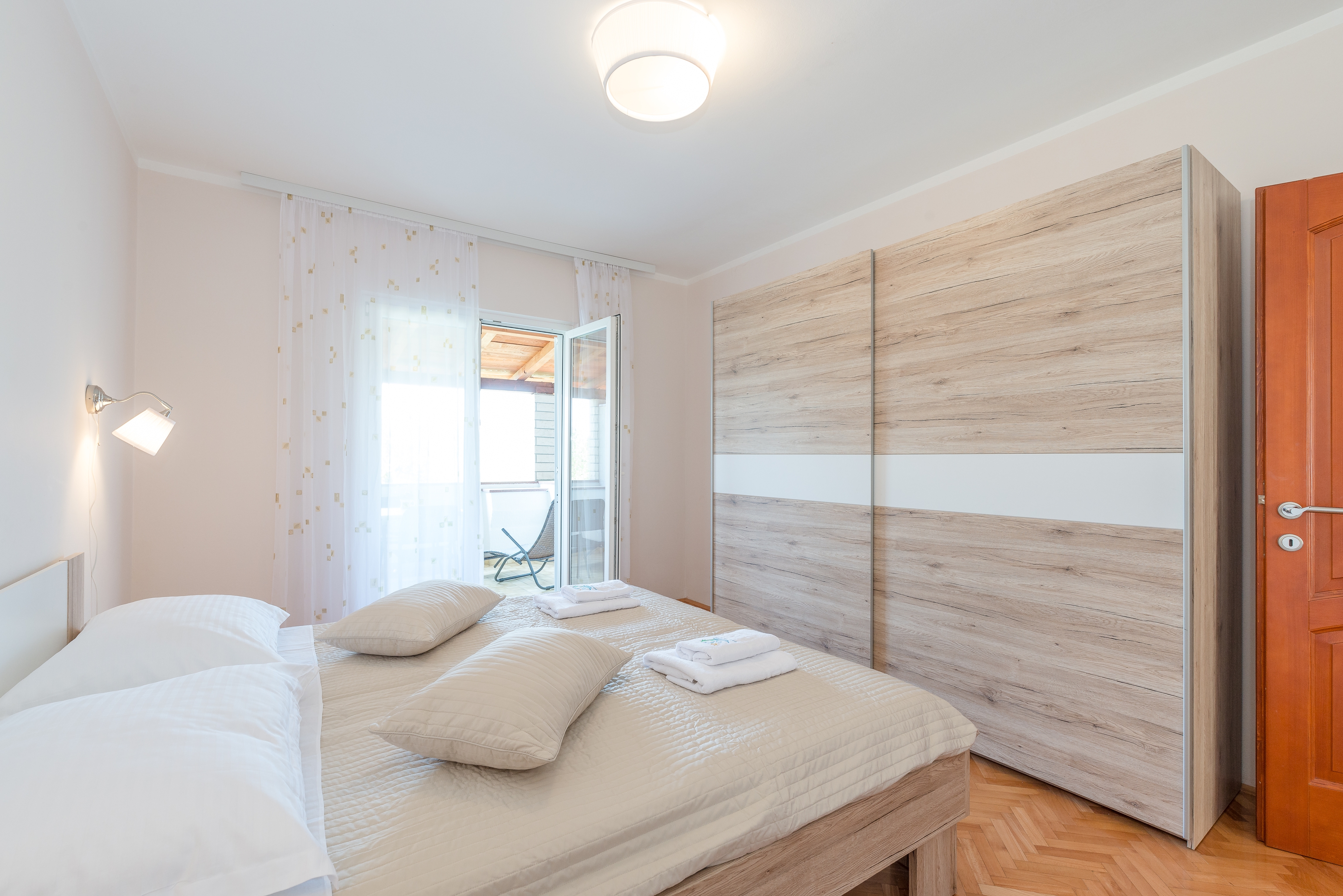 Apartament może przyjąć 4 gości. Łóżka znajdują się w sypialniach, których jest 2, na powierzchni 51m2. Goście mają dostęp do tarasu, by korzystać z ciepłych, letnich wieczorów. Z apartamentu roztacza się widok na morze. Możliwość przygotowywania posiłków poprzez korzystanie ze wspólnego grilla. W rezerwowanej kwaterze na miejscu jest pobierana kaucja (jej wysokość jest podana na stronie). WLICZONE W CENĘ: taksa pobytowa, sprzątanie końcowe, parking, internet, przenośny grill. OBOWIĄZKOWE KOSZTY DODATKOWE: depozyt (100,00 € jednorazowo), dopłata za krótki termin (procent dopłaty w zalezności od liczby noclegów: 30% - 1, 20% - 2, 10% - 3). NIEOBOWIĄZKOWE KOSZTY DODATKOWE: śniadanie i kolacja (23,00 €, 50% zniżki dla dzieci od 4 do 12 lat, Bezpłatne dla dzieci do 4 lat), klimatyzacja (5,00 € za nocleg), miejsce do cumowania łodzi (5,00 € za nocleg). Dostępność dodatkowych usług w rezerwowanym terminie oraz ich cenę (jeśli nie jest podana) należy sprawdzić wcześniej. Za dodatowe usługi, które nie zostały uwzględnione w kalkulacji ceny, płaci się bezpośrednio właścicielowi obiektu, pod warunkiem śe gość korzysta z tych usług. Zniżki od ceny podstawowej: bezpłatny dzień 14=13 (przy pobycie, trwającym co najmniej 14 dni, otrzymujecie jeden bezpłatny dzień na pobyt do 31.12.2026).
