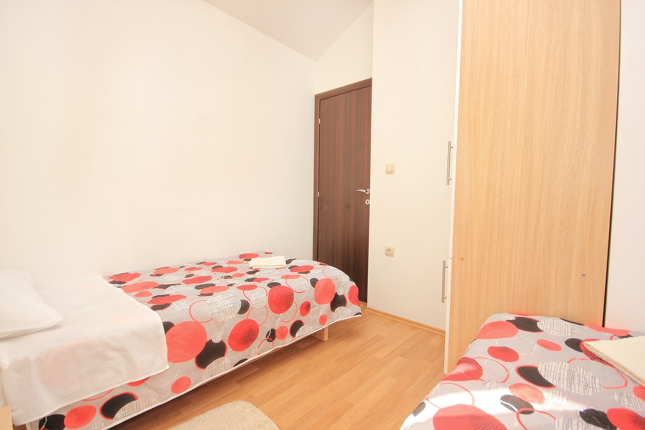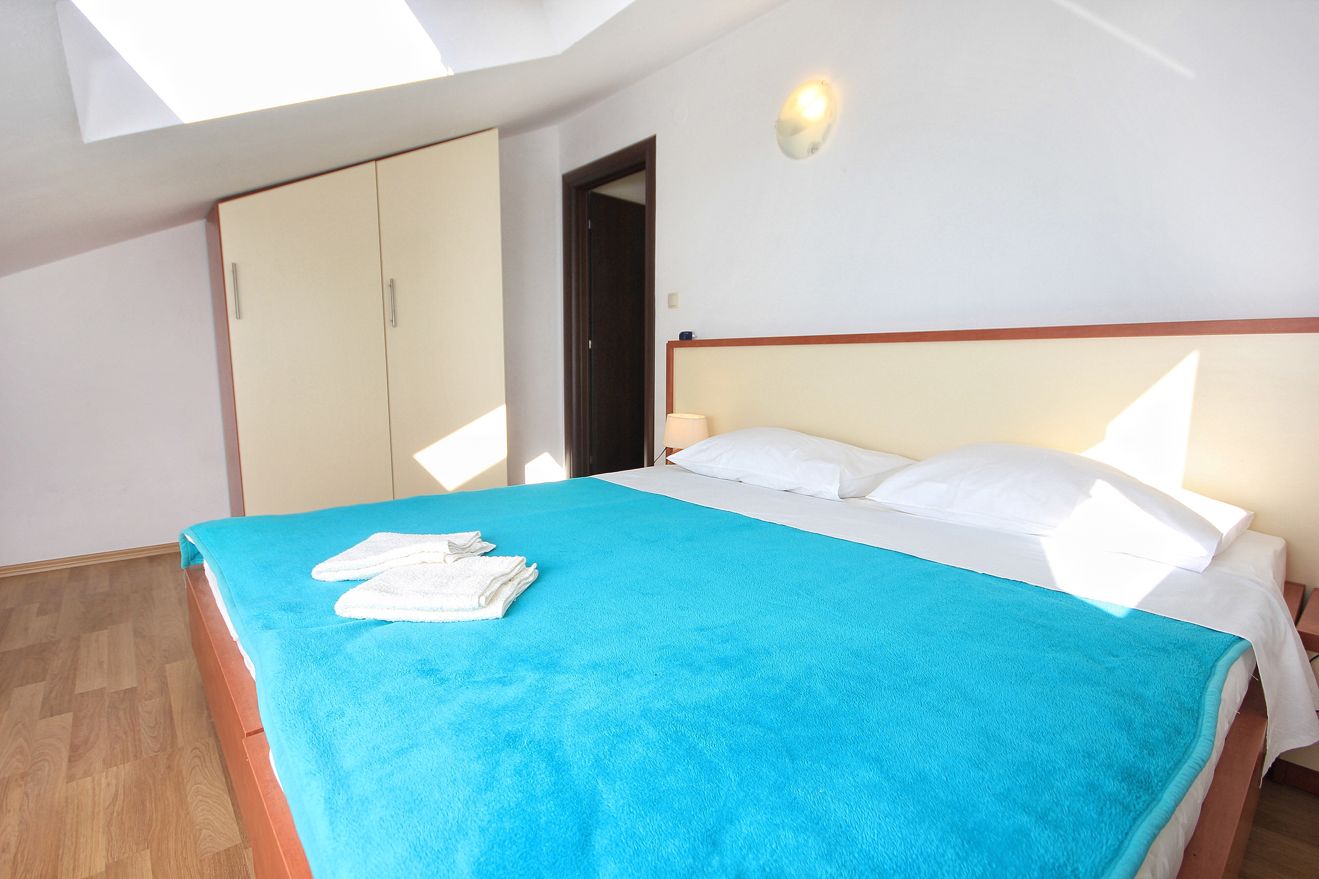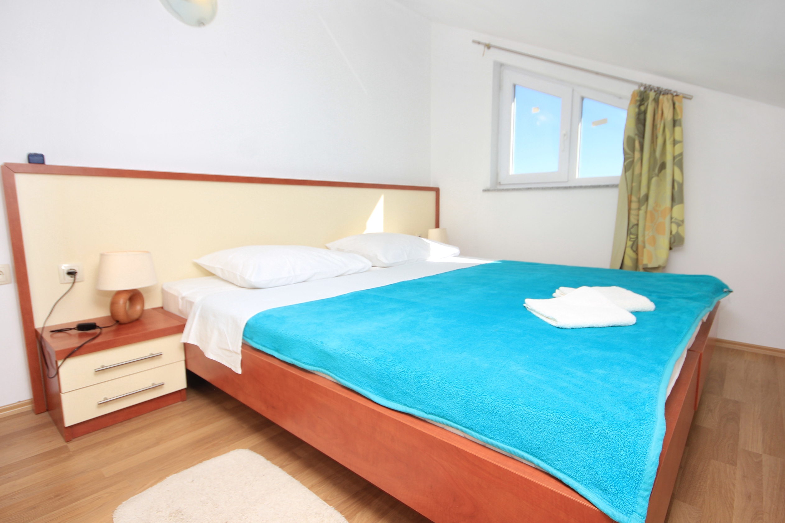 Apartament może przyjąć 6 gości. Łóżka znajdują się w sypialniach, których jest 3, na powierzchni 69m2. Goście mają dostęp do tarasu, by korzystać z ciepłych, letnich wieczorów. Z apartamentu roztacza się widok na morze. Możliwość przygotowywania posiłków poprzez korzystanie ze wspólnego grilla. WLICZONE W CENĘ: taksa pobytowa, sprzątanie końcowe, parking, internet, żelazko, deska do prasowania. OBOWIĄZKOWE KOSZTY DODATKOWE: dopłata za krótki termin (procent dopłaty w zalezności od liczby noclegów: 30% - 1, 20% - 2, 10% - 3). NIEOBOWIĄZKOWE KOSZTY DODATKOWE: klimatyzacja (10,00 € za nocleg). Dostępność dodatkowych usług w rezerwowanym terminie oraz ich cenę (jeśli nie jest podana) należy sprawdzić wcześniej. Za dodatowe usługi, które nie zostały uwzględnione w kalkulacji ceny, płaci się bezpośrednio właścicielowi obiektu, pod warunkiem śe gość korzysta z tych usług. Zniżki od ceny podstawowej: bezpłatny dzień 14=13 (przy pobycie, trwającym co najmniej 14 dni, otrzymujecie jeden bezpłatny dzień na pobyt do 31.12.2026).