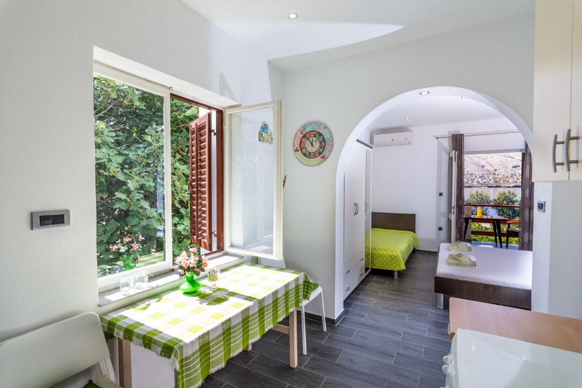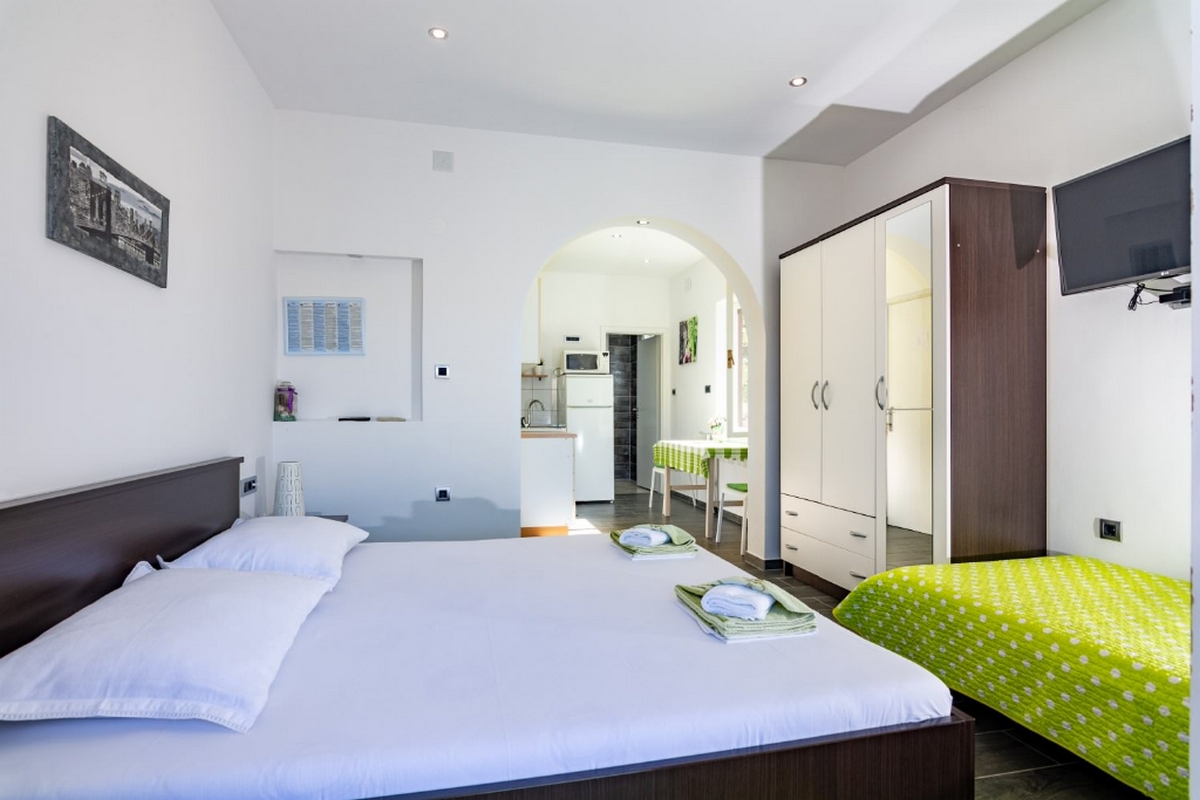 Studio może przyjąć 2 gości. Łóżka znajdują się w sypialniach, których jest 1, na powierzchni 25m2. Goście mają dostęp do balkonu, by korzystać z ciepłych, letnich wieczorów. Z apartamentu typu studio roztacza się widok na morze. WLICZONE W CENĘ: taksa pobytowa, sprzątanie końcowe, klimatyzacja, parking, internet, łóżeczko dziecięce, dostawka, suszarka do włosów. Dostępność dodatkowych usług w rezerwowanym terminie oraz ich cenę (jeśli nie jest podana) należy sprawdzić wcześniej. Za dodatowe usługi, które nie zostały uwzględnione w kalkulacji ceny, płaci się bezpośrednio właścicielowi obiektu, pod warunkiem śe gość korzysta z tych usług.