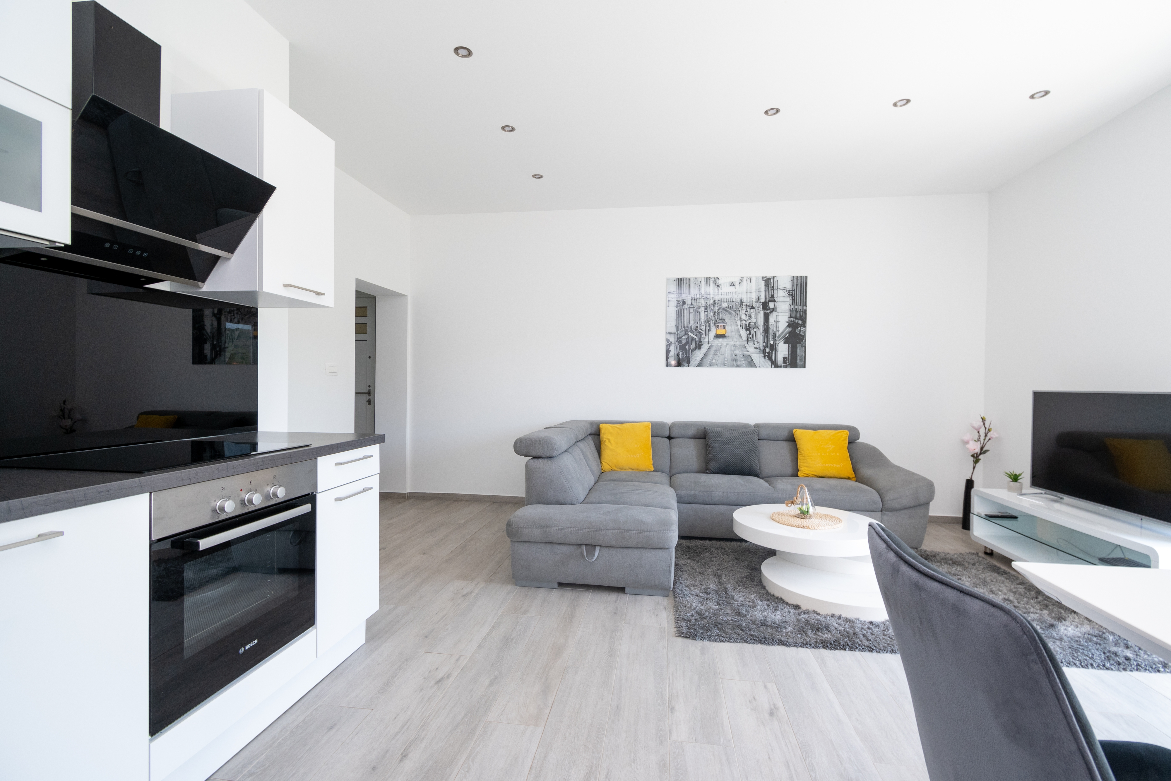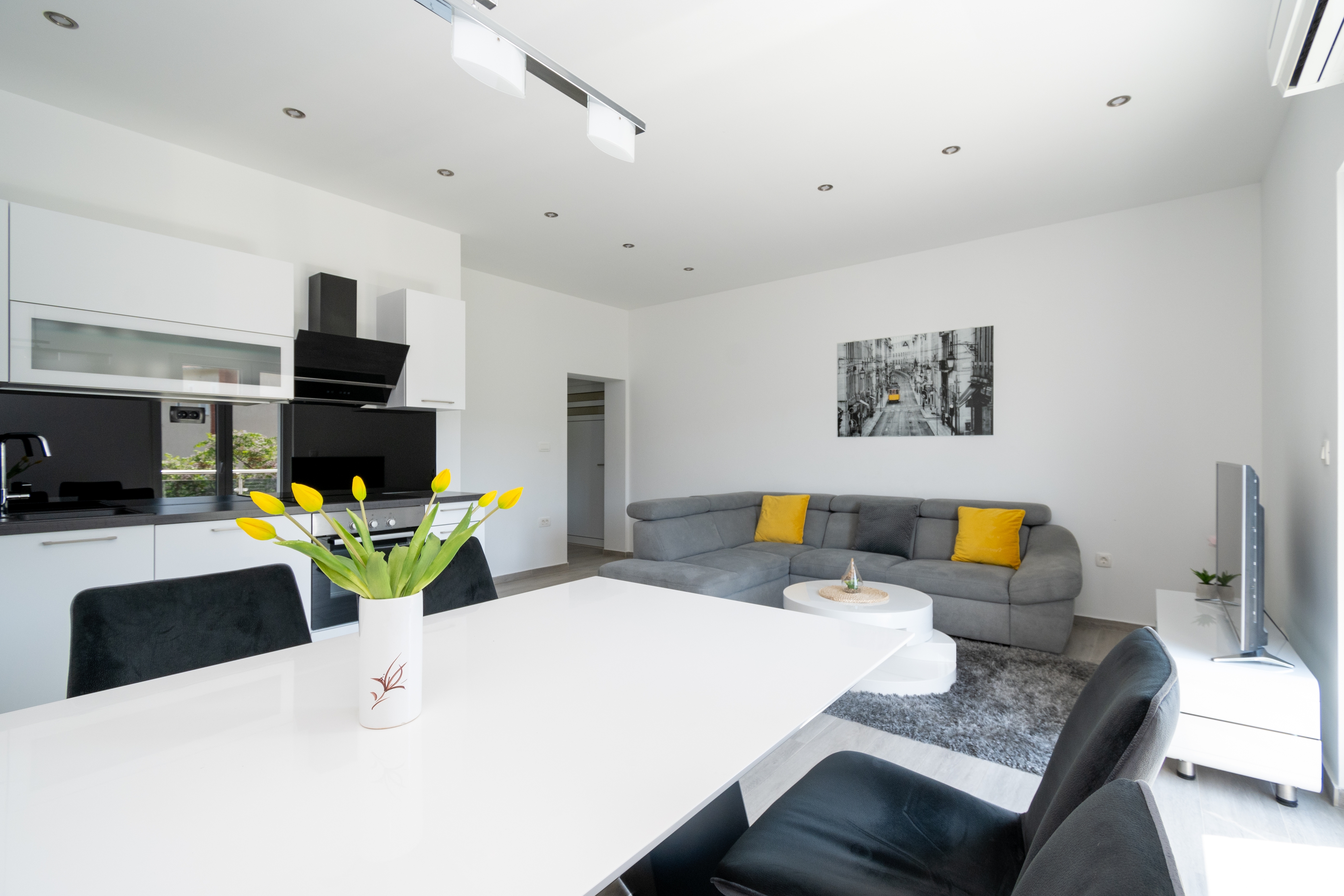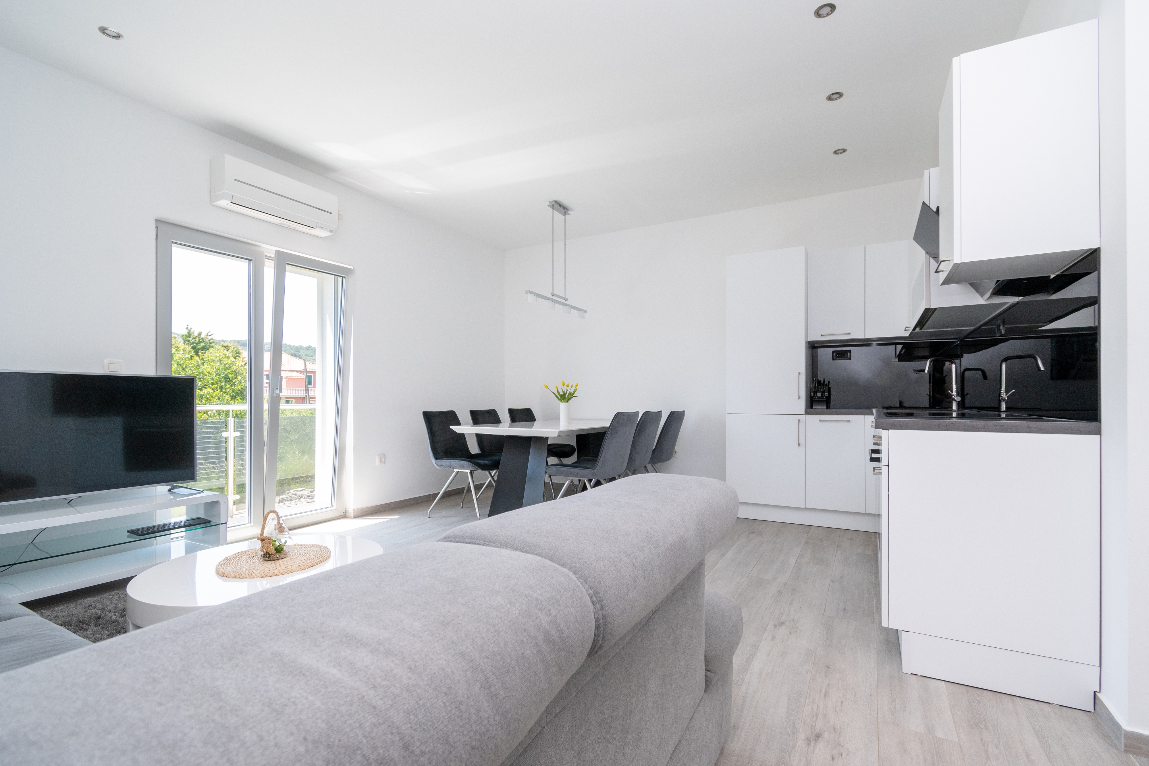 Apartament może przyjąć 4 gości. Łóżka znajdują się w sypialniach, których jest 2, na powierzchni 63m2. Goście mają dostęp do balkonu, by korzystać z ciepłych, letnich wieczorów. Z apartamentu roztacza się widok na morze. Możliwość przygotowywania posiłków poprzez korzystanie ze wspólnego grilla. WLICZONE W CENĘ: taksa pobytowa, sprzątanie końcowe, klimatyzacja, parking, internet, miejsce do cumowania łodzi, przenośny grill. OBOWIĄZKOWE KOSZTY DODATKOWE: dopłata za krótki termin (procent dopłaty w zalezności od liczby noclegów: 30% - 1, 20% - 2, 10% - 3). Dostępność dodatkowych usług w rezerwowanym terminie oraz ich cenę (jeśli nie jest podana) należy sprawdzić wcześniej. Za dodatowe usługi, które nie zostały uwzględnione w kalkulacji ceny, płaci się bezpośrednio właścicielowi obiektu, pod warunkiem śe gość korzysta z tych usług.