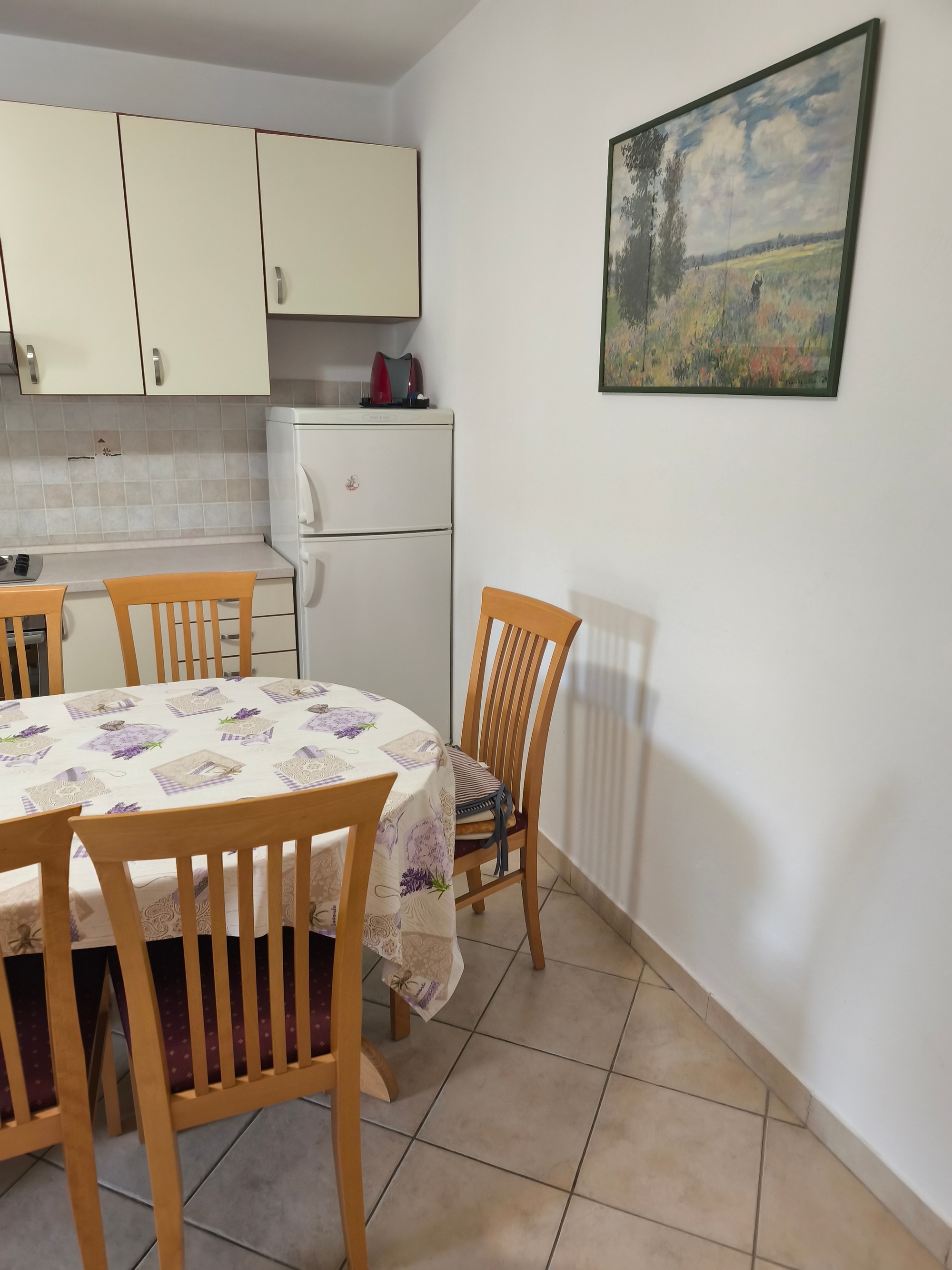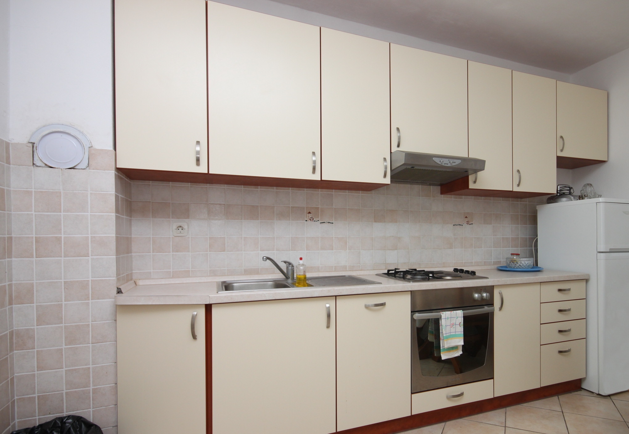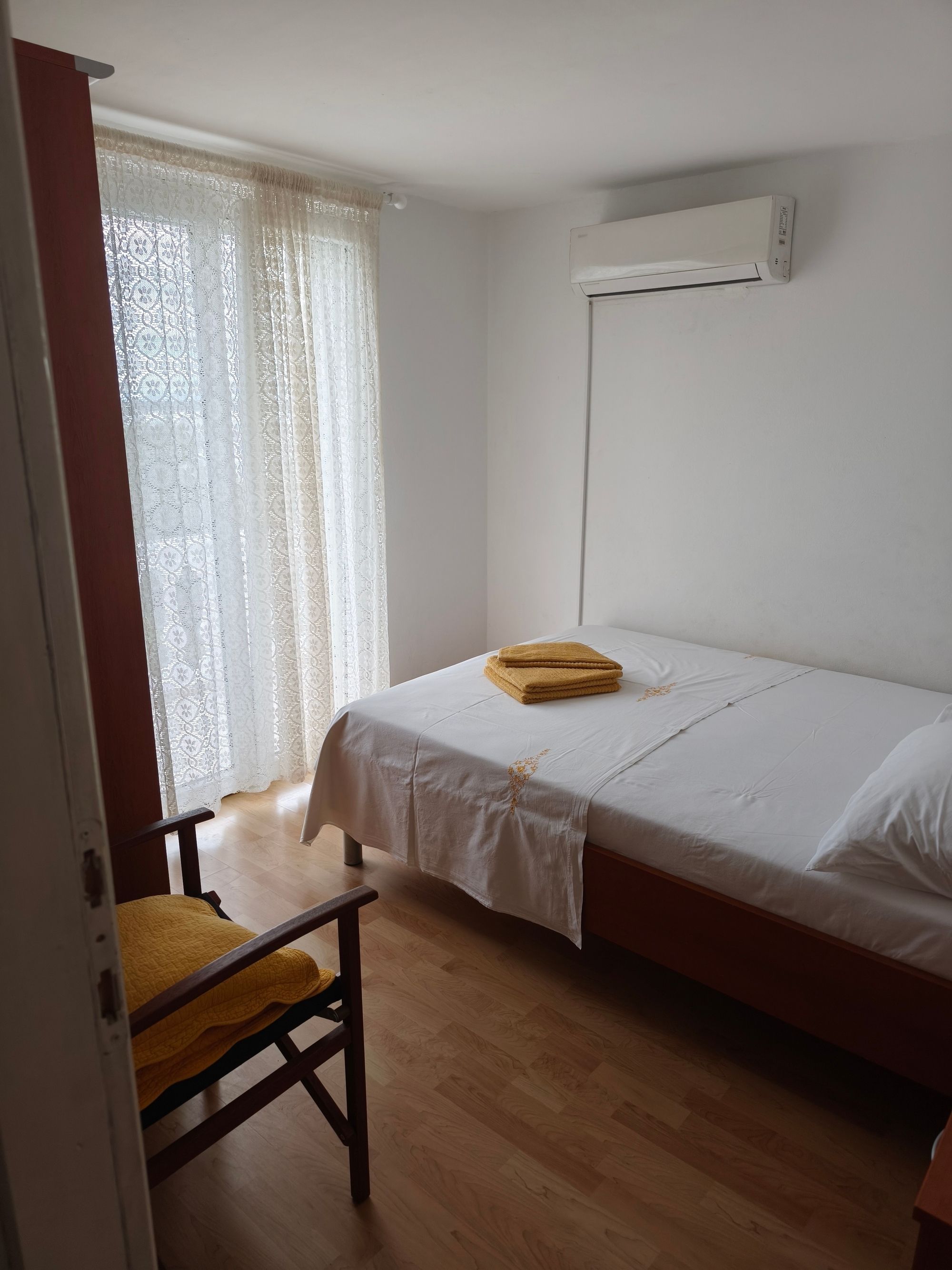 Apartament może przyjąć 6 gości. Łóżka znajdują się w sypialniach, których jest 3, na powierzchni 73m2. Goście mają dostęp do tarasu, by korzystać z ciepłych, letnich wieczorów. Z apartamentu roztacza się widok na morze. Możliwość przygotowywania posiłków poprzez korzystanie ze wspólnego grilla. WLICZONE W CENĘ: taksa pobytowa, sprzątanie końcowe, klimatyzacja, parking, internet, łóżeczko dziecięce, suszarka do włosów. OBOWIĄZKOWE KOSZTY DODATKOWE: dopłata za krótki termin (procent dopłaty w zalezności od liczby noclegów: 30% - 1, 20% - 2, 10% - 3). NIEOBOWIĄZKOWE KOSZTY DODATKOWE: dostawka (5,00 € za nocleg). Dostępność dodatkowych usług w rezerwowanym terminie oraz ich cenę (jeśli nie jest podana) należy sprawdzić wcześniej. Za dodatowe usługi, które nie zostały uwzględnione w kalkulacji ceny, płaci się bezpośrednio właścicielowi obiektu, pod warunkiem śe gość korzysta z tych usług.