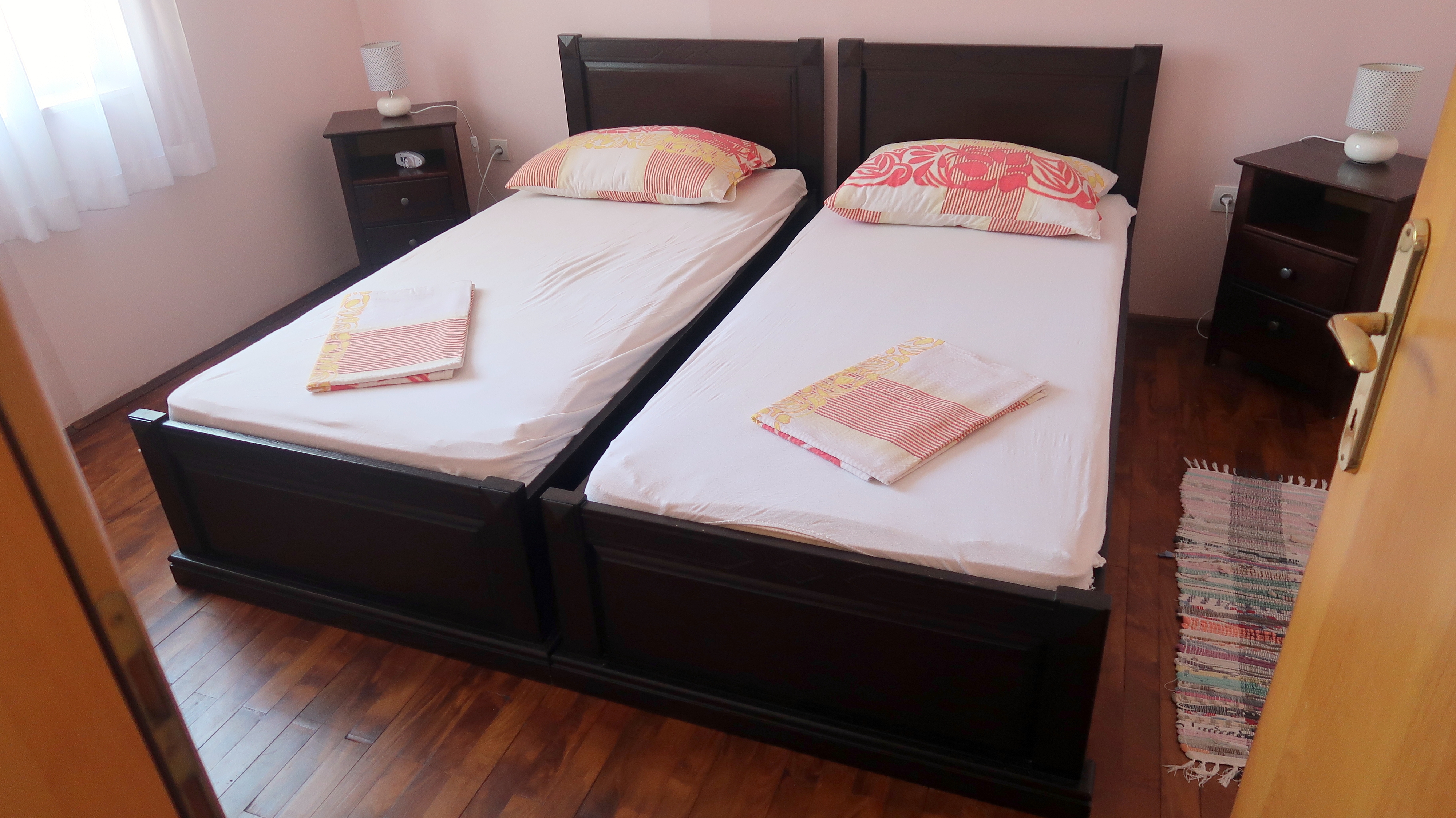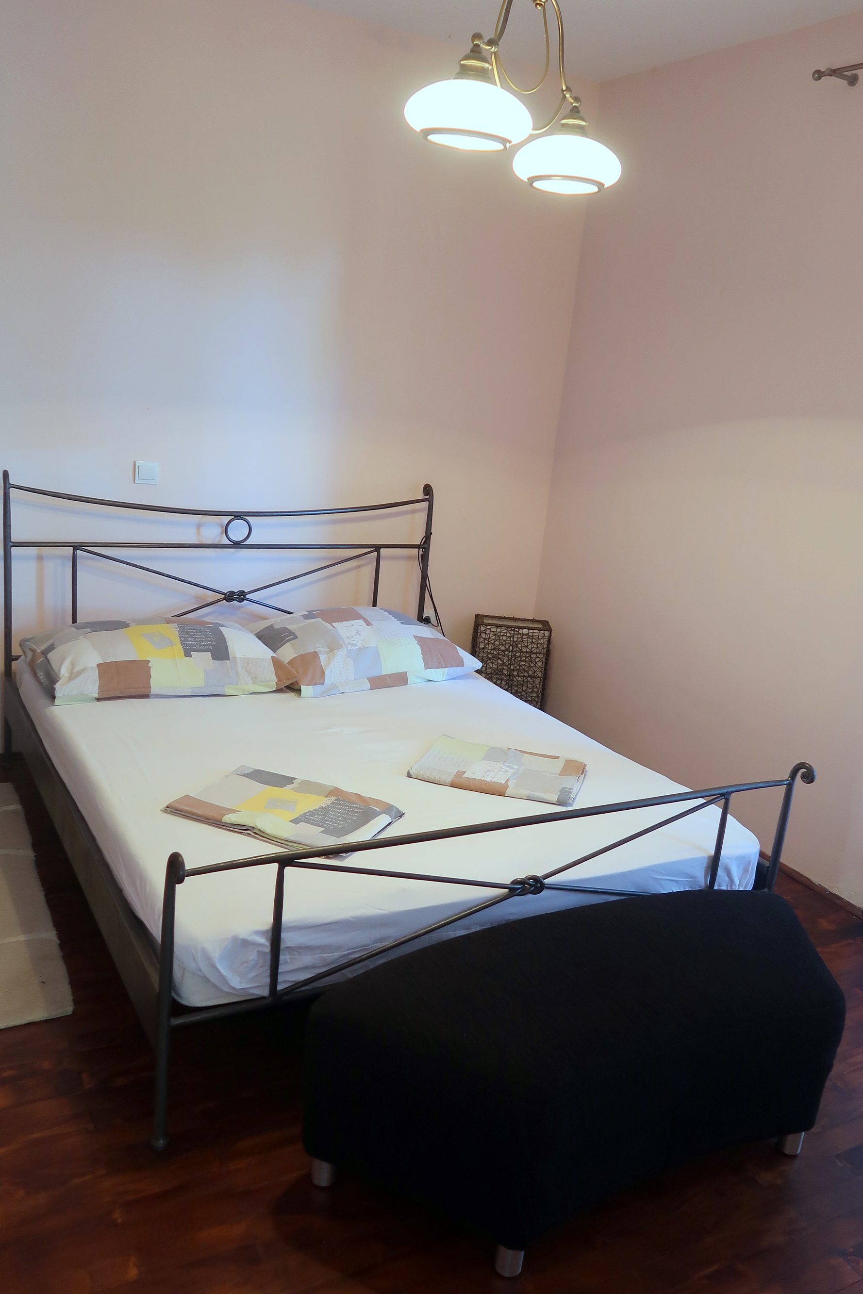 Apartament może przyjąć 5 gości. Łóżka znajdują się w sypialniach, których jest 2, oraz w pokoju dziennym, na powierzchni 46m2. Goście mają dostęp do tarasu, by korzystać z ciepłych, letnich wieczorów. Możliwość przygotowywania posiłków poprzez korzystanie ze wspólnego grilla. W kwaterze dozwolony jest pobyt zwierzęcia domowego, za dopłatą. WLICZONE W CENĘ: taksa pobytowa, sprzątanie końcowe, klimatyzacja, parking, internet. NIEOBOWIĄZKOWE KOSZTY DODATKOWE: zwierzęta domowe (10,00 € za nocleg). Dostępność dodatkowych usług w rezerwowanym terminie oraz ich cenę (jeśli nie jest podana) należy sprawdzić wcześniej. Za dodatowe usługi, które nie zostały uwzględnione w kalkulacji ceny, płaci się bezpośrednio właścicielowi obiektu, pod warunkiem śe gość korzysta z tych usług.