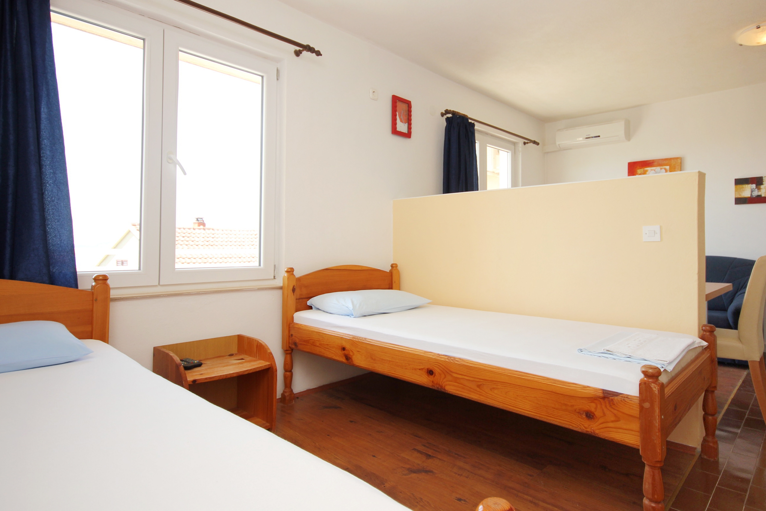 Studio może przyjąć 4 gości. Łóżka znajdują się w sypialniach, których jest 1, oraz w jadalni, na powierzchni 24m2. Goście mają dostęp do balkonu, by korzystać z ciepłych, letnich wieczorów. Z apartamentu typu studio roztacza się widok na morze. Możliwość przygotowywania posiłków poprzez korzystanie ze wspólnego grilla. WLICZONE W CENĘ: taksa pobytowa, sprzątanie końcowe, klimatyzacja, parking, internet. Dostępność dodatkowych usług w rezerwowanym terminie oraz ich cenę (jeśli nie jest podana) należy sprawdzić wcześniej. Za dodatowe usługi, które nie zostały uwzględnione w kalkulacji ceny, płaci się bezpośrednio właścicielowi obiektu, pod warunkiem śe gość korzysta z tych usług. Zniżki od ceny podstawowej: bezpłatny dzień 14=13 (przy pobycie, trwającym co najmniej 14 dni, otrzymujecie jeden bezpłatny dzień na pobyt do 31.12.2026).
