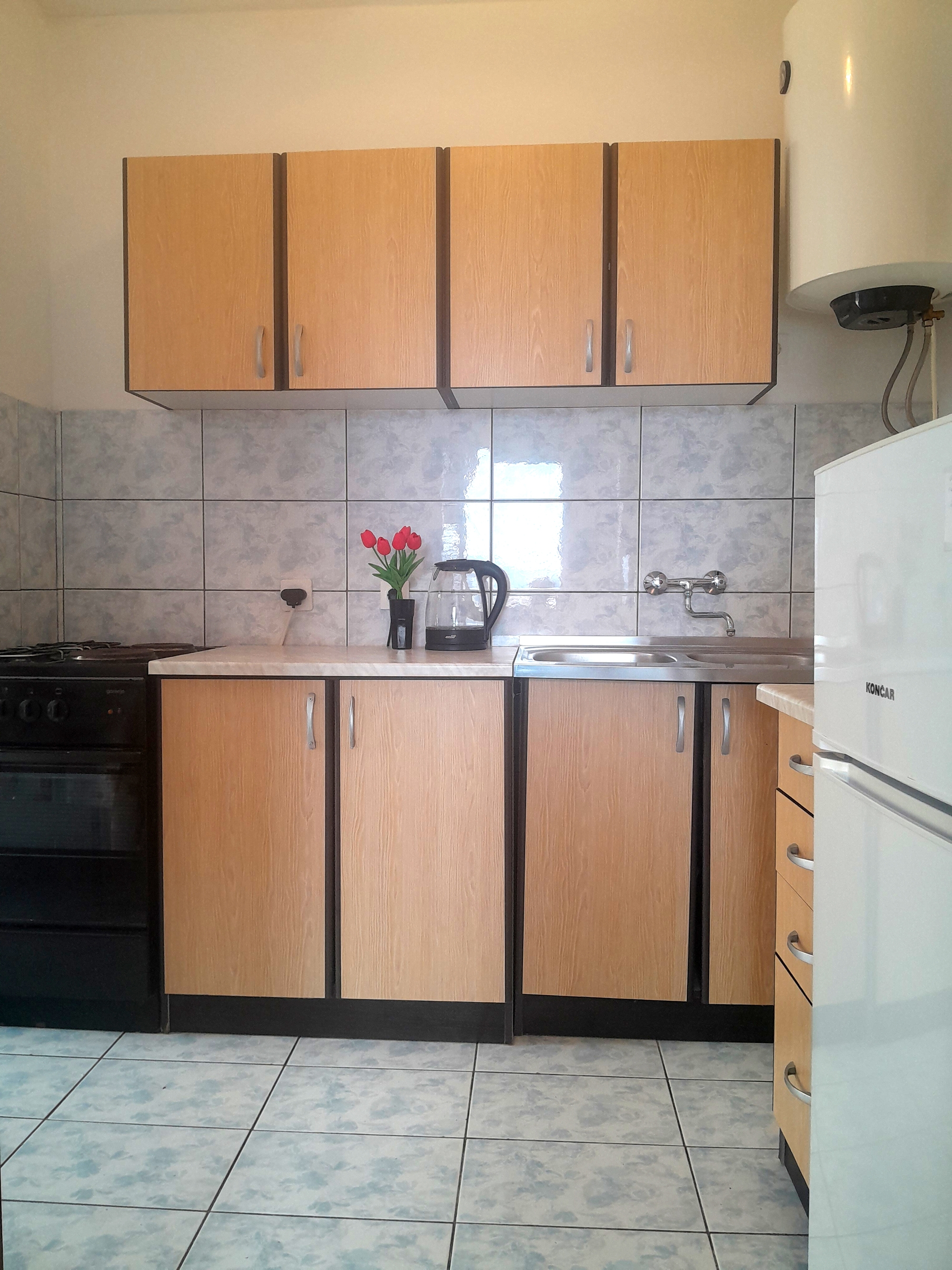 Apartament może przyjąć 3 gości. Łóżka znajdują się w sypialniach, których jest 1, na powierzchni 21m2. Goście mają dostęp do tarasu, by korzystać z ciepłych, letnich wieczorów. Z apartamentu roztacza się widok na morze. Możliwość przygotowywania posiłków poprzez korzystanie ze wspólnego grilla. W kwaterze dozwolony jest pobyt zwierzęcia domowego, za dopłatą. Pomieszczenia rezerwowanej kwatery nie są połączone w jedną całość. WLICZONE W CENĘ: taksa pobytowa, sprzątanie końcowe, klimatyzacja, parking, internet, miejsce do cumowania łodzi. NIEOBOWIĄZKOWE KOSZTY DODATKOWE: pranie bielizny (5,00 € pranie), zwierzęta domowe (3,00 € za nocleg). Dostępność dodatkowych usług w rezerwowanym terminie oraz ich cenę (jeśli nie jest podana) należy sprawdzić wcześniej. Za dodatowe usługi, które nie zostały uwzględnione w kalkulacji ceny, płaci się bezpośrednio właścicielowi obiektu, pod warunkiem śe gość korzysta z tych usług. Zniżki od ceny podstawowej: bezpłatny dzień 14=13 (przy pobycie, trwającym co najmniej 14 dni, otrzymujecie jeden bezpłatny dzień na pobyt do 31.12.2026).
