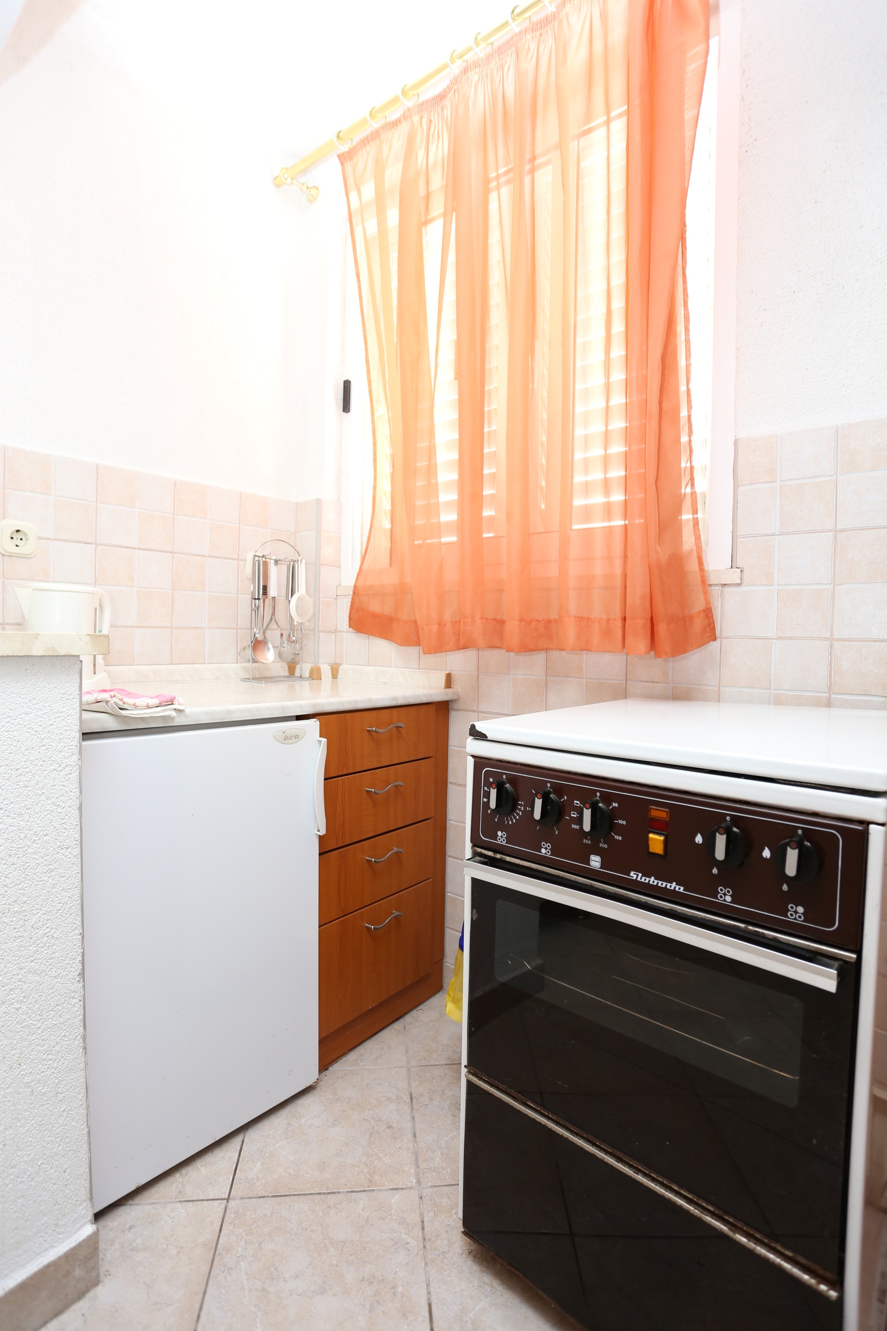 Apartament może przyjąć 4 gości. Łóżka znajdują się w sypialniach, których jest 1, oraz w pokoju dziennym, na powierzchni 32m2. Z apartamentu roztacza się widok na morze. Możliwość przygotowywania posiłków poprzez korzystanie ze wspólnego grilla. Rezerwowana kwatera ma taras wspólny z inną kwaterą. WLICZONE W CENĘ: taksa pobytowa, sprzątanie końcowe, klimatyzacja, parking, internet, łóżeczko dziecięce, żelazko, deska do prasowania, suszarka do włosów. OBOWIĄZKOWE KOSZTY DODATKOWE: dopłata za krótki termin (procent dopłaty w zalezności od liczby noclegów: 30% - 1, 20% - 2, 10% - 3). NIEOBOWIĄZKOWE KOSZTY DODATKOWE: pranie bielizny (5,00 € pranie). Dostępność dodatkowych usług w rezerwowanym terminie oraz ich cenę (jeśli nie jest podana) należy sprawdzić wcześniej. Za dodatowe usługi, które nie zostały uwzględnione w kalkulacji ceny, płaci się bezpośrednio właścicielowi obiektu, pod warunkiem śe gość korzysta z tych usług.
