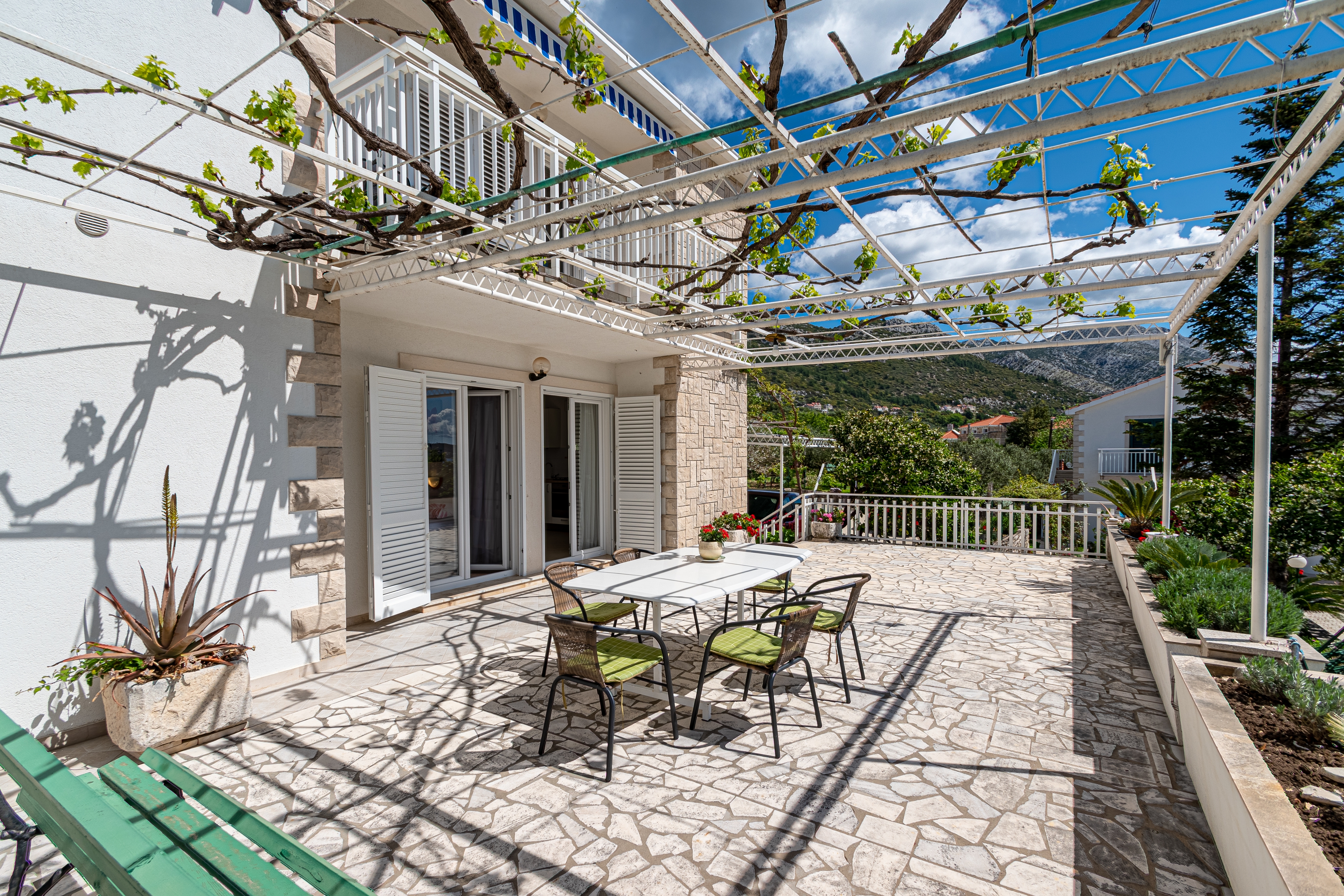 Apartament może przyjąć 4 gości. Łóżka znajdują się w sypialniach, których jest 2, na powierzchni 47m2. Goście mają dostęp do tarasu, by korzystać z ciepłych, letnich wieczorów. Z apartamentu roztacza się widok na morze. Możliwość przygotowywania posiłków poprzez korzystanie ze wspólnego grilla. WLICZONE W CENĘ: taksa pobytowa, sprzątanie końcowe, parking, internet. OBOWIĄZKOWE KOSZTY DODATKOWE: dopłata za krótki termin (procent dopłaty w zalezności od liczby noclegów: 30% - 1, 20% - 2, 10% - 3). NIEOBOWIĄZKOWE KOSZTY DODATKOWE: klimatyzacja (5,00 € za nocleg). Dostępność dodatkowych usług w rezerwowanym terminie oraz ich cenę (jeśli nie jest podana) należy sprawdzić wcześniej. Za dodatowe usługi, które nie zostały uwzględnione w kalkulacji ceny, płaci się bezpośrednio właścicielowi obiektu, pod warunkiem śe gość korzysta z tych usług.