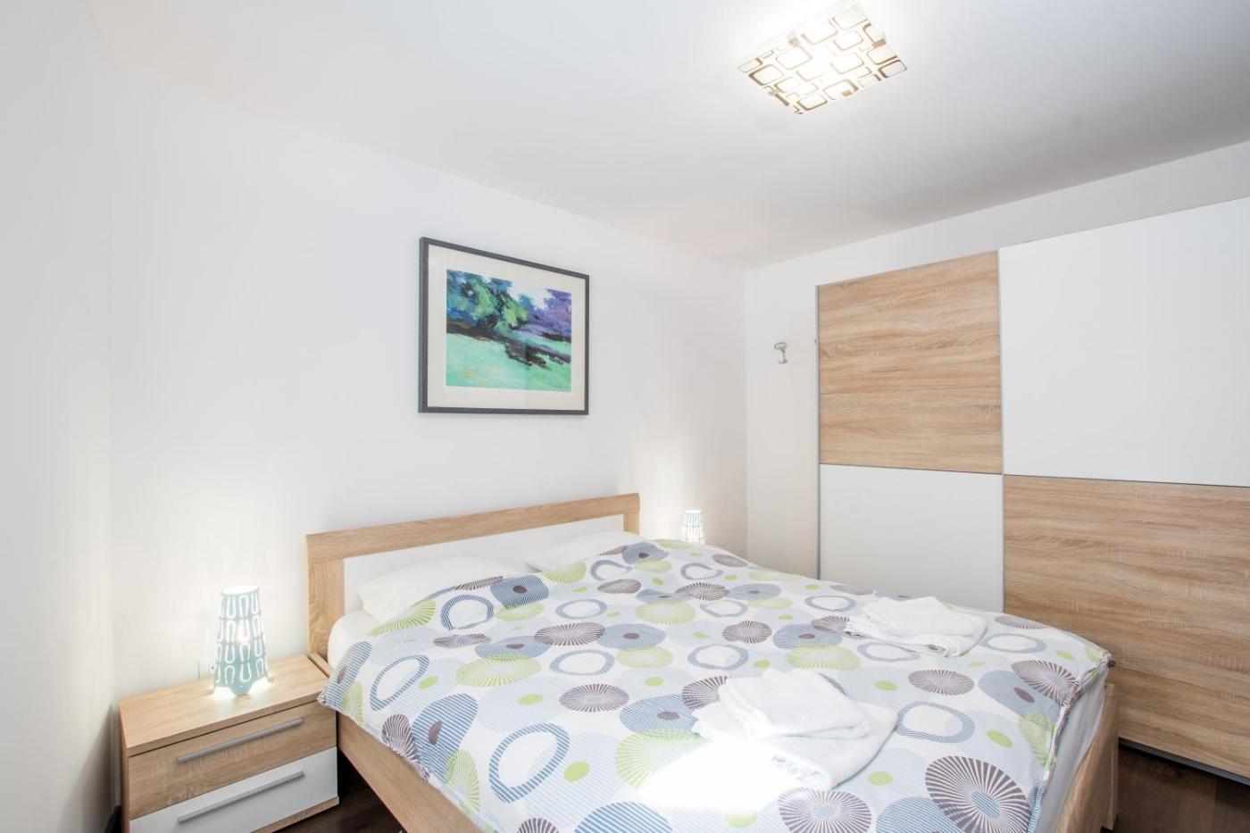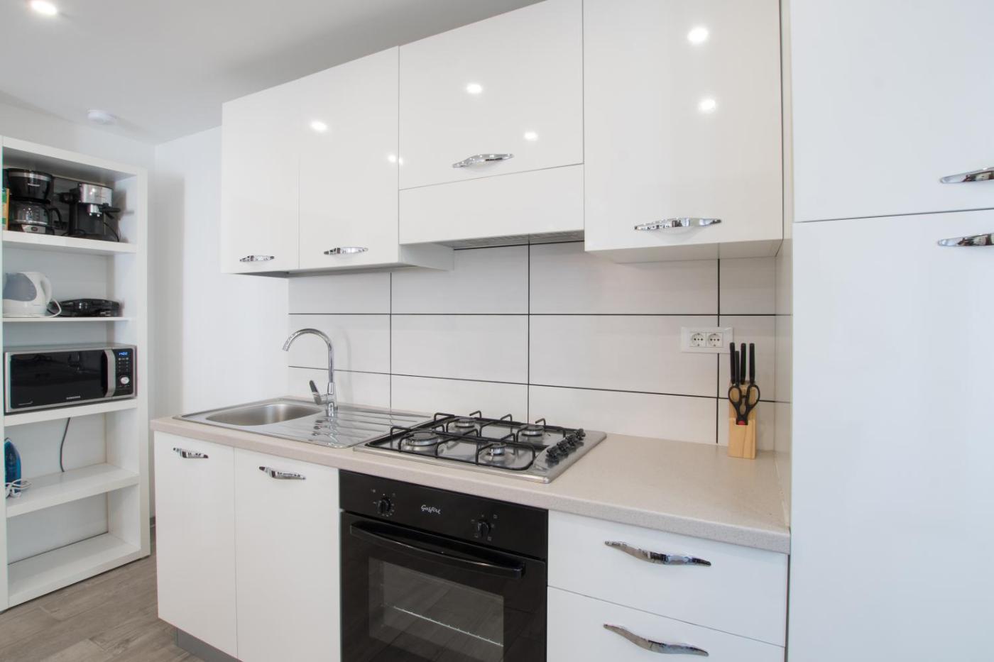 Apartament. Boasting a private entrance, this air-conditioned apartment comes with 1 living room, 1 separate bedroom and 1 bathroom with a walk-in shower and a hairdryer. The fully equipped kitchen features a stovetop, a refrigerator, kitchenware and an oven. This apartment has soundproof walls, flat-screen TV with streaming services, city views, as well as chocolate for guests. The unit has 2 beds. Apartament - 3 osobowy. Powierzchnia pokoju ok.: 40 mkw.