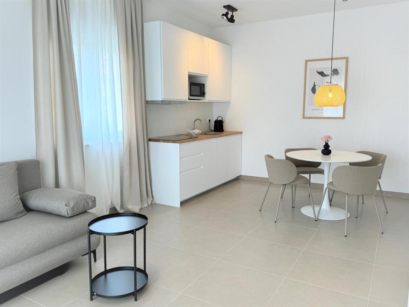 One-Bedroom Apartment with Sea View and Balcony. This air-conditioned apartment features 1 living room, 1 separate bedroom and 1 bathroom with a walk-in shower. Meals can be prepared in the well-fitted kitchen, which features a stovetop, a refrigerator, kitchenware and an oven. Boasting a balcony with sea views, this apartment also features a coffee machine and a flat-screen TV with satellite channels. The unit has 2 beds. ;